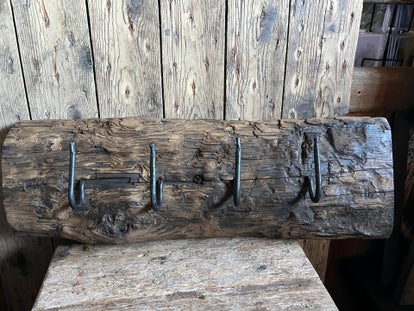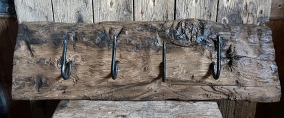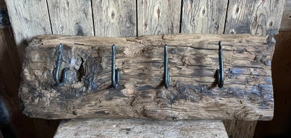 Stoer stuk oud hout met een geleefde uitstraling en vier stevige haken. Elk exemplaar is uniek, scheuren, nerven en oneffenheden geven dit item juist zijn karakter.
