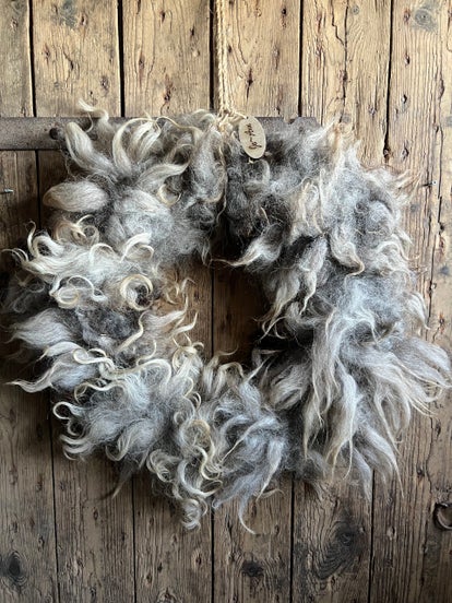 Prachtige schapenwollen krans past zowel in een stoer, sober en zeker landelijk interieur