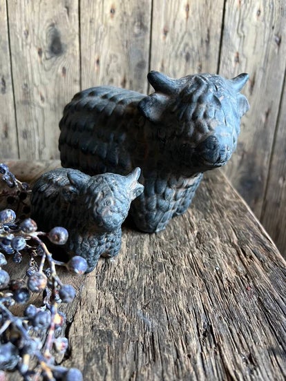 Prachtige stenen waxinelichtje houder Schotse hooglander in sobere kleur