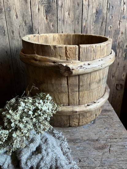 Oude houten emmer