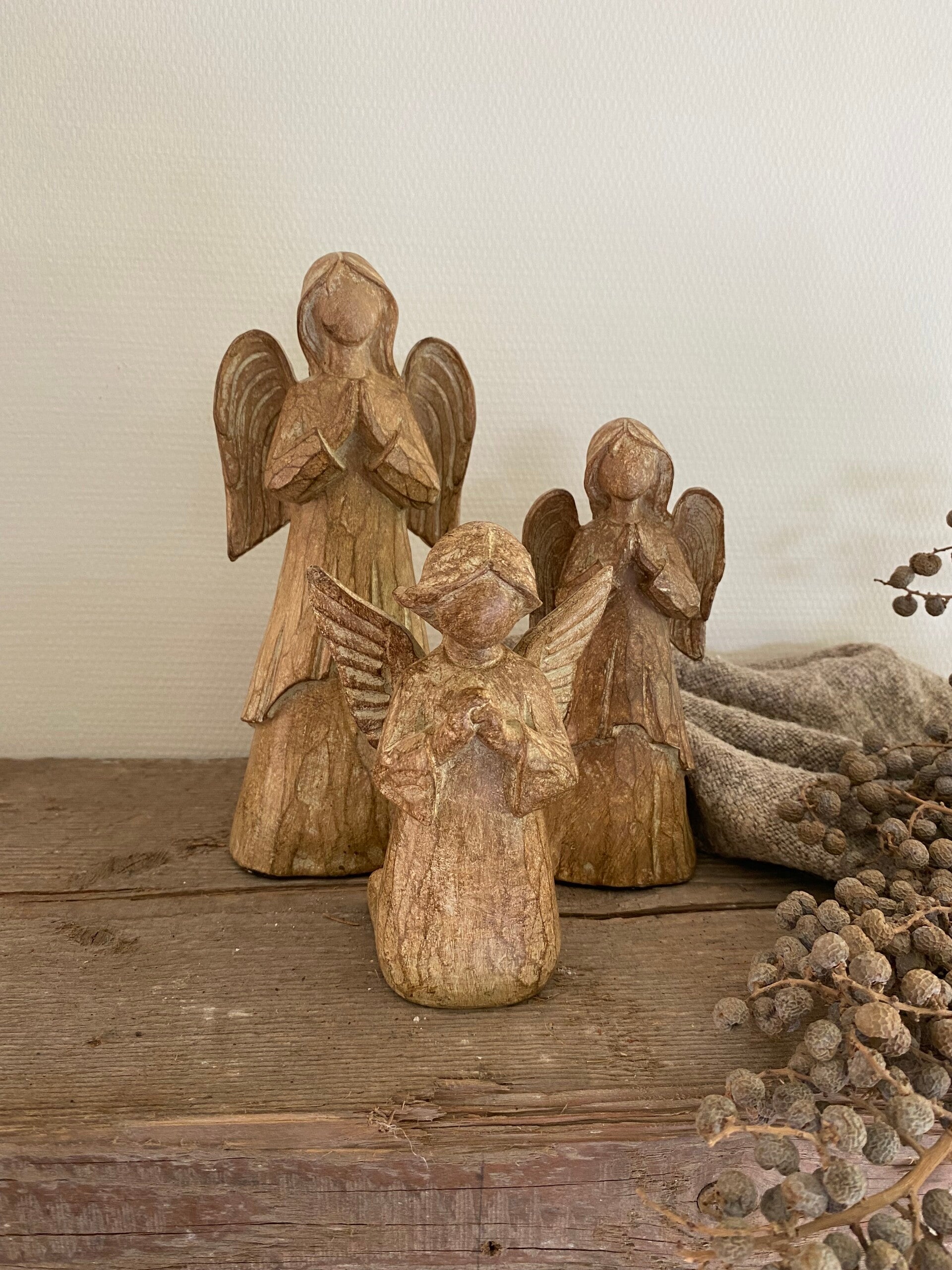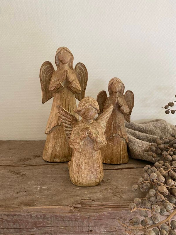 Engeltjes lijken net van hout maar zijn van polystone gemaakt.