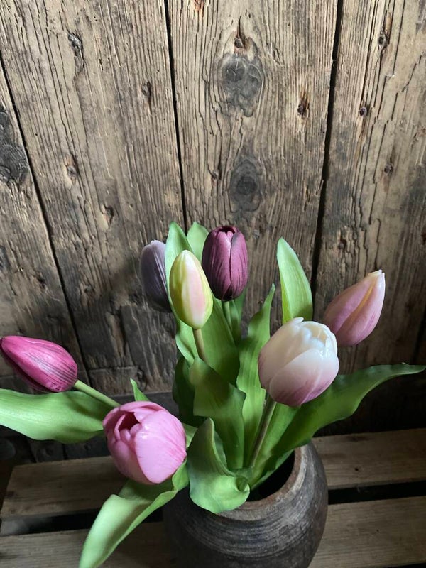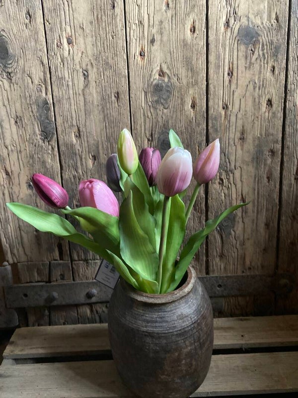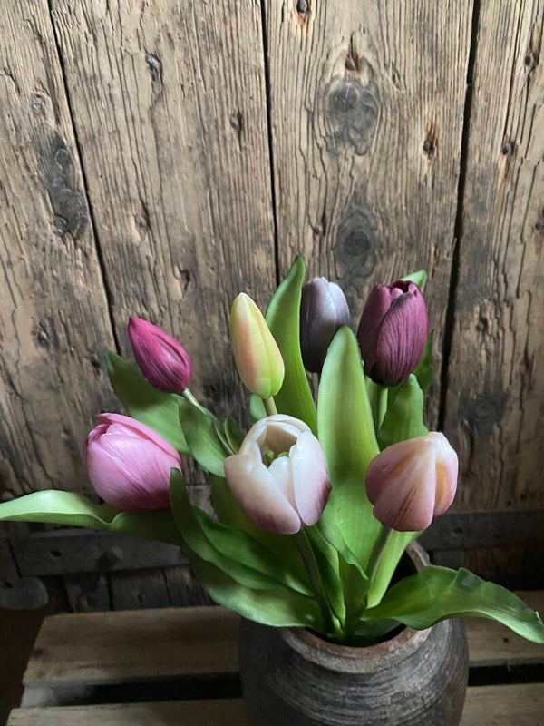 Gemengd bosje tulpen, Mauve, paars, vintage  pink en purple grey.