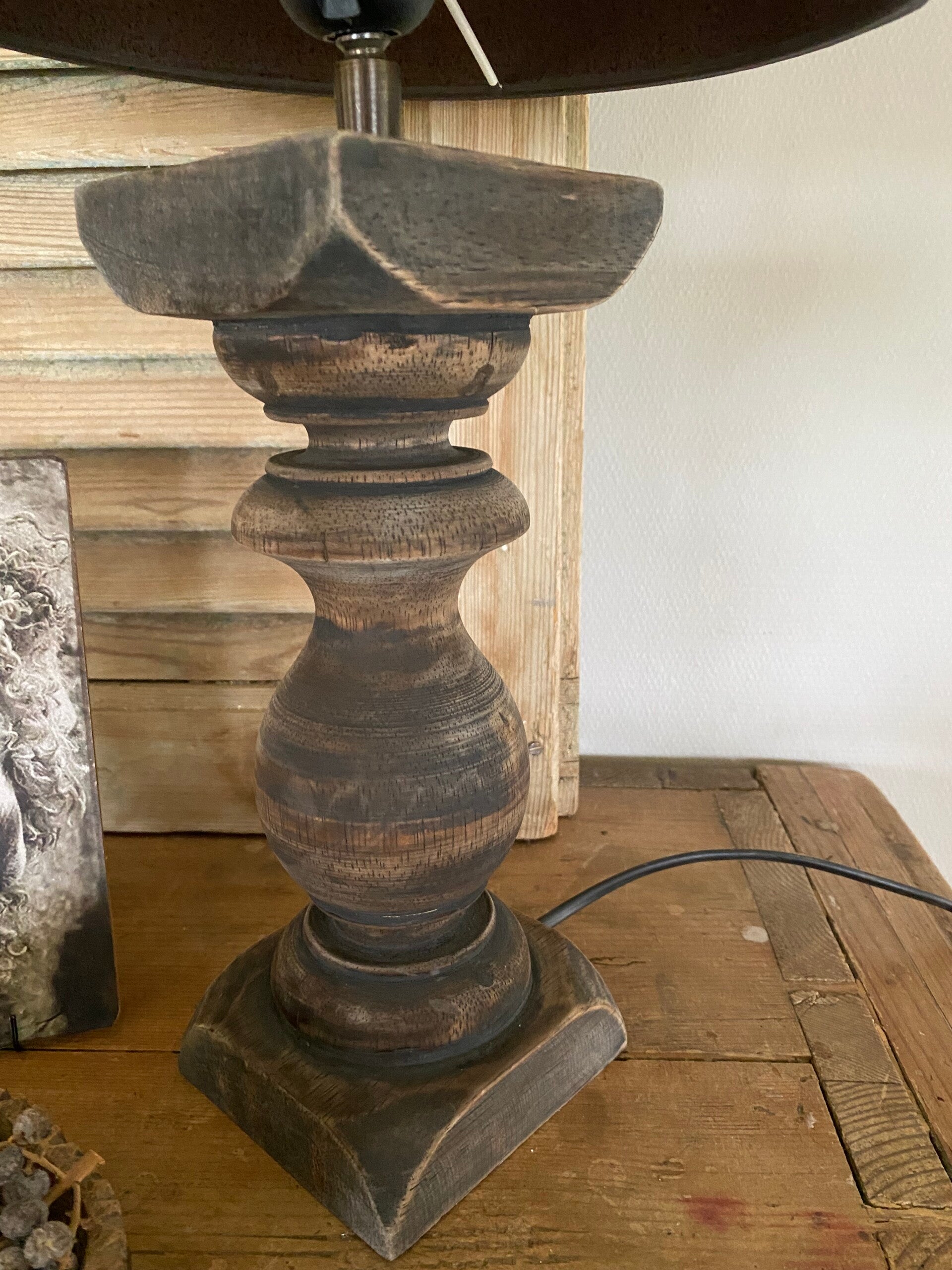De balusterlamp is van hout. Hout kan altijd nog iets gaan werken!