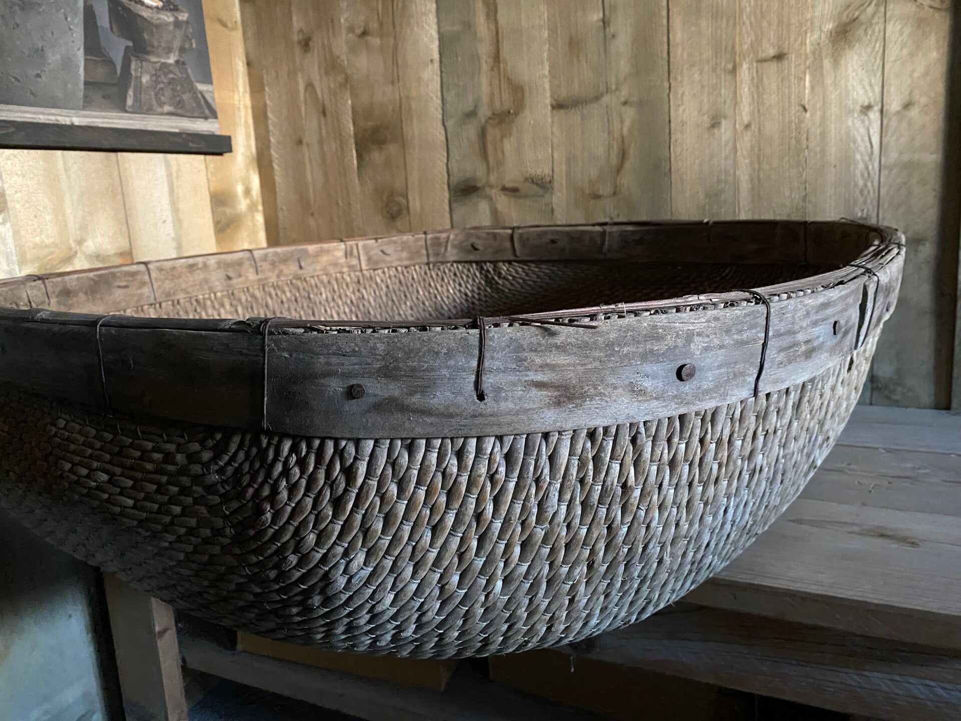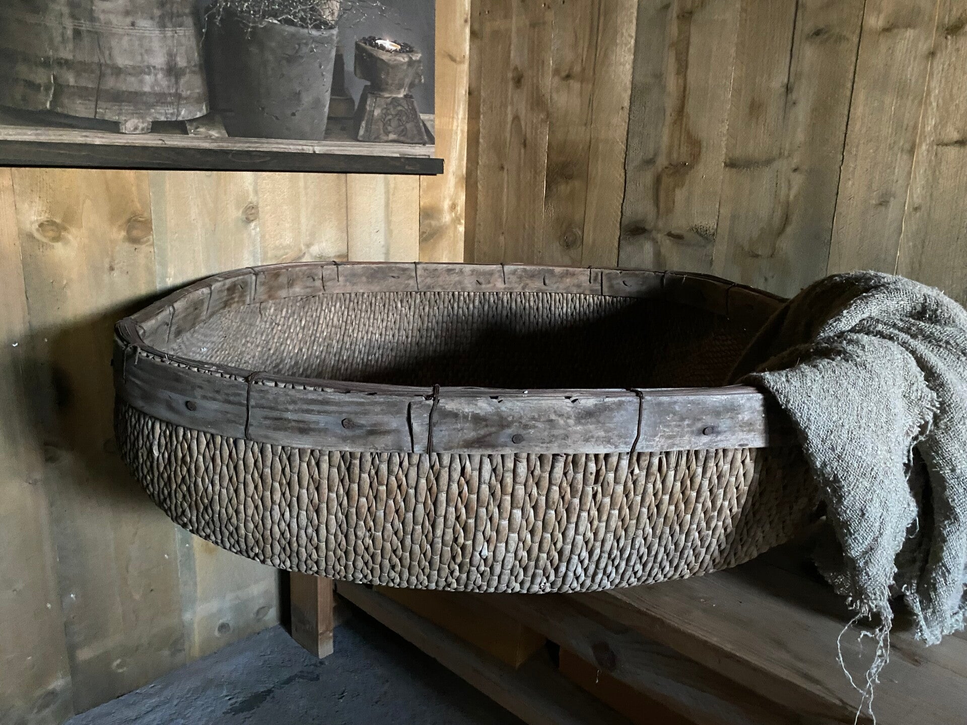 Authentiek vergrijsde (rijst)mand