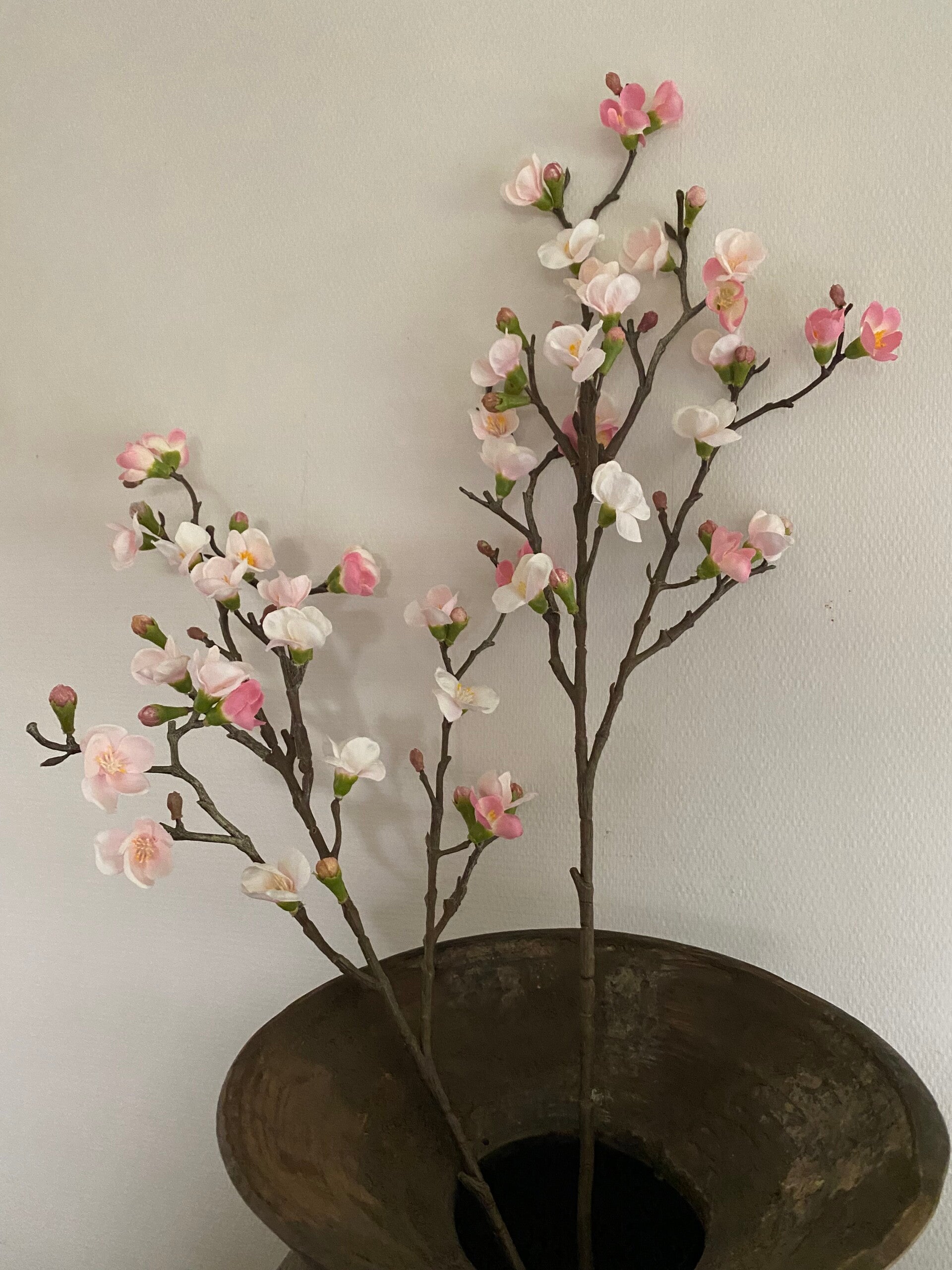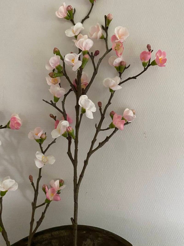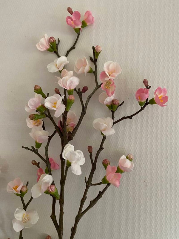 Bloesemtak 'Quinn' met 23 bloemen (5x L / 11x M / 7x S) & 15 plastic knoppen, 2x vertakt, 70 cm
