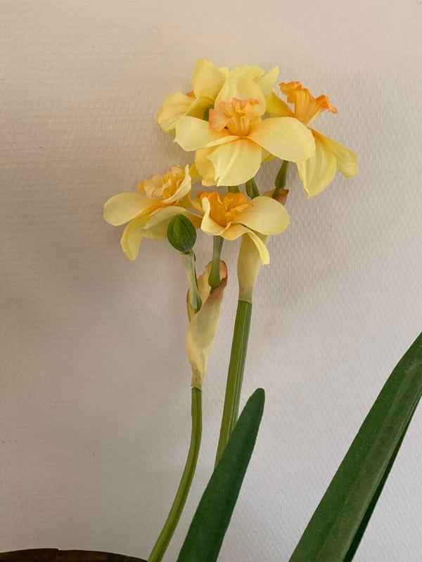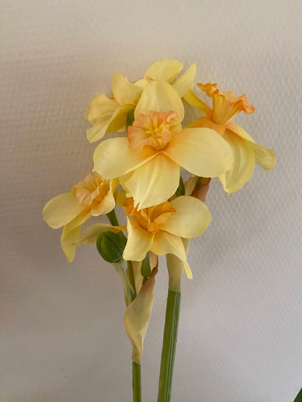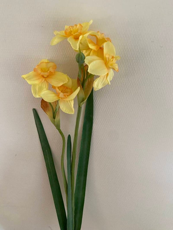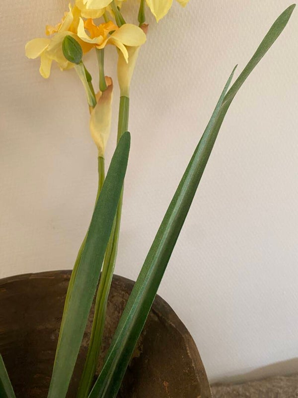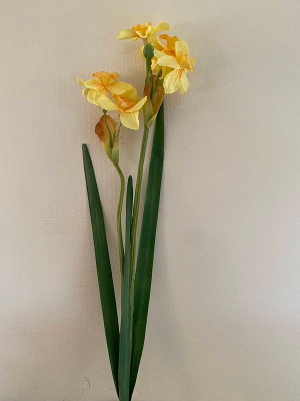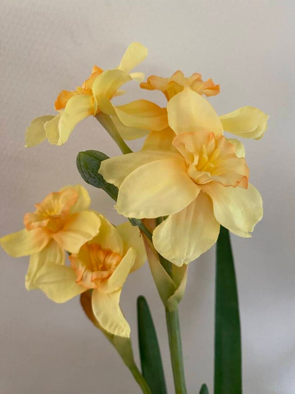 Narcis "de Luxe", 5 bloemen (Ø 6cm) , 2 knoppen & 3 bladeren, (grijs-groen blad), 53 cm