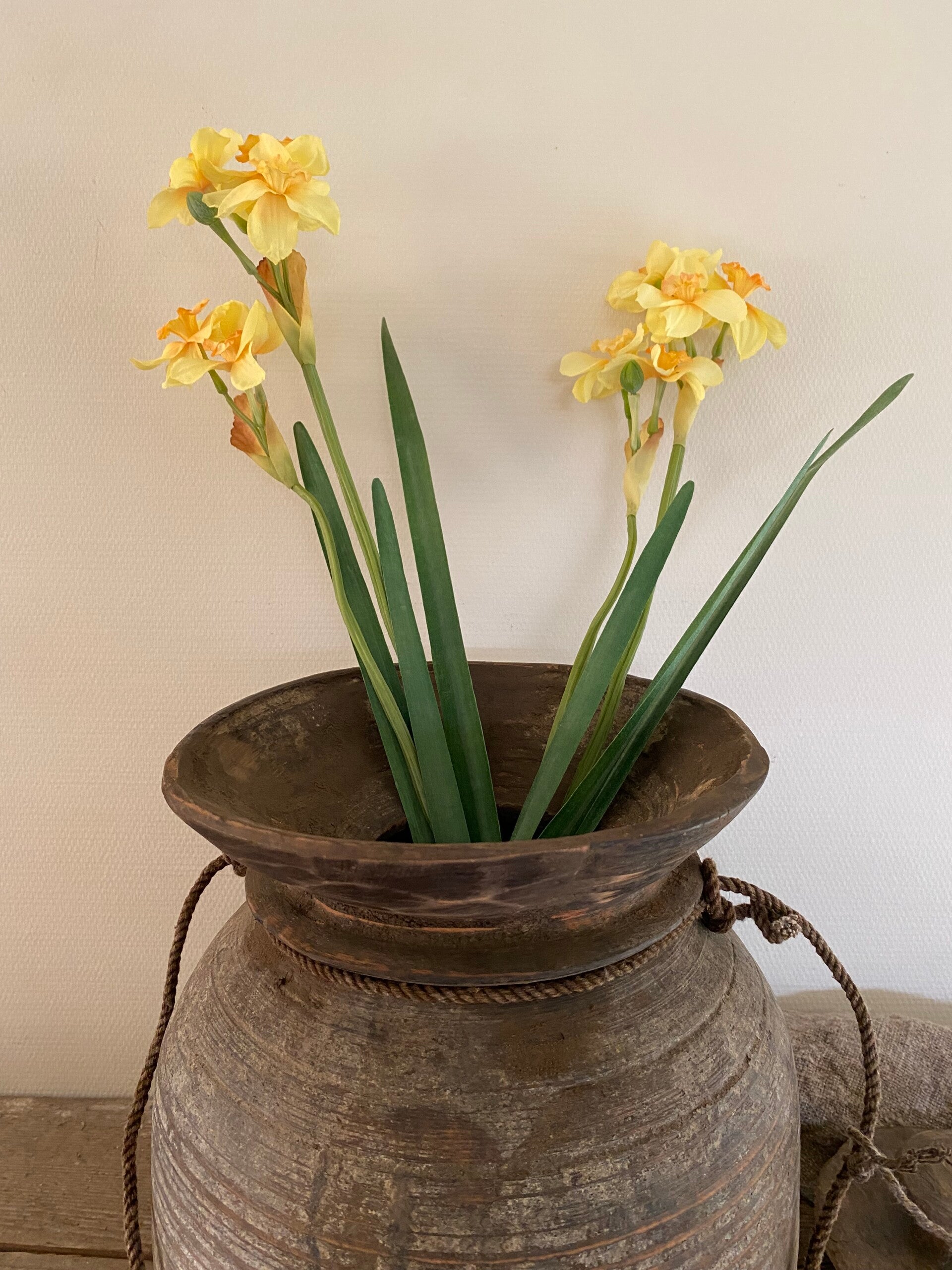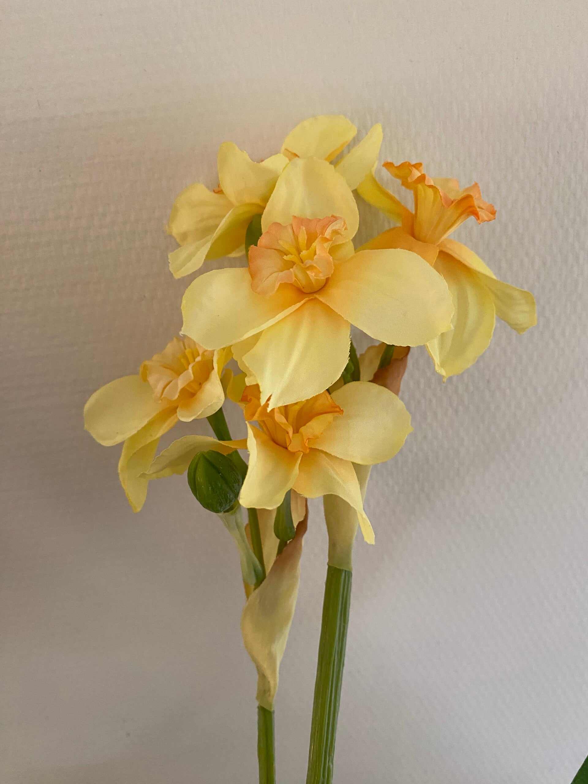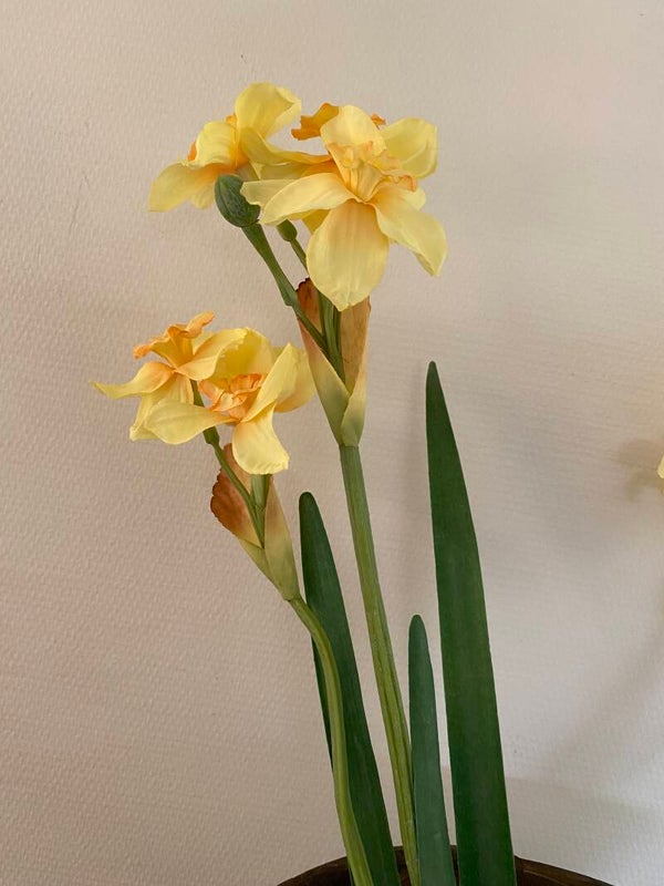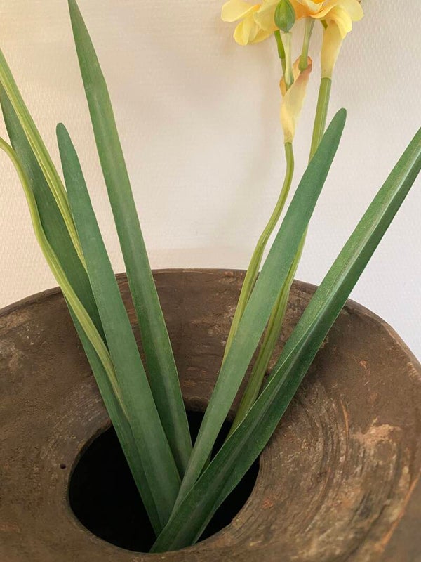 Narcis "de Luxe", 5 bloemen (Ø 6cm) , 2 knoppen & 3 bladeren, (grijs-groen blad), 53 cm