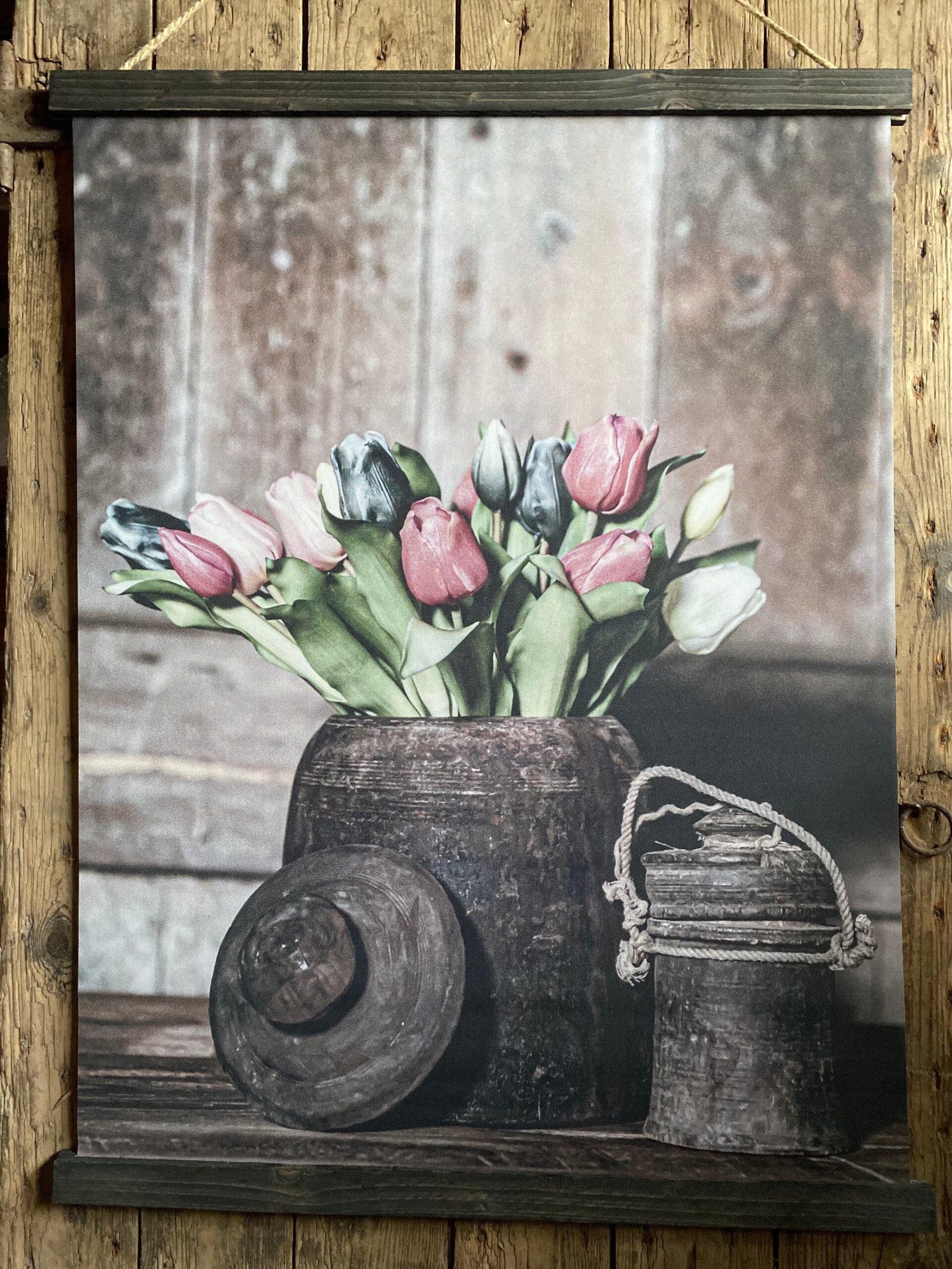 Prachtig voor in uw tuinhuis, overkapping of serre, maar ook in huis komt dit wanddoek goed tot zijn recht