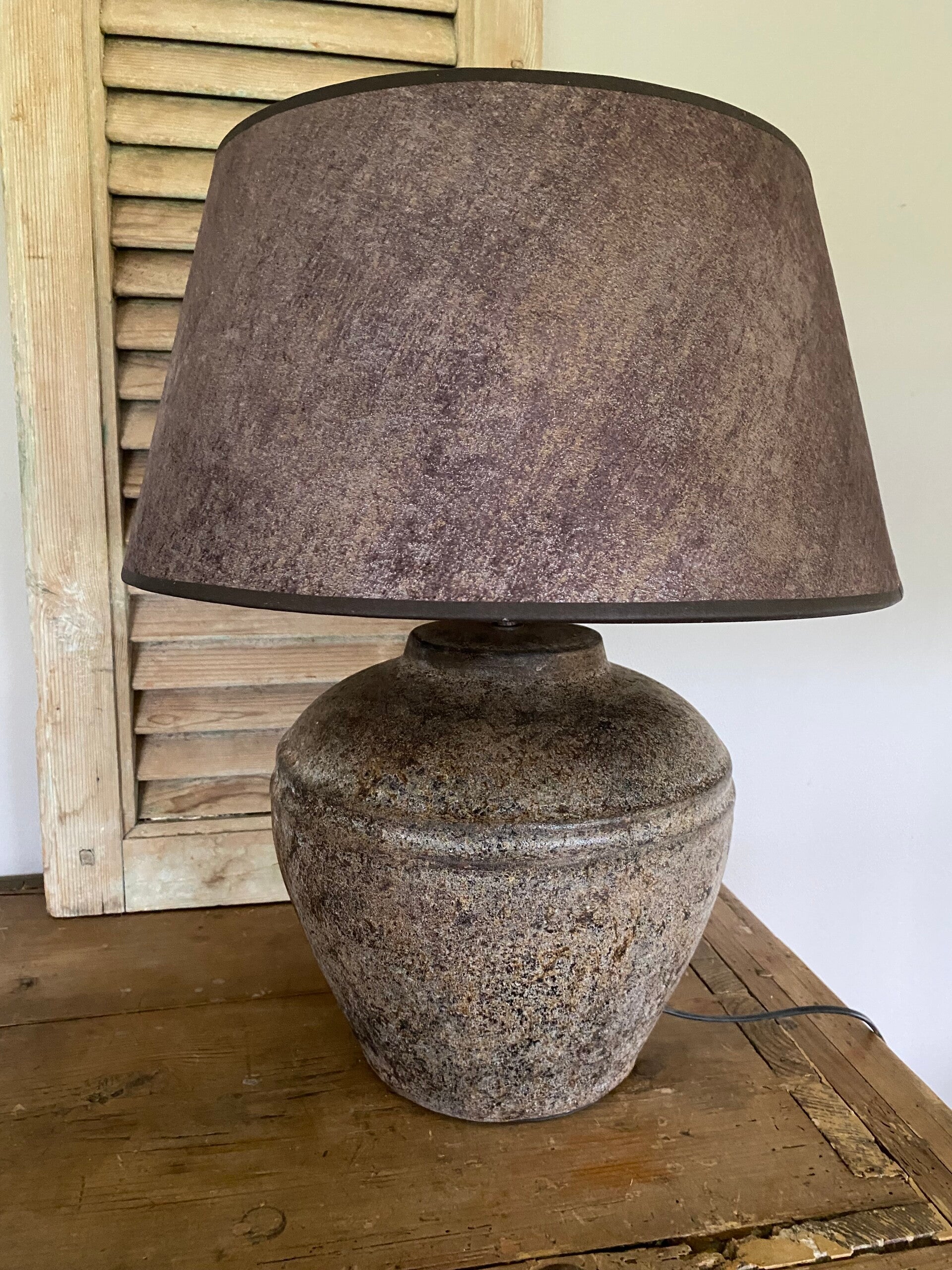 Kruiklamp met bruin/grijs gemêleerde lampenkap
