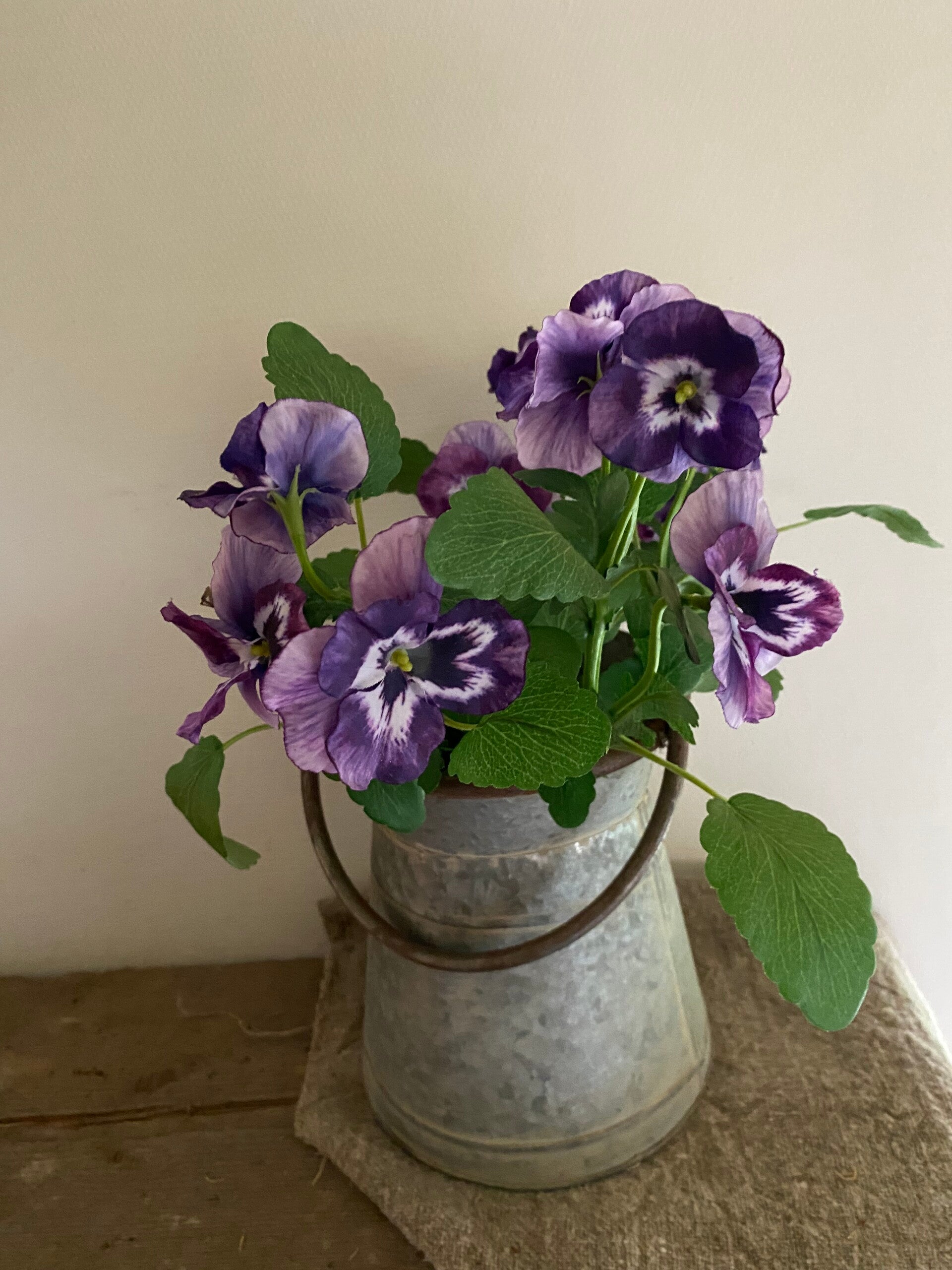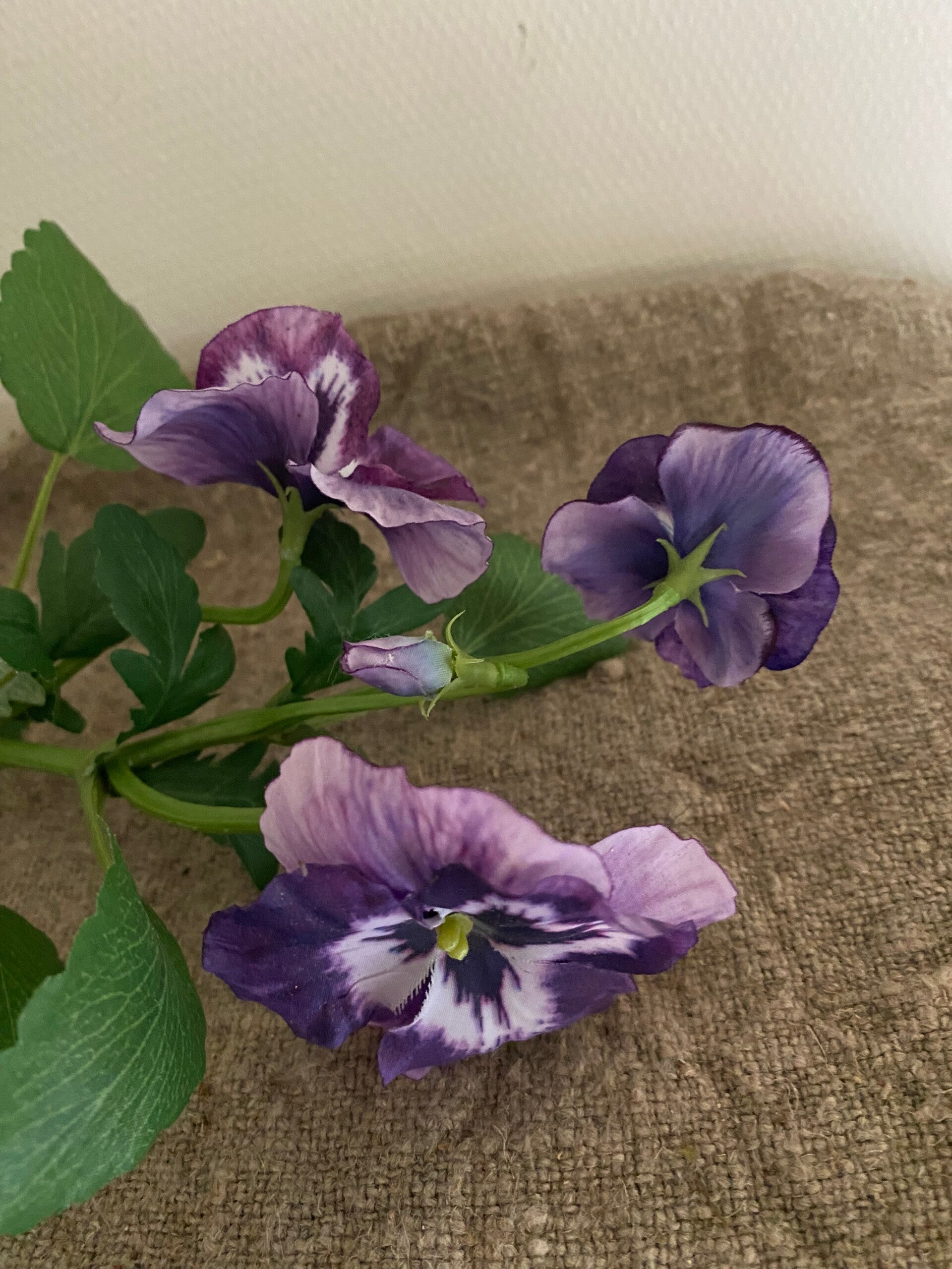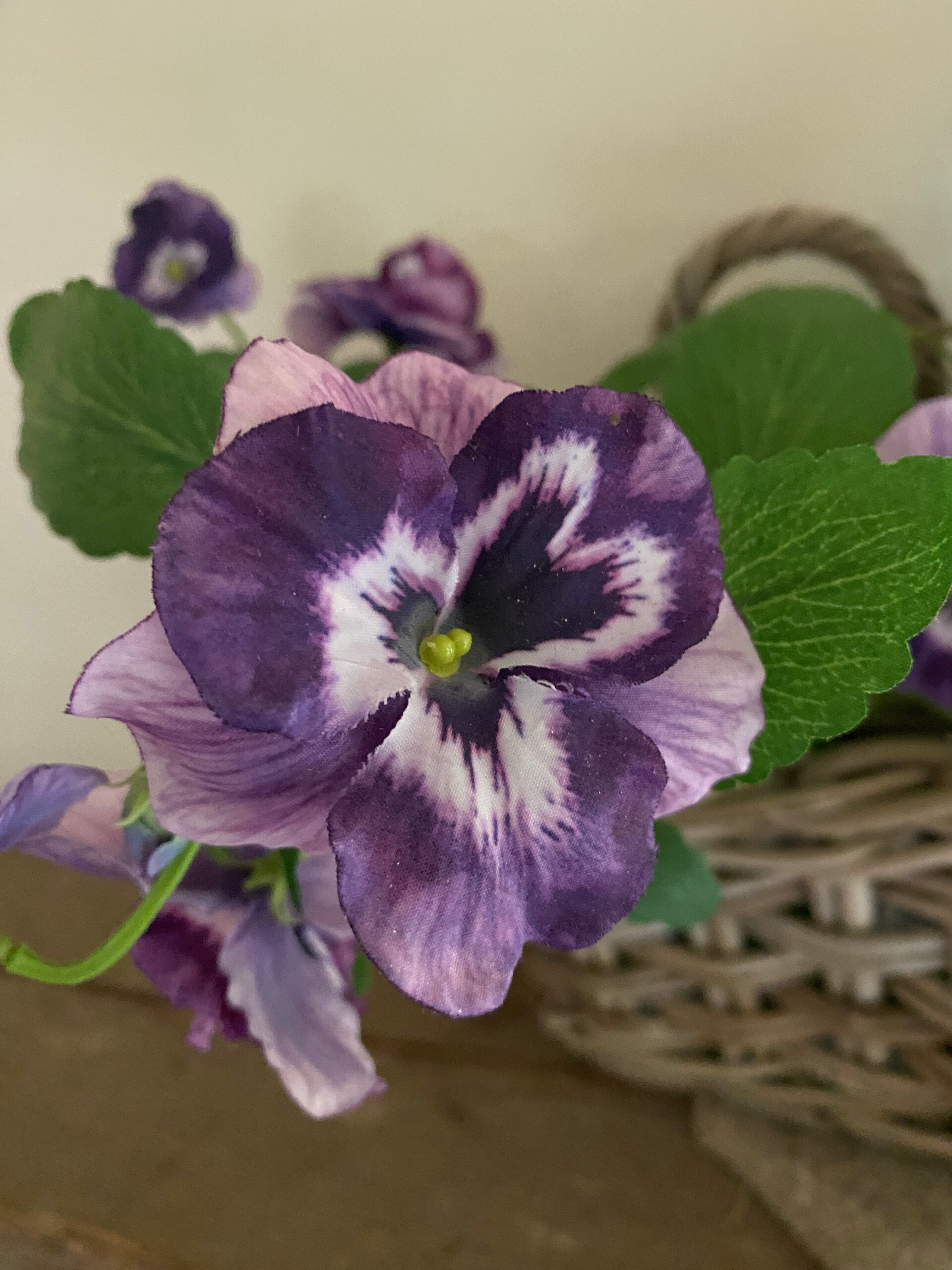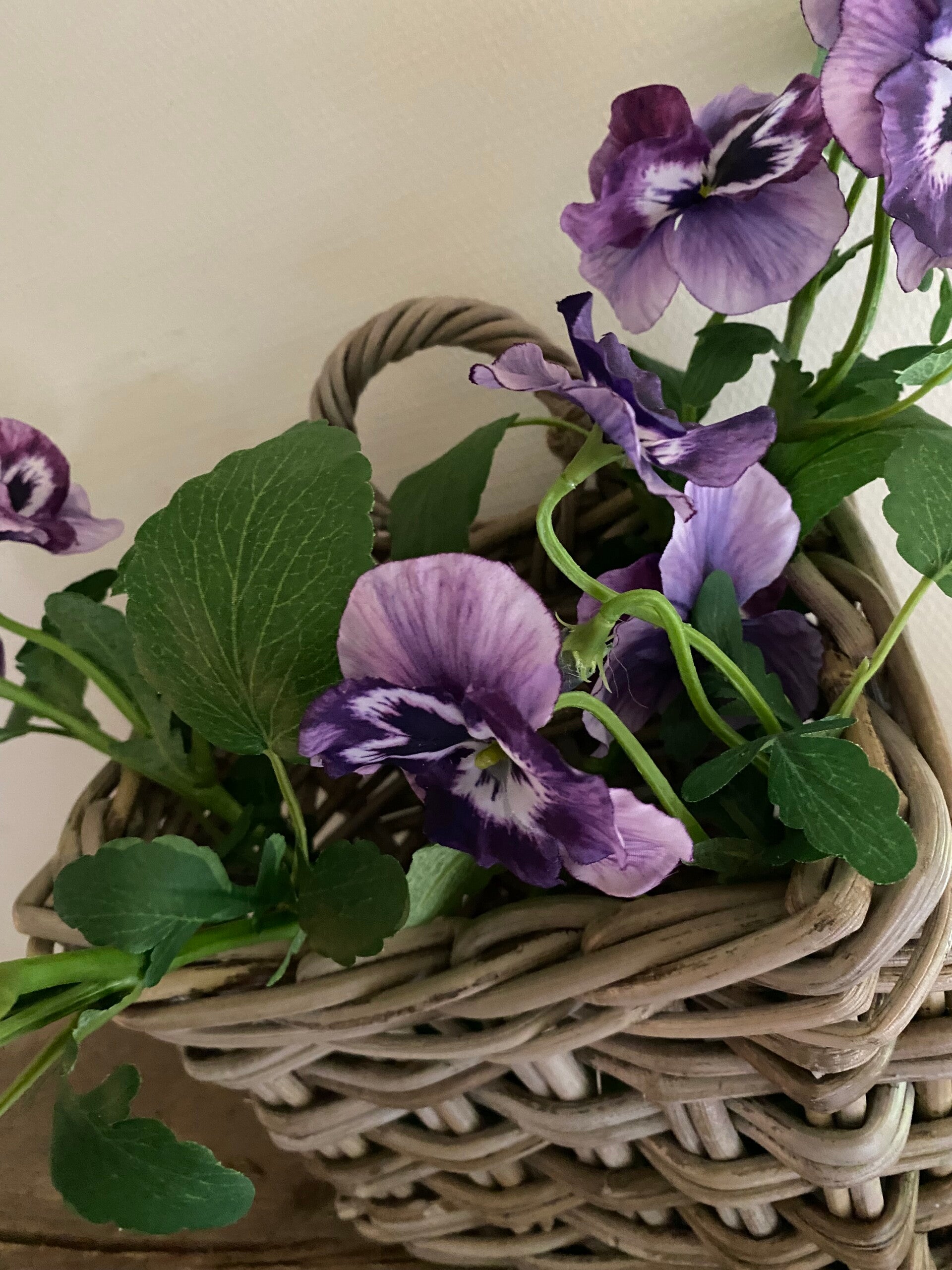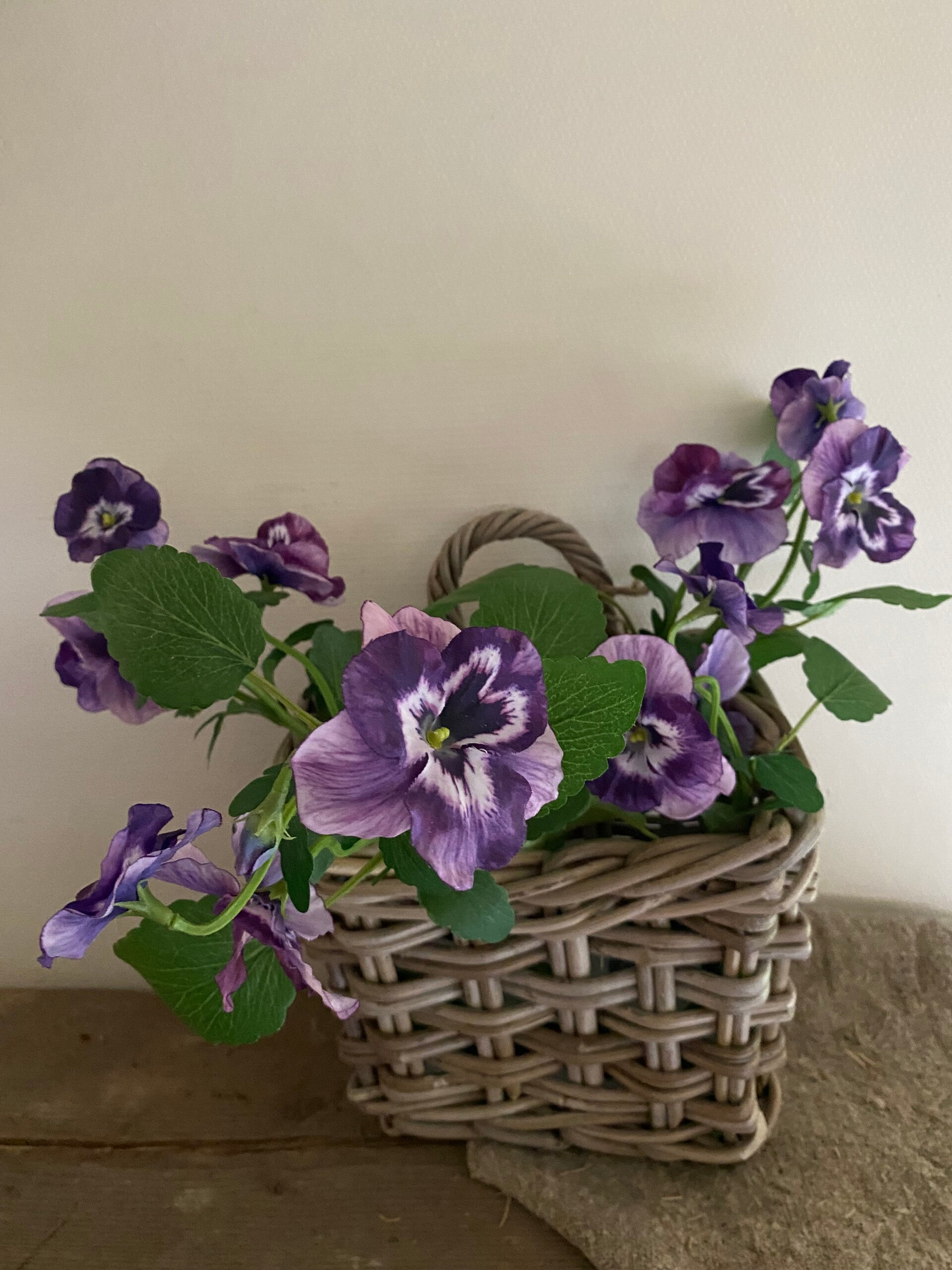 Set van drie takjes viooltjes plus een rotan hangmandje voor €22