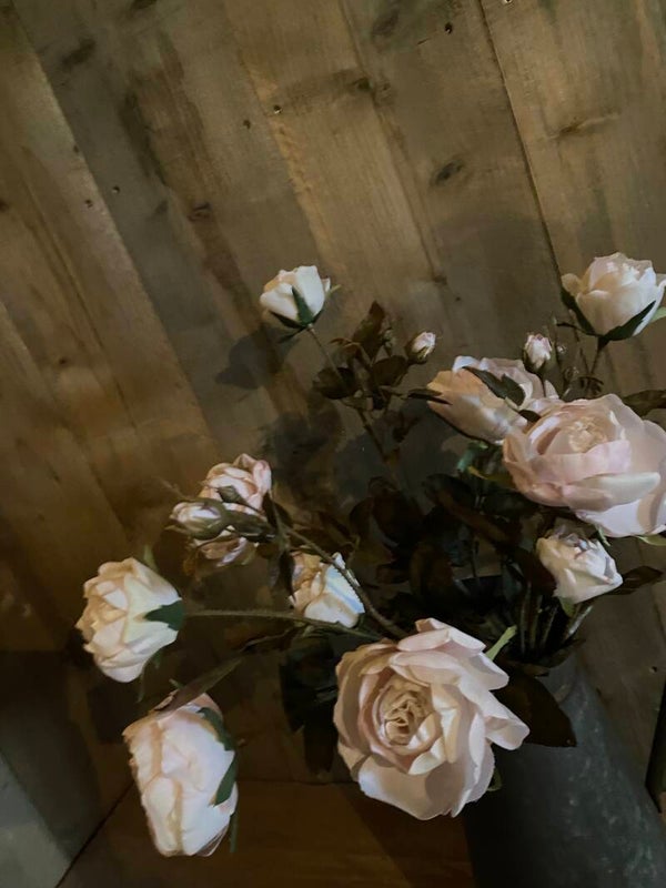 In het boeket bevinden zich drie takken rozen