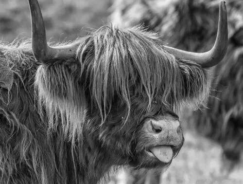 Tuinposter Schotse hooglander steekt de tong uit nr 144