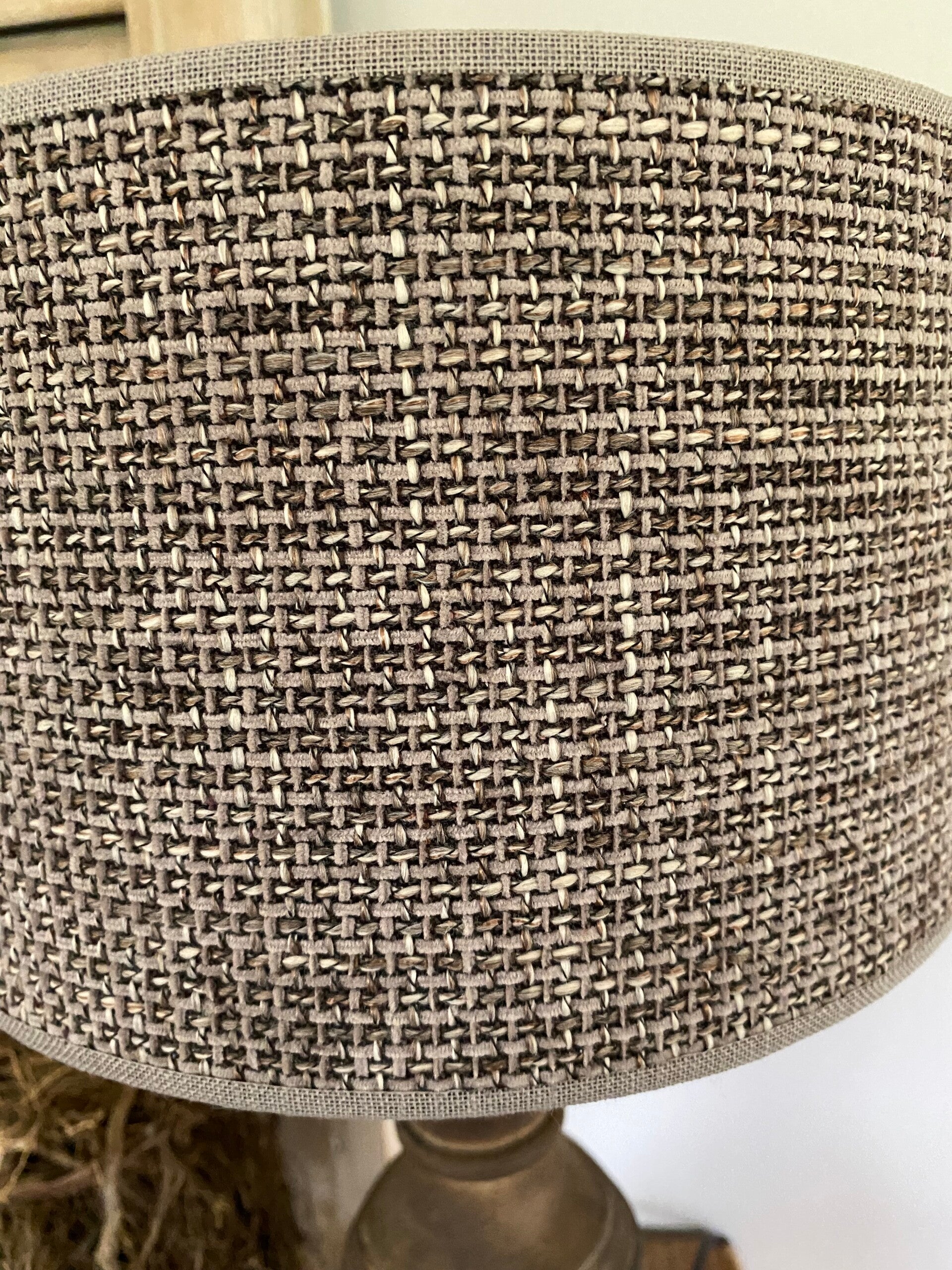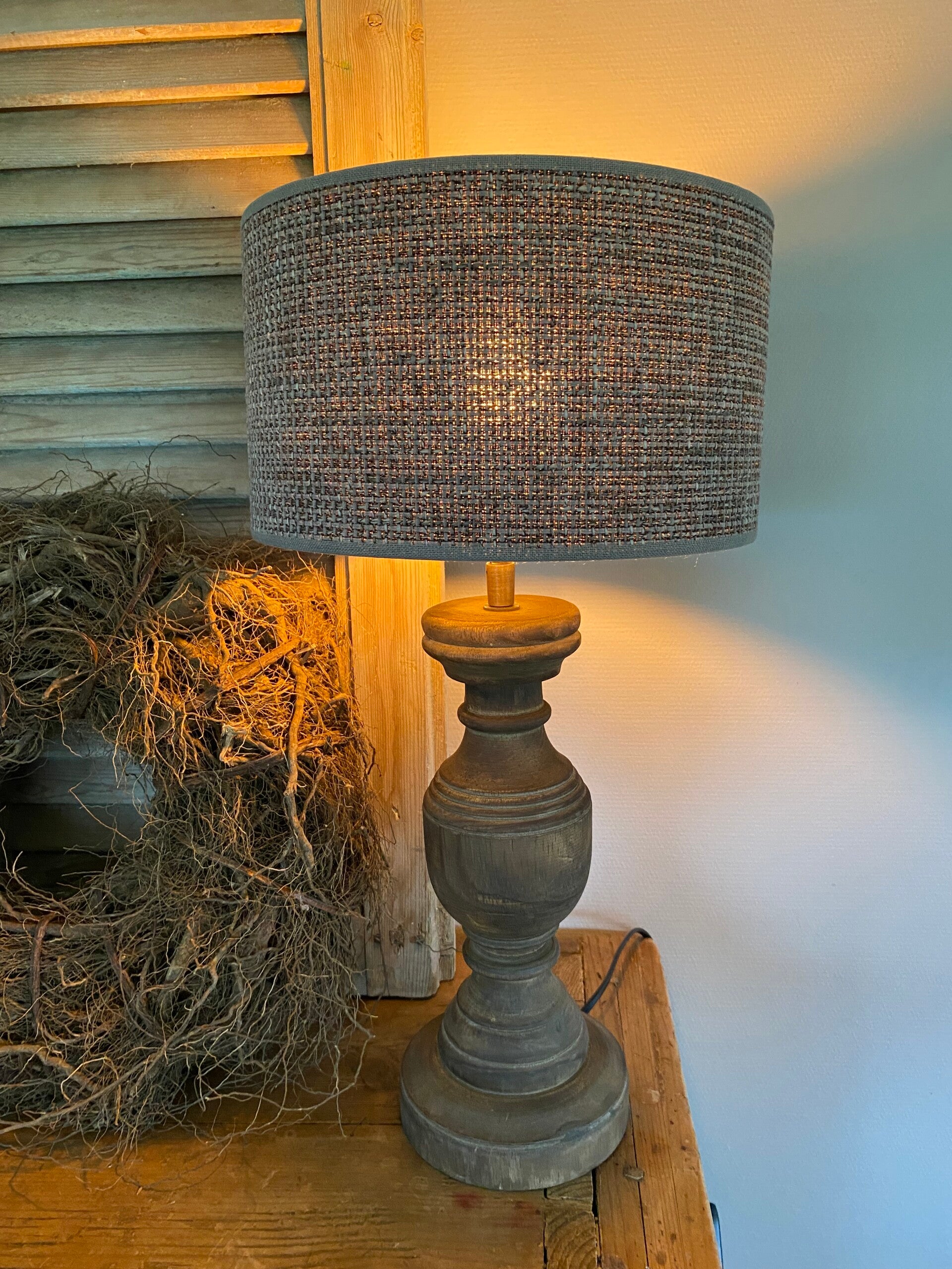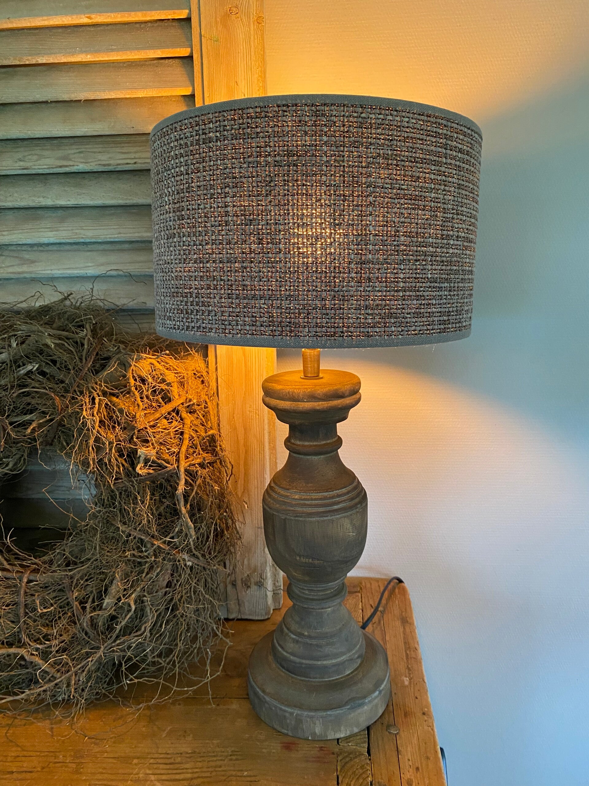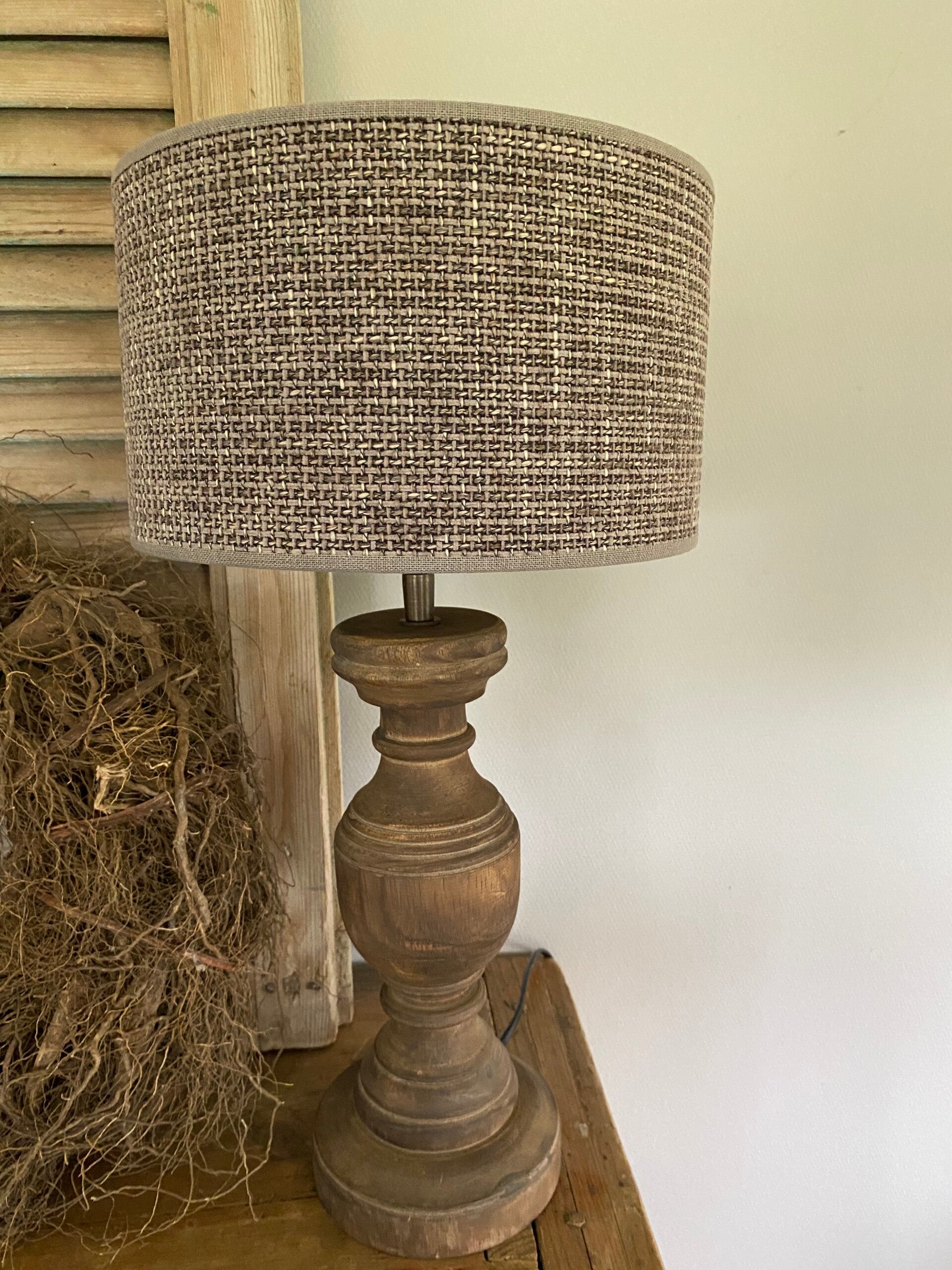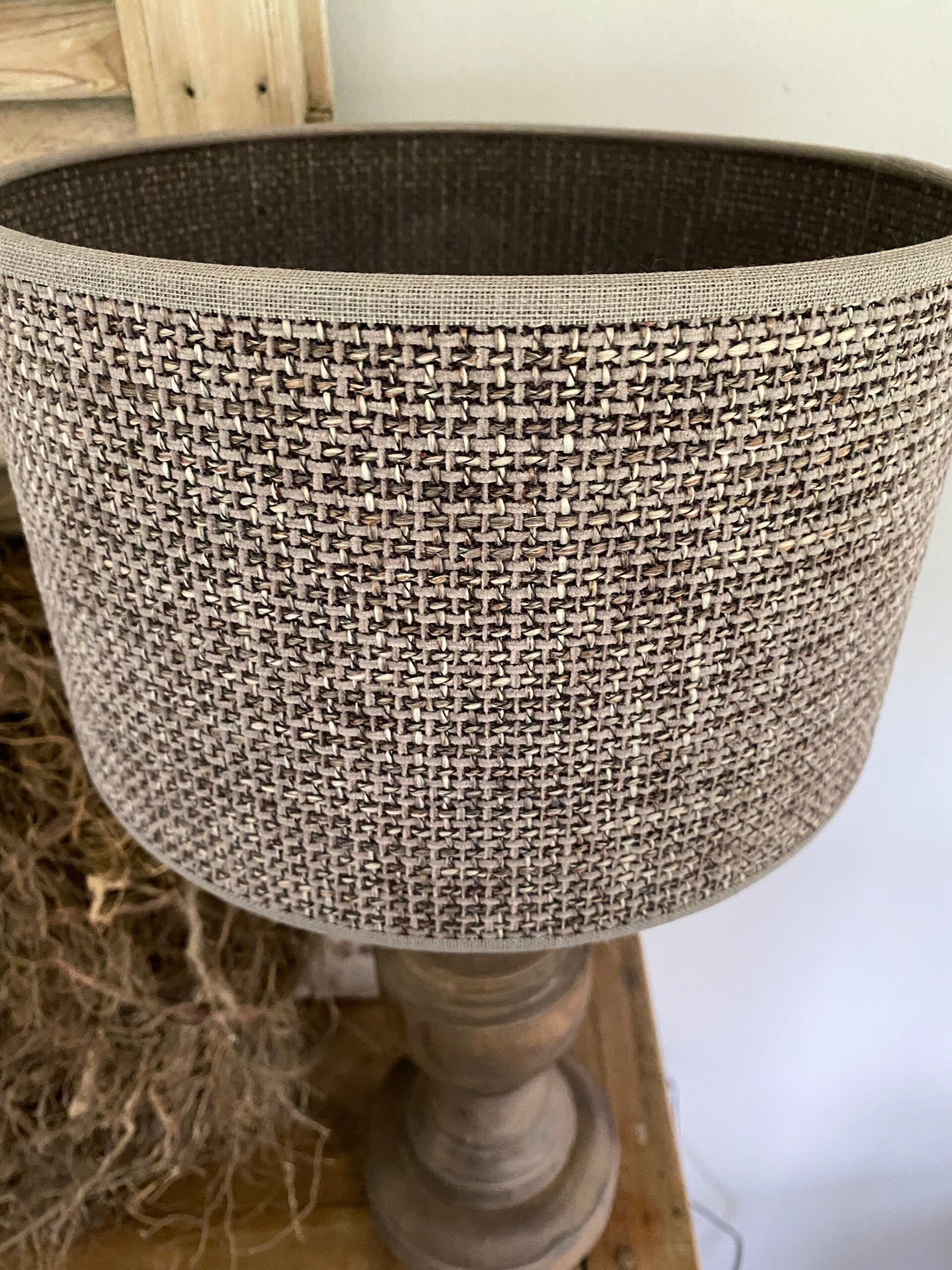 Stoer en landelijk met grove jutteachtige lampenkap.