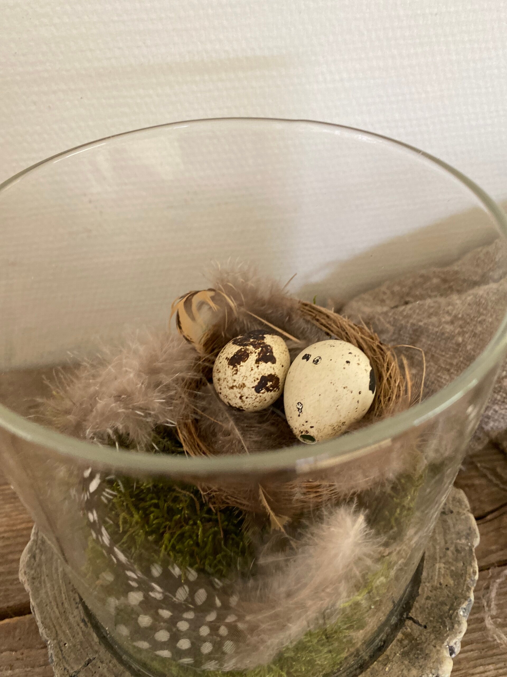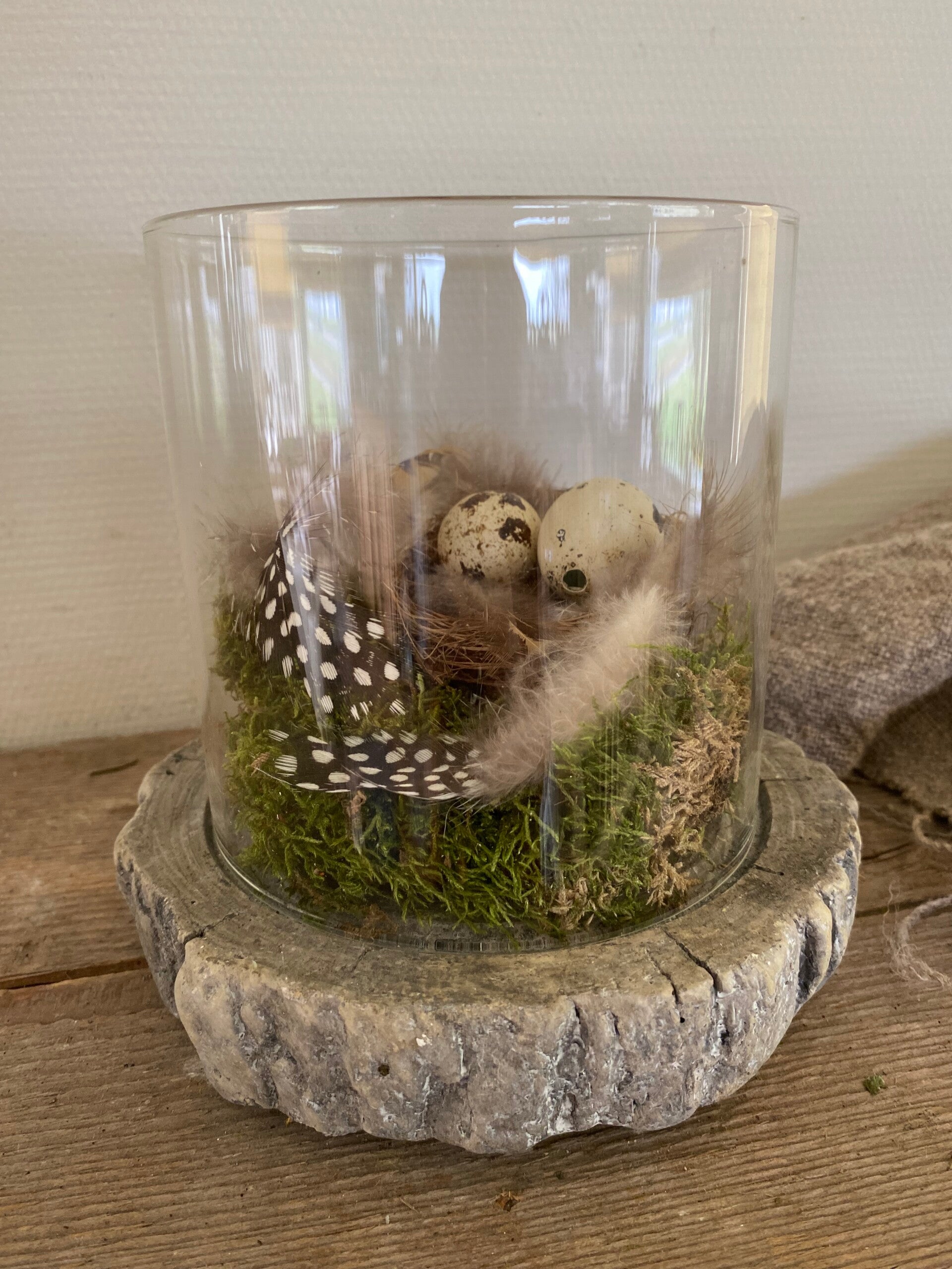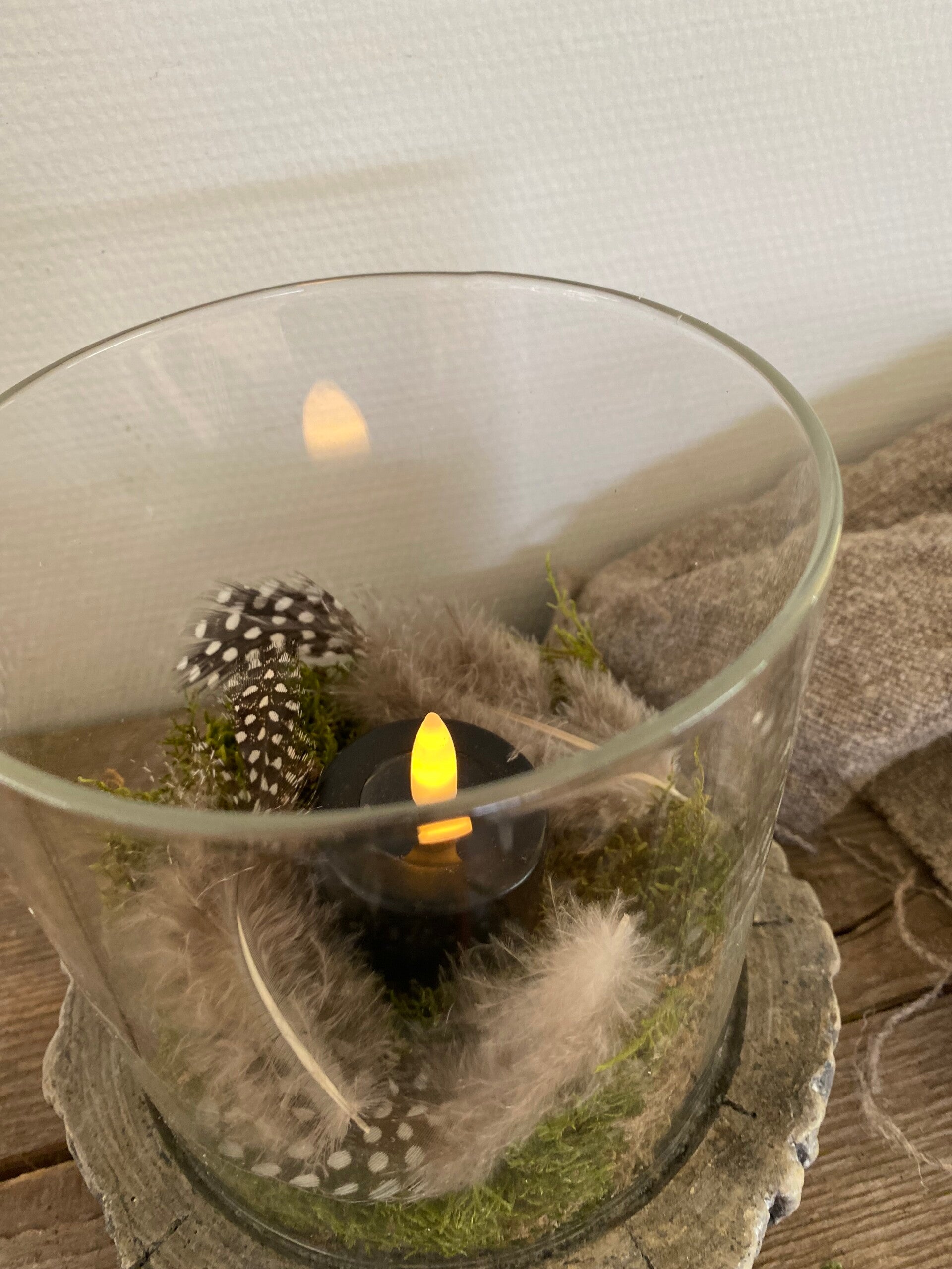 U kunt er een kaars of waxine in doen maar ook erg leuk met het voorjaar, wat mos, nestje met kwarteleitjes en veertjes.