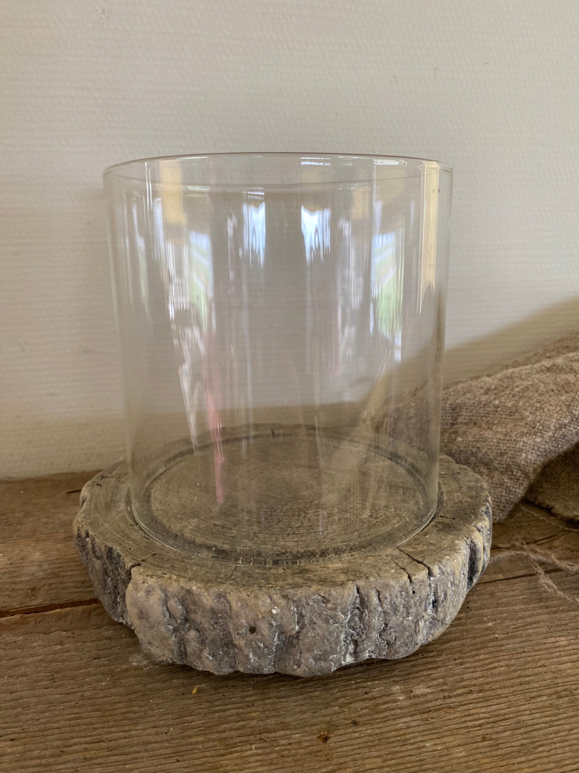 Windlicht op stenen grijze boomstam