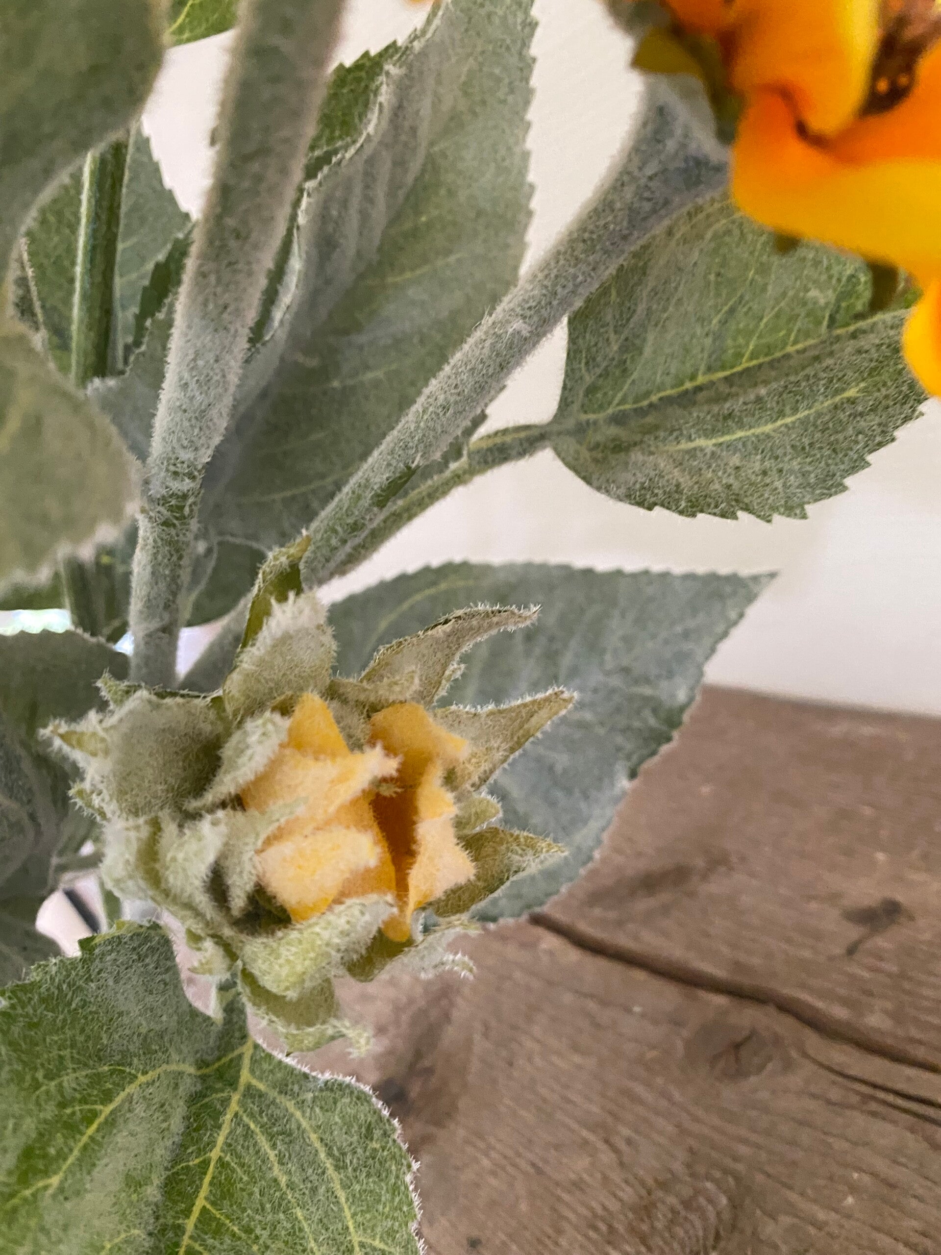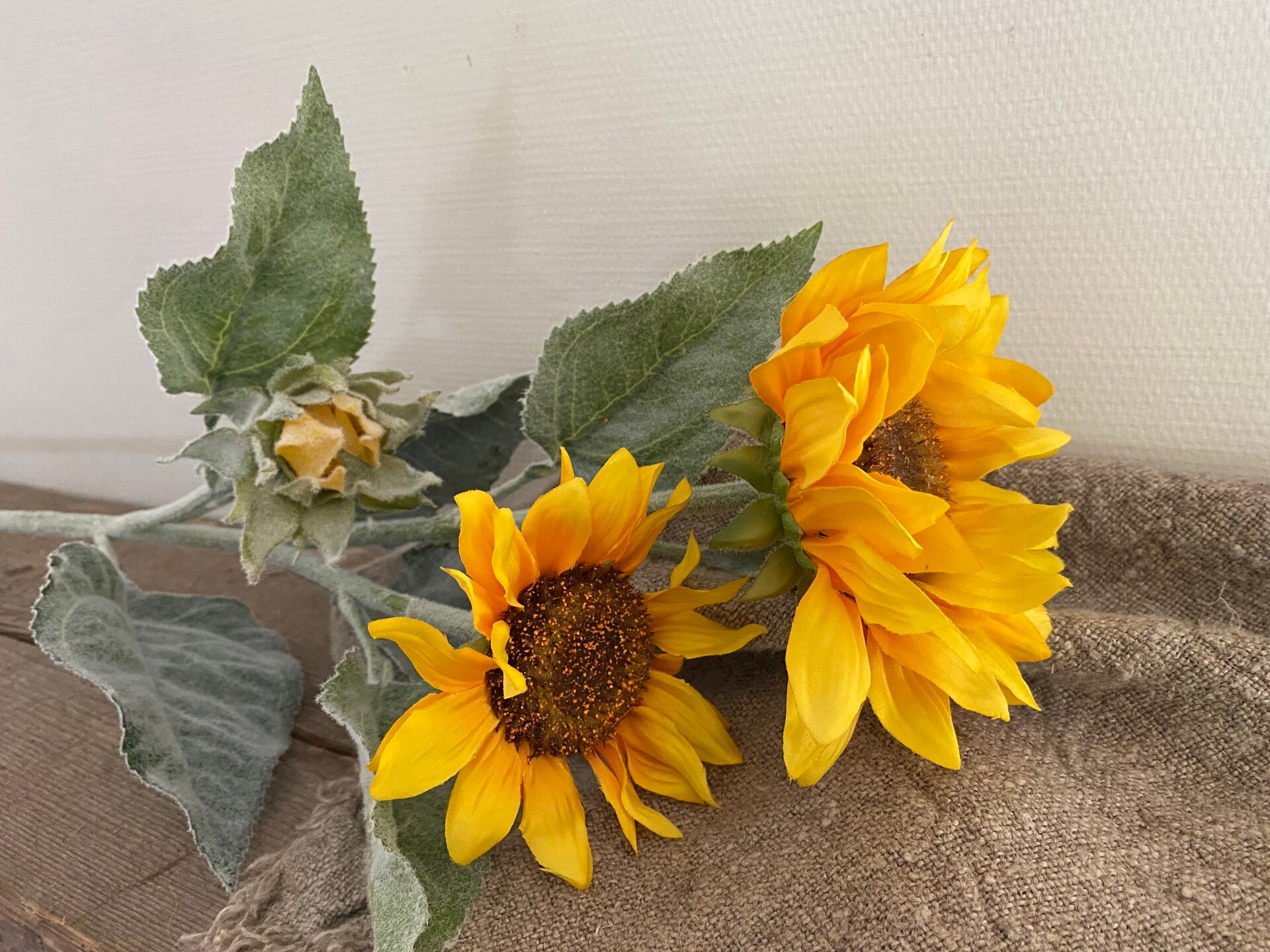 2 bloemen, (ø12/15cm), 1 knop en 7 bladeren