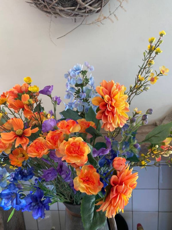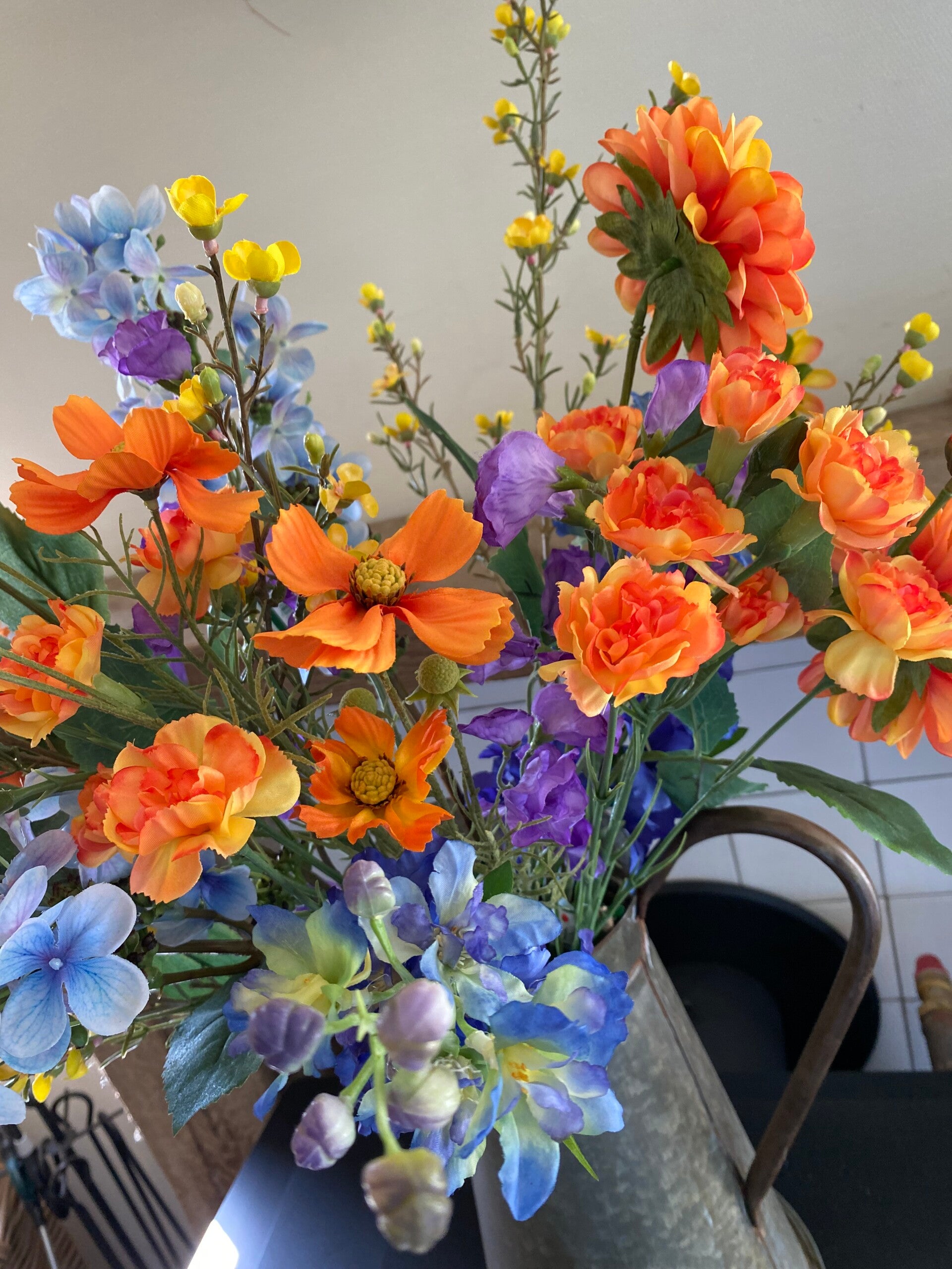 4x vertakt met 7 bloemen (Ø 5cm/ Ø 2 cm) & 1 knop