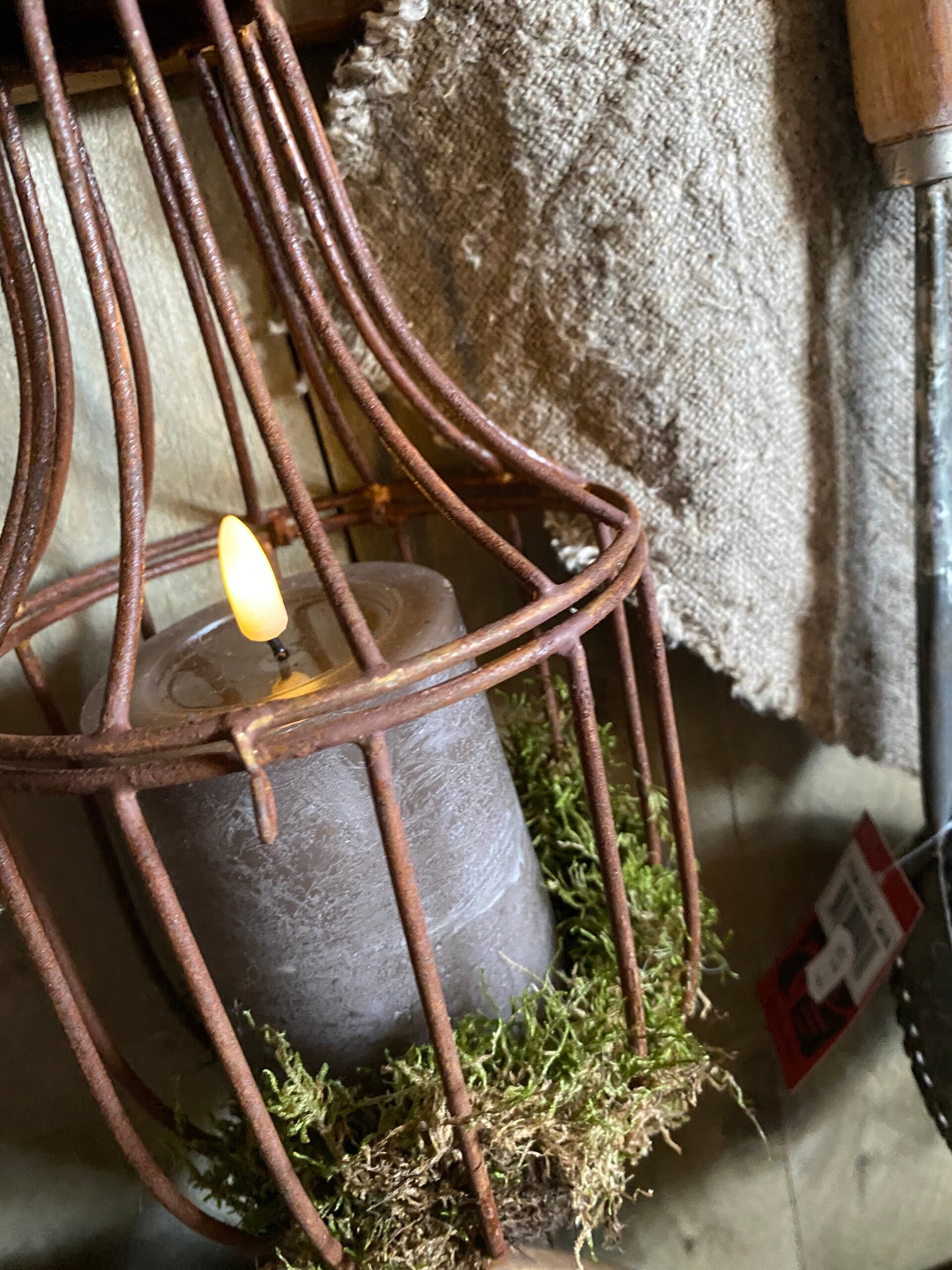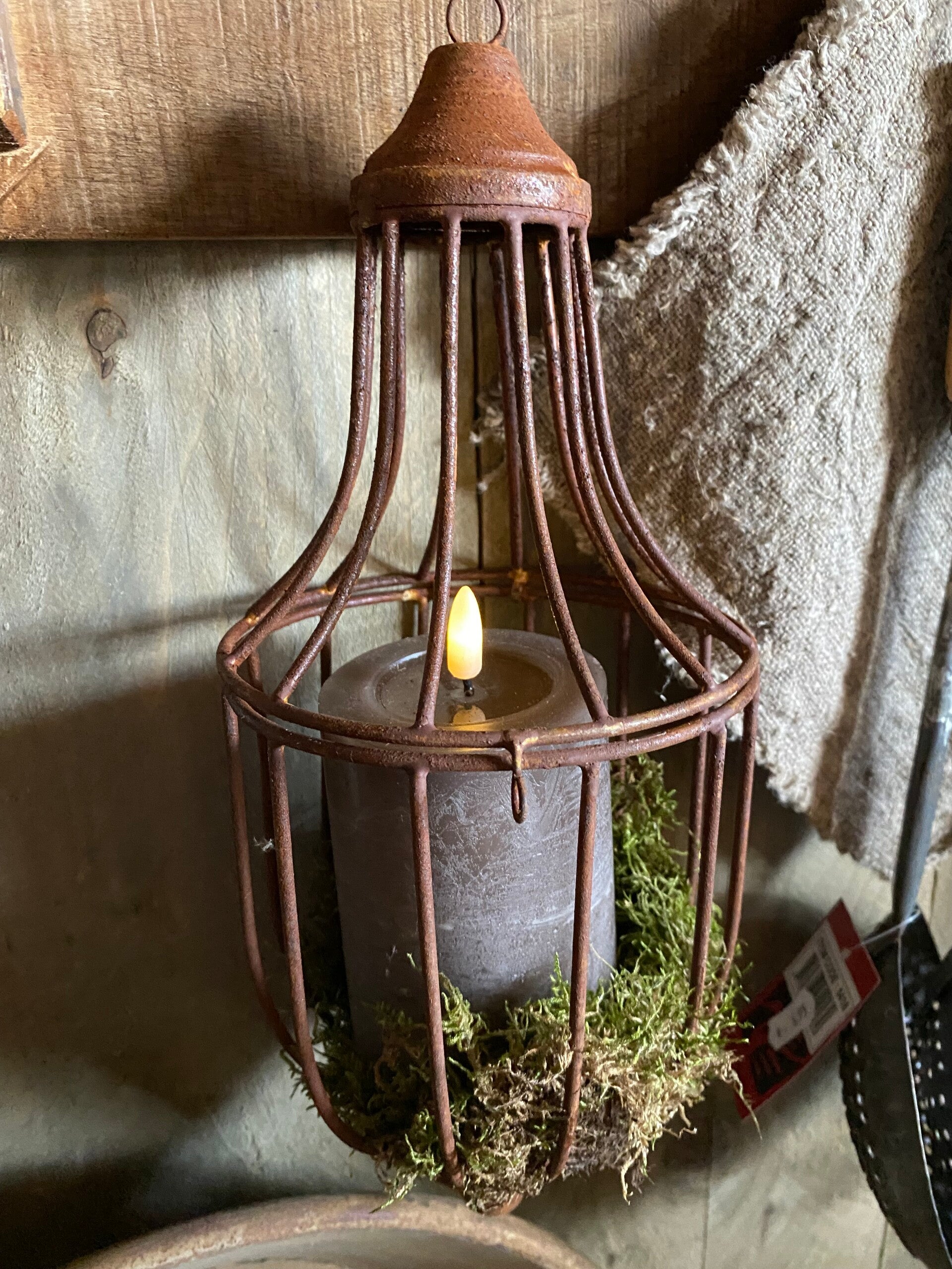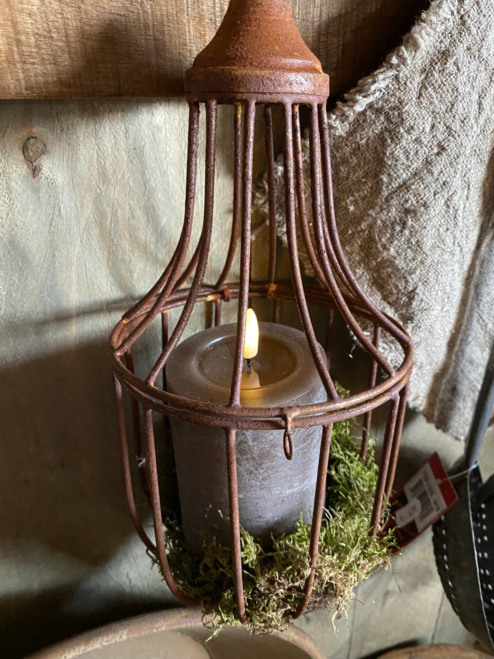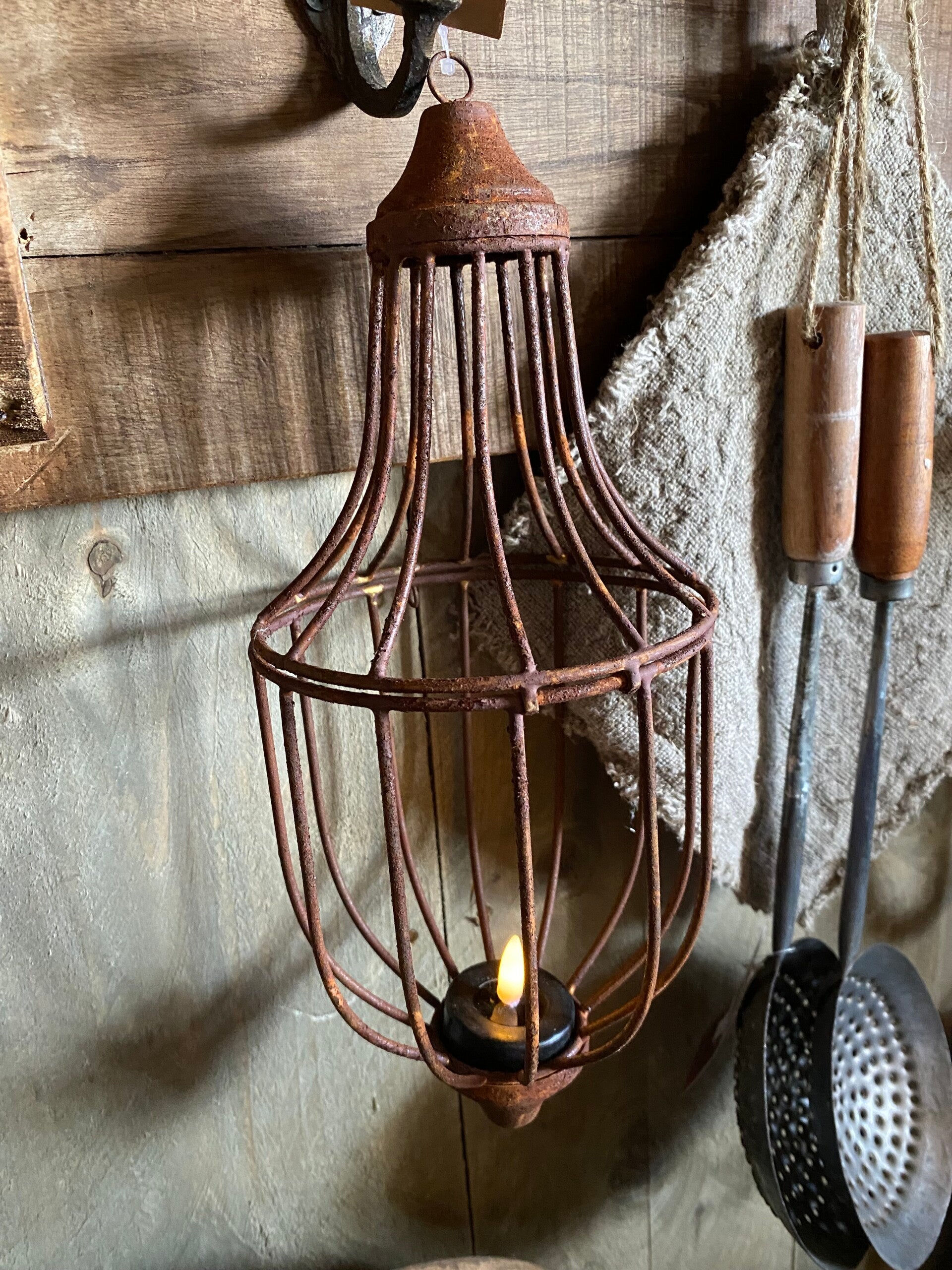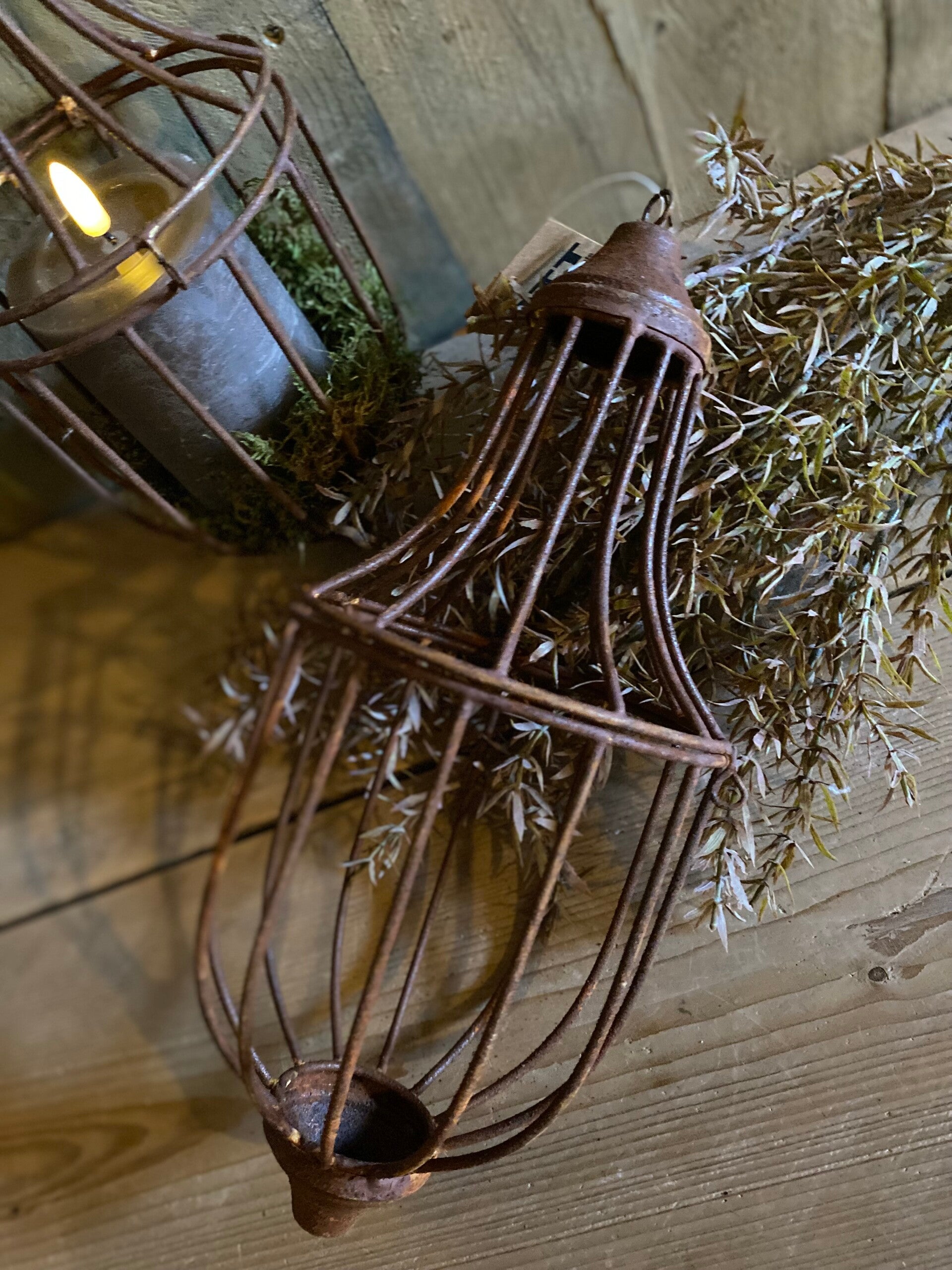 Roestige windlicht/ornament hanger