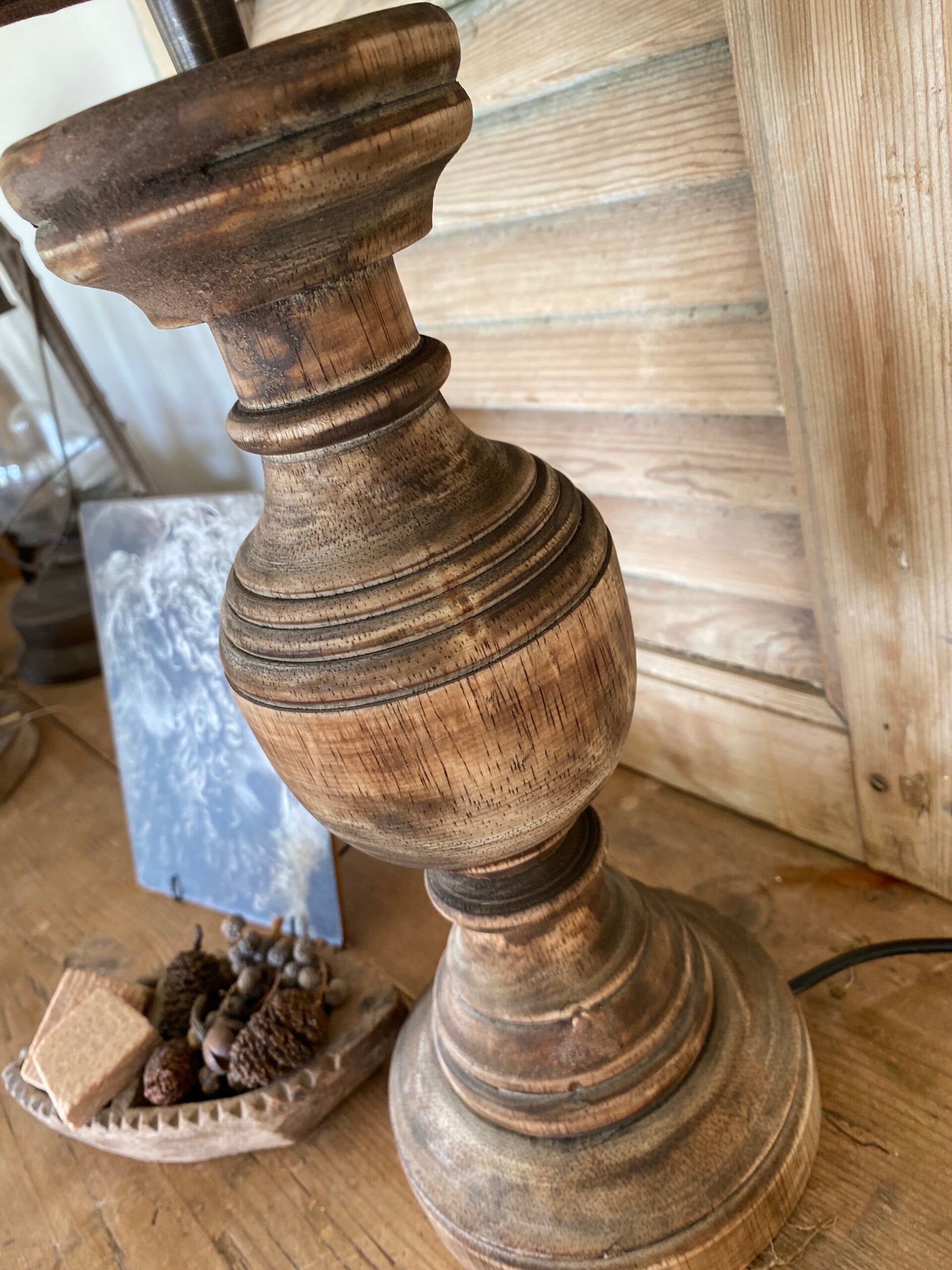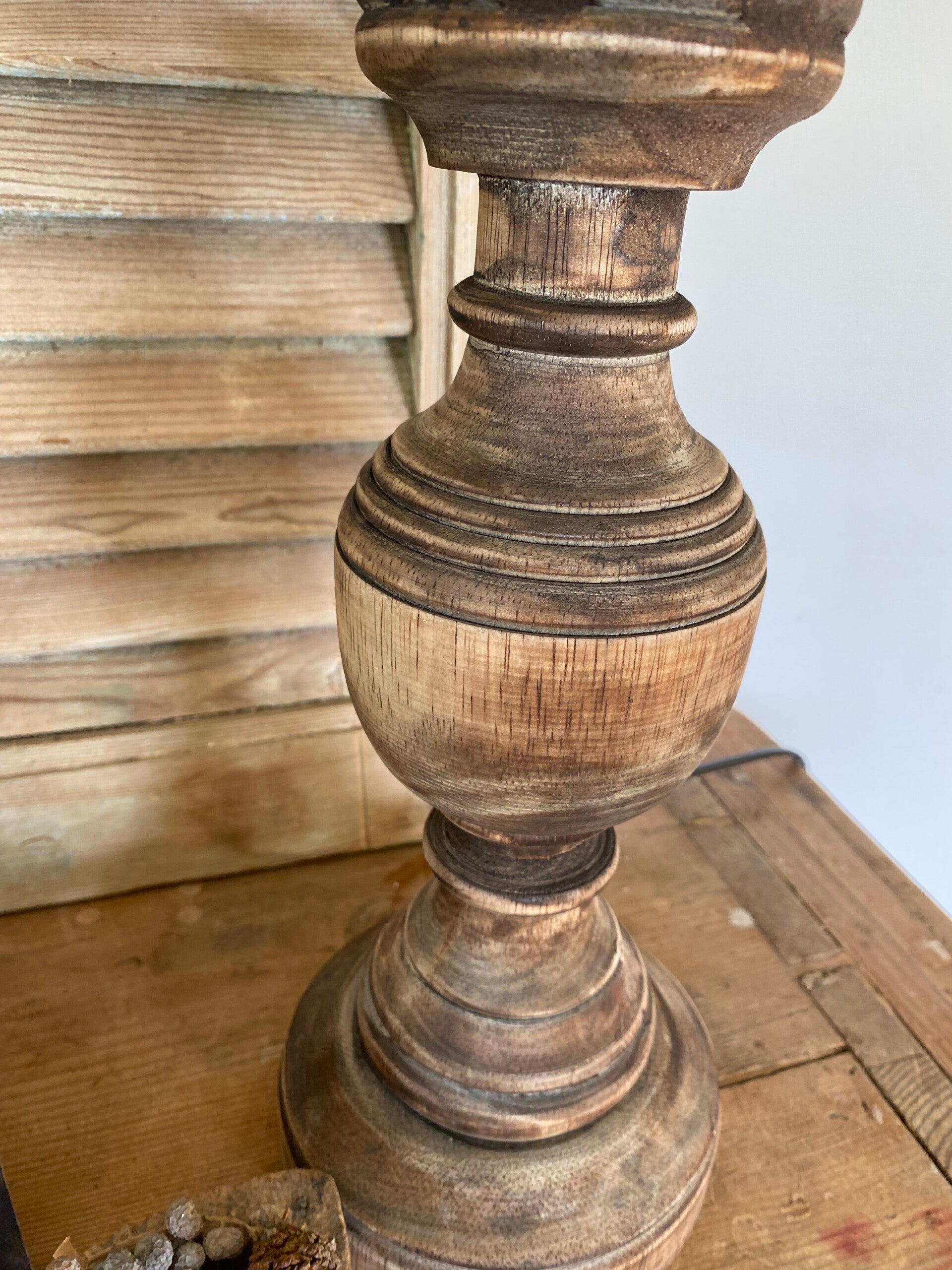 De balusterlamp is van hout. Hout kan altijd nog iets gaan werken!