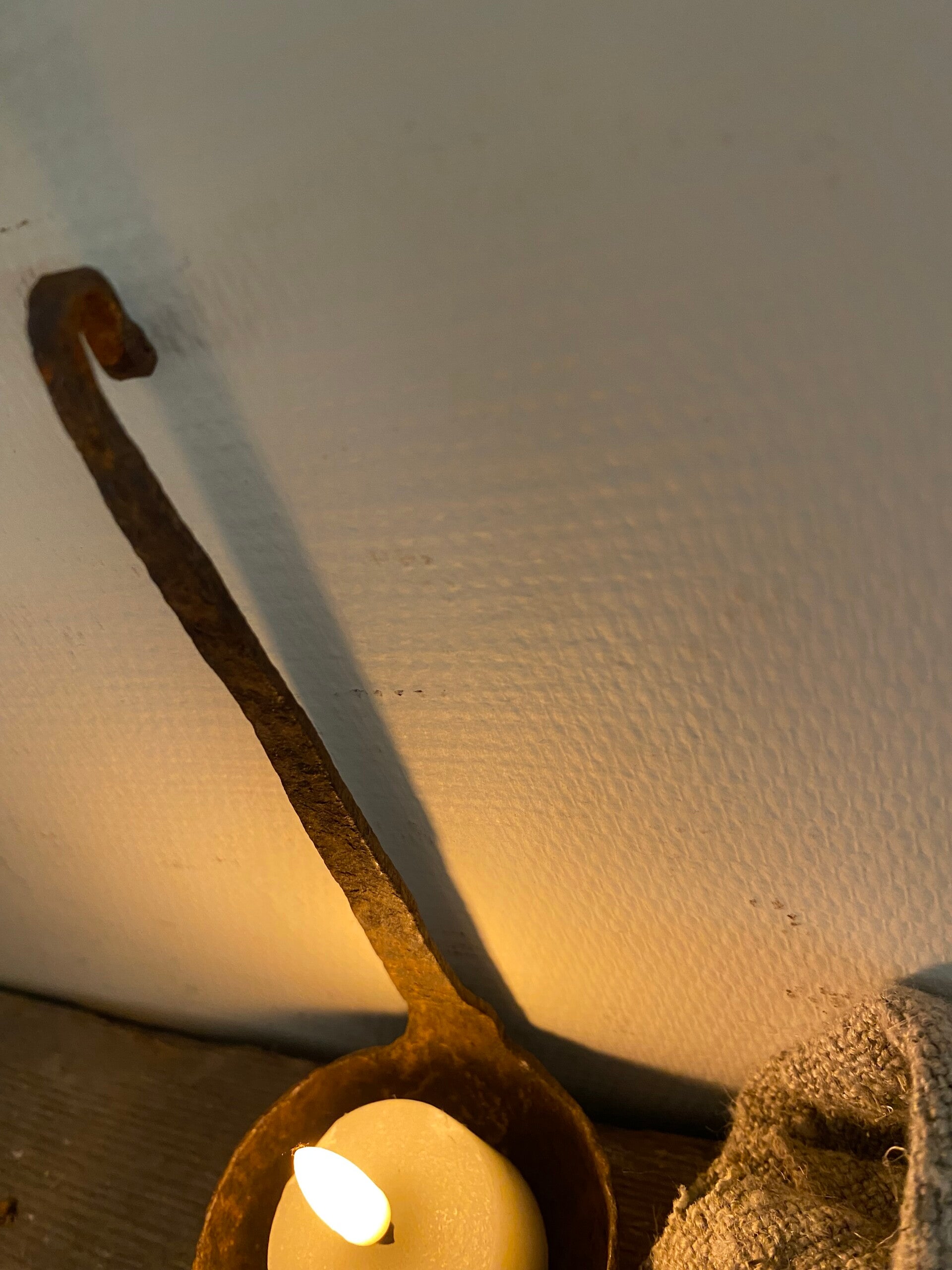 Oude roestige kleine lepel met een haakje