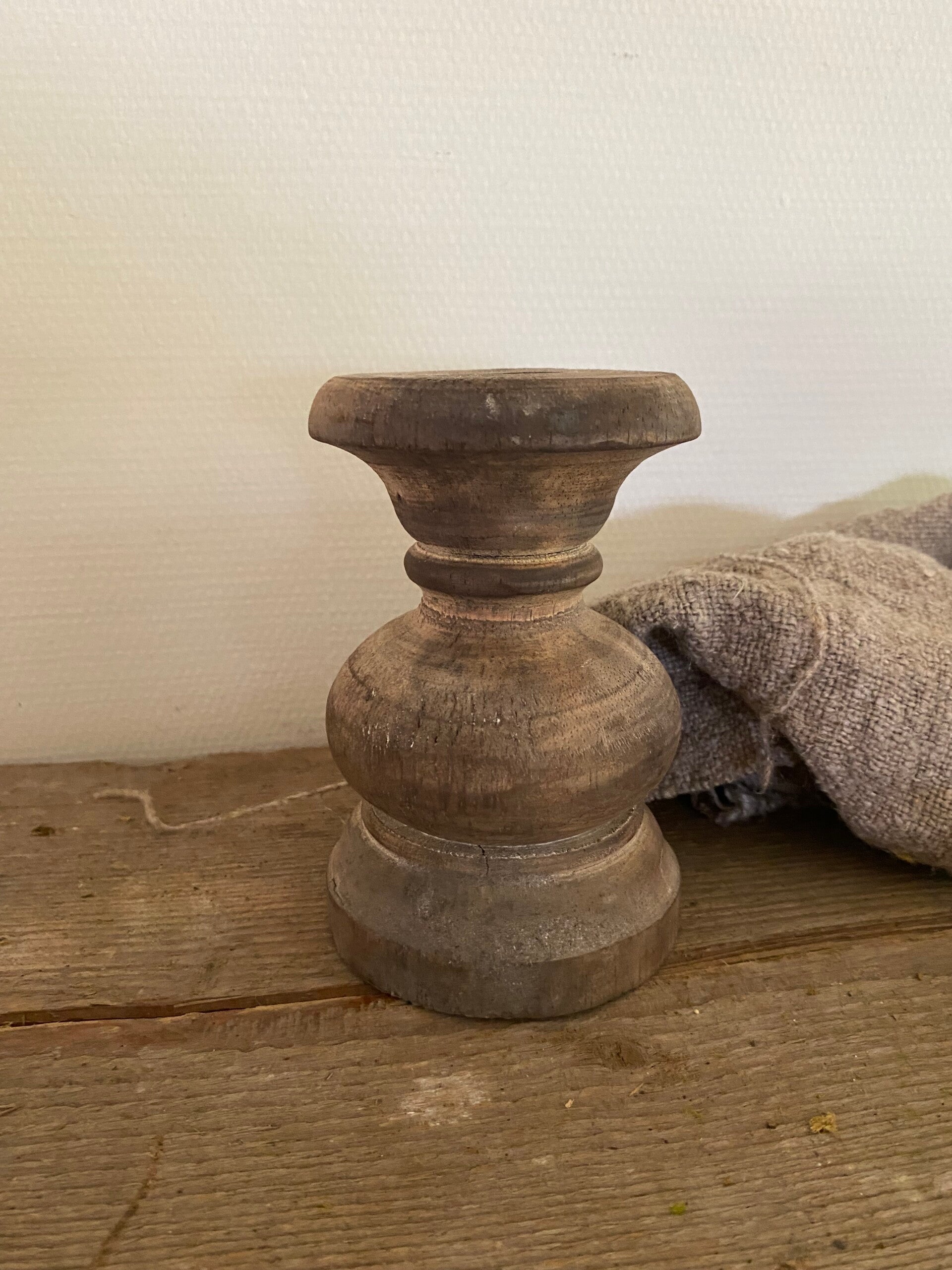 Houten vergrijsd houten kandelaar