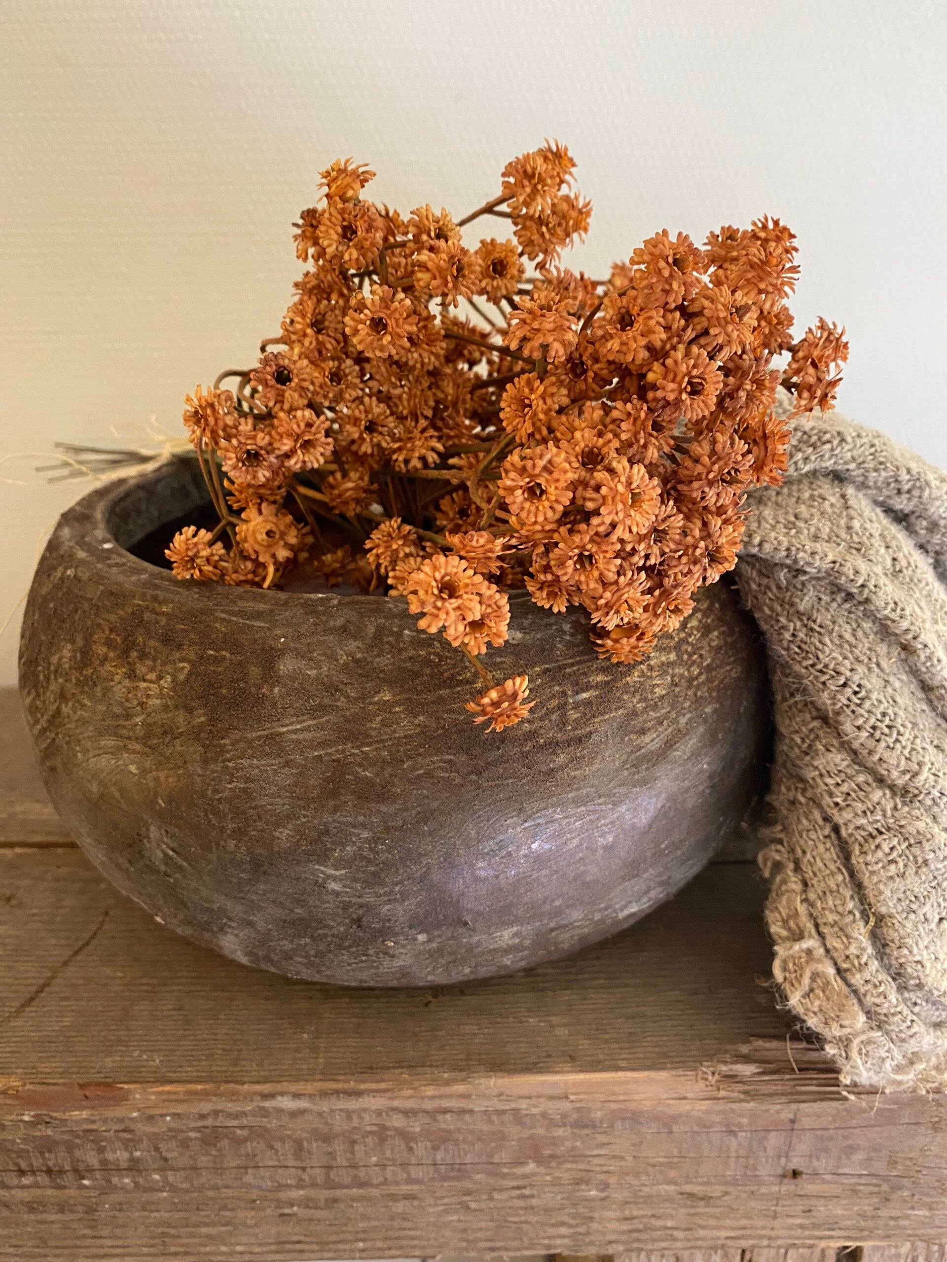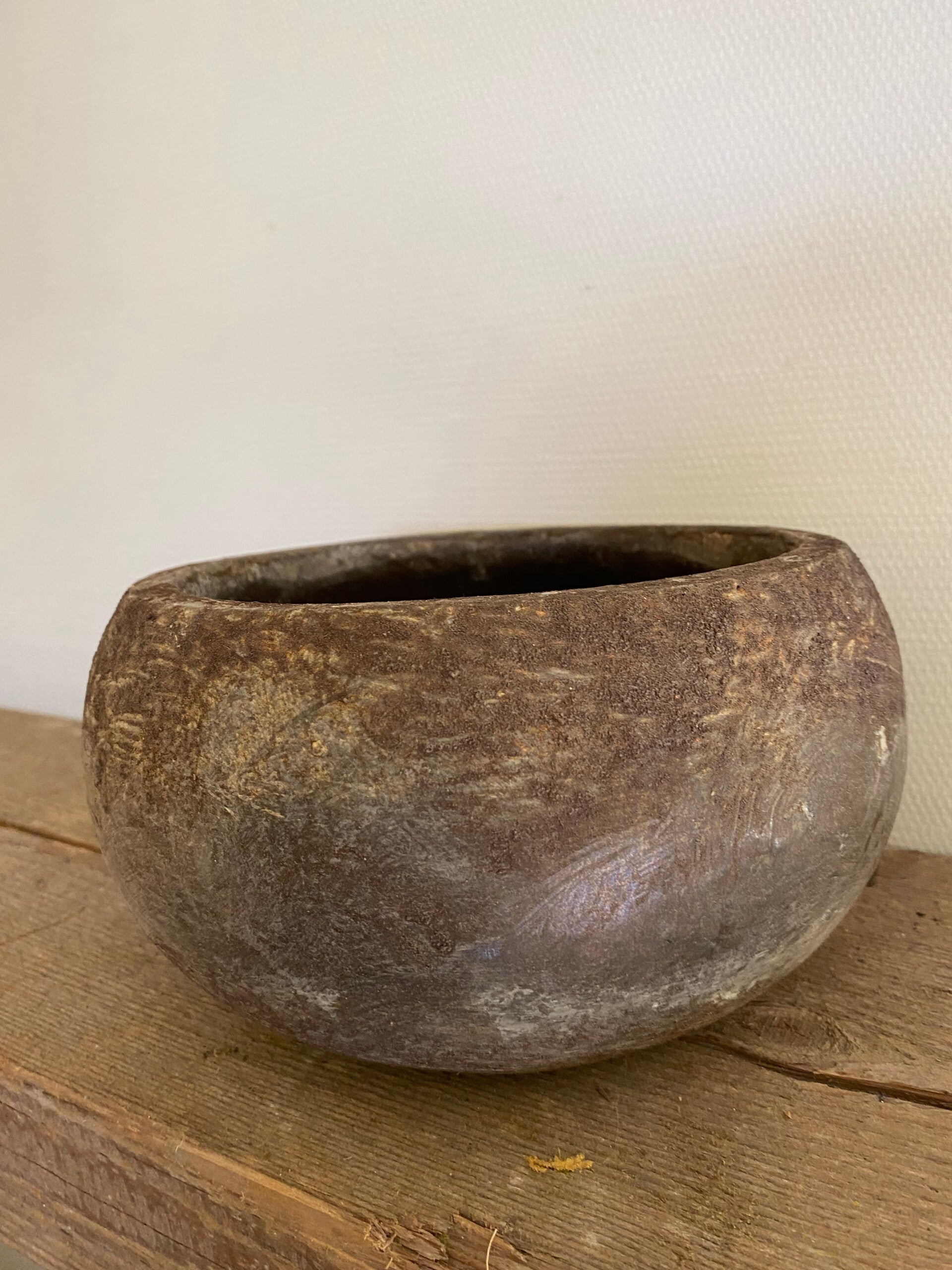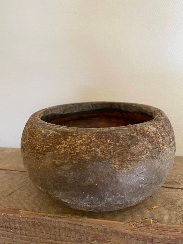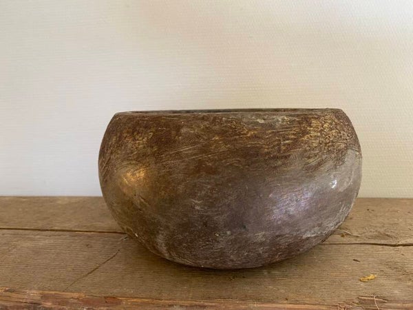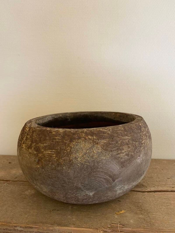 Roest bruine ronde pot met een lichte zink grijze twist