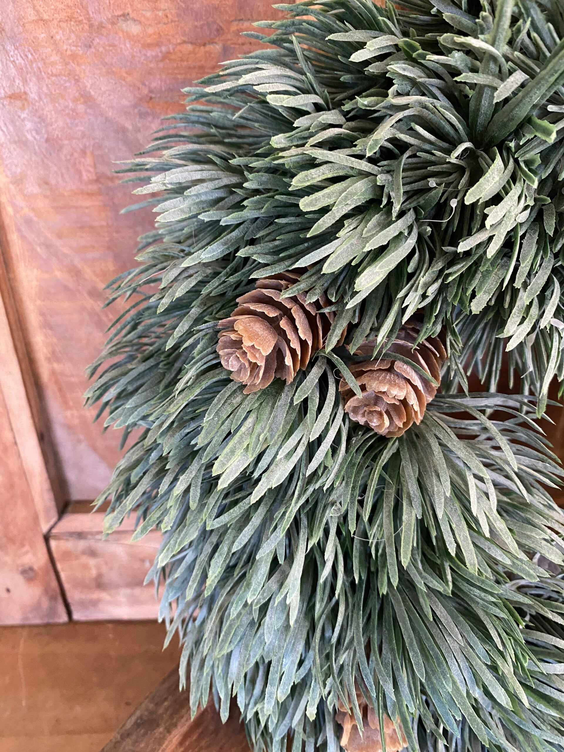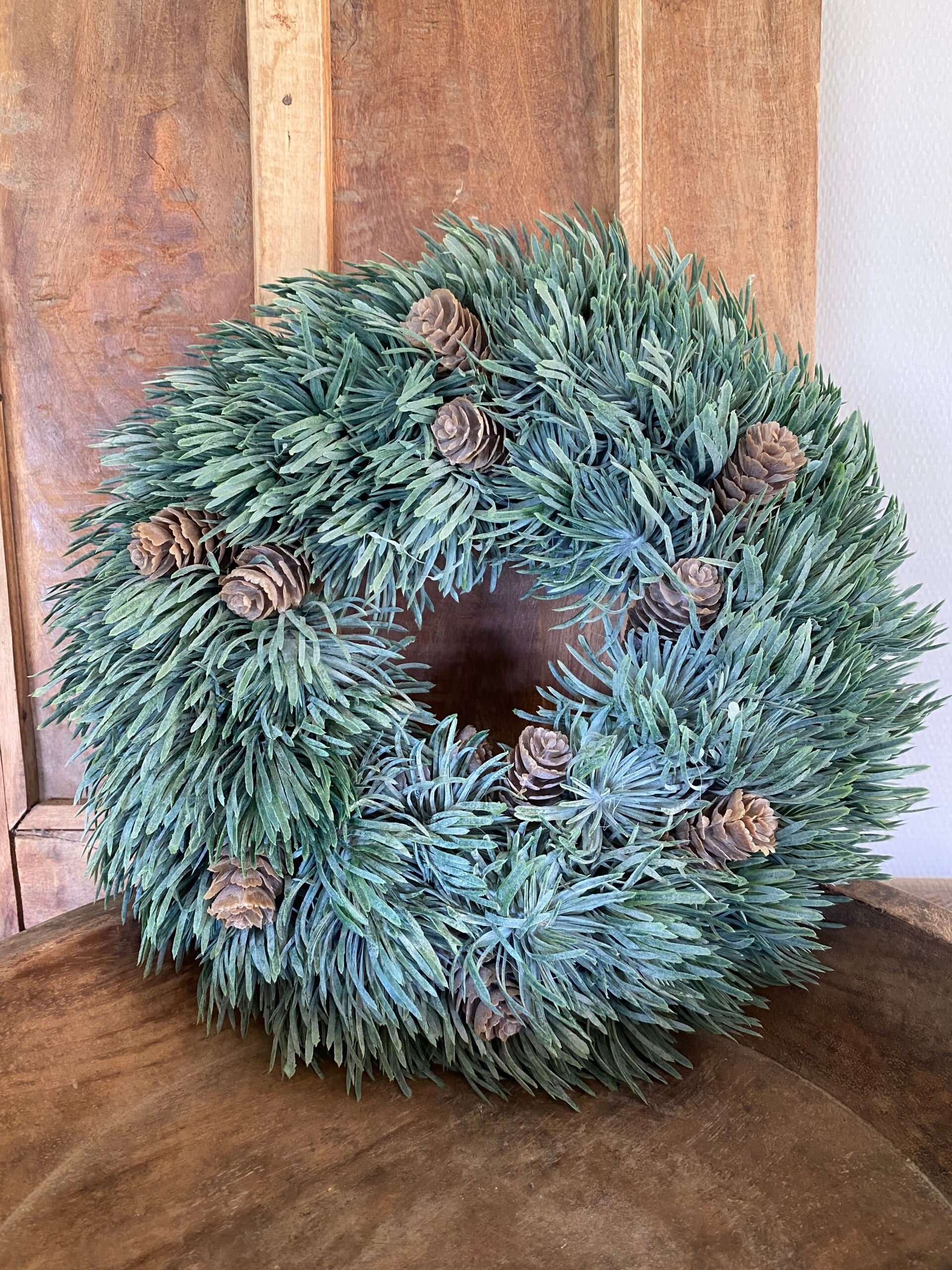 Kunst krans met denneappels maat M