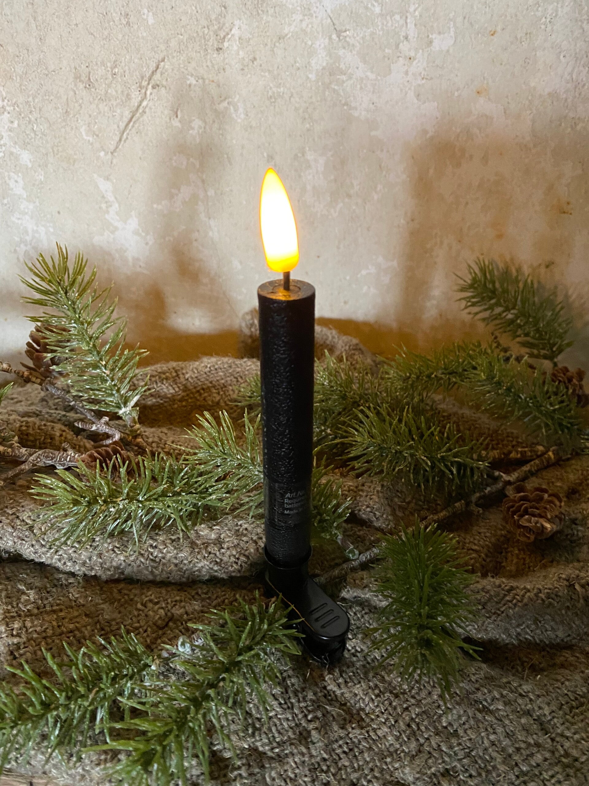 Het kaarsje kan overal opgeklemd worden, bijvoorbeeld op een tak of in de kerstboom.