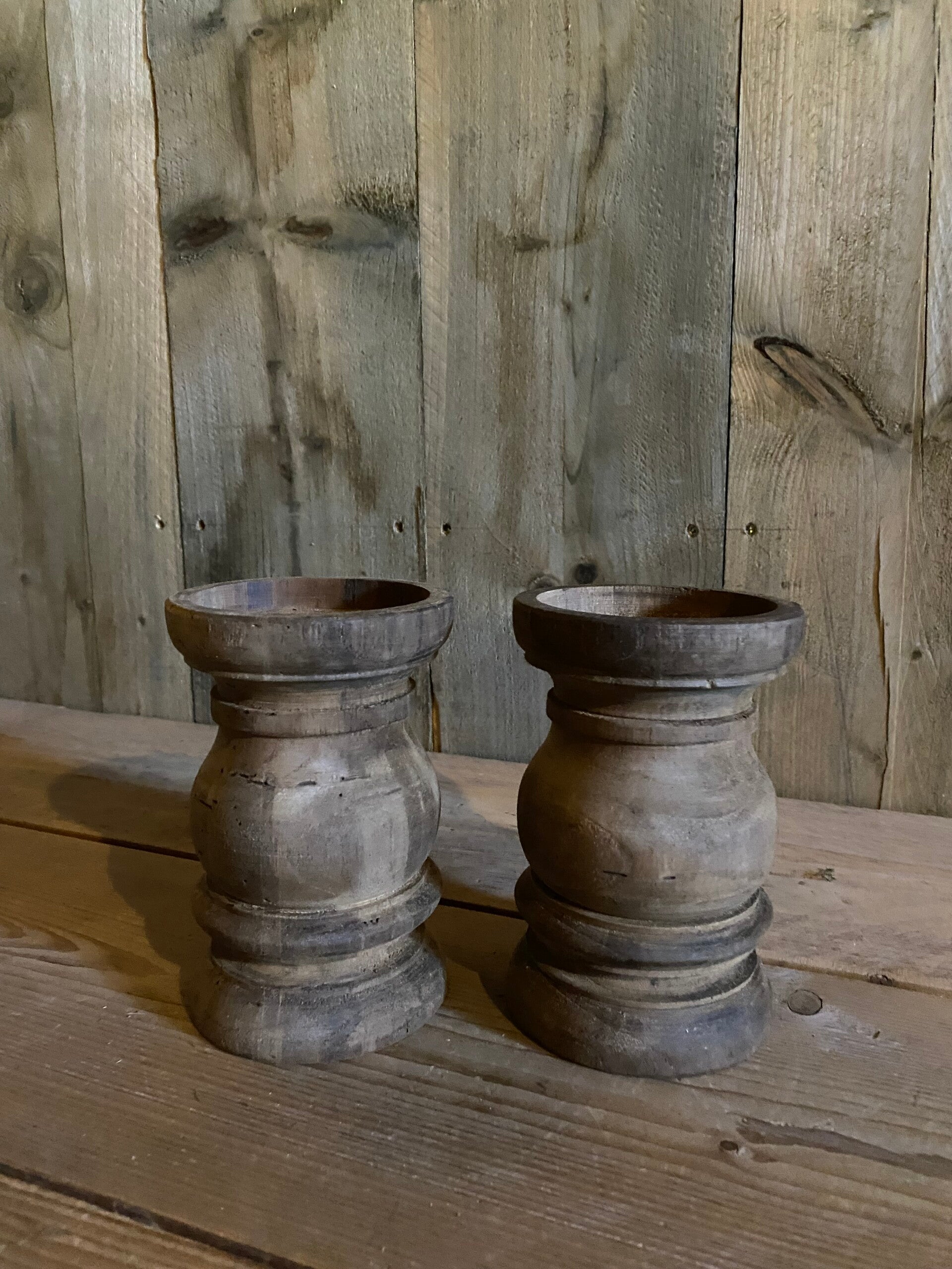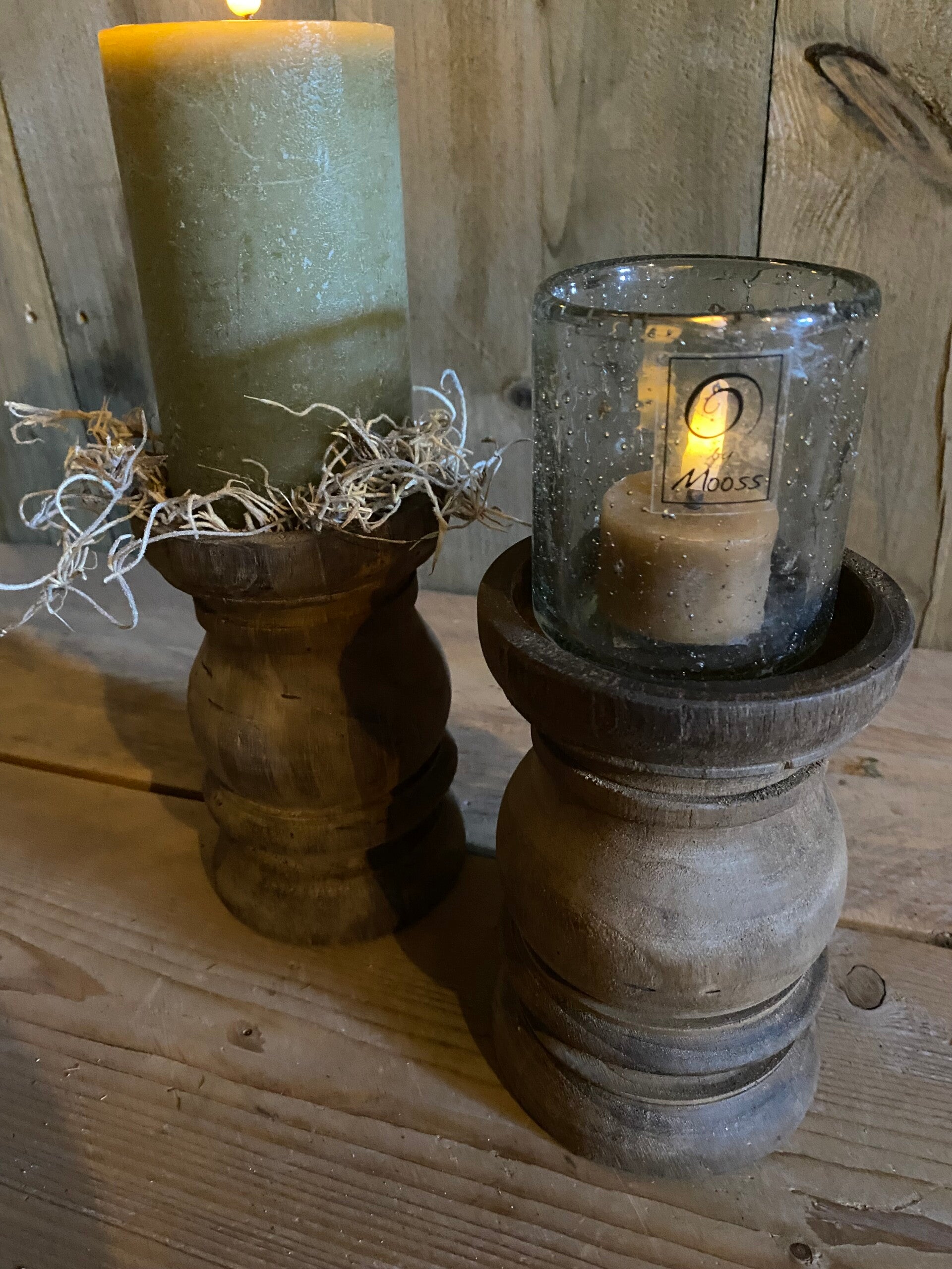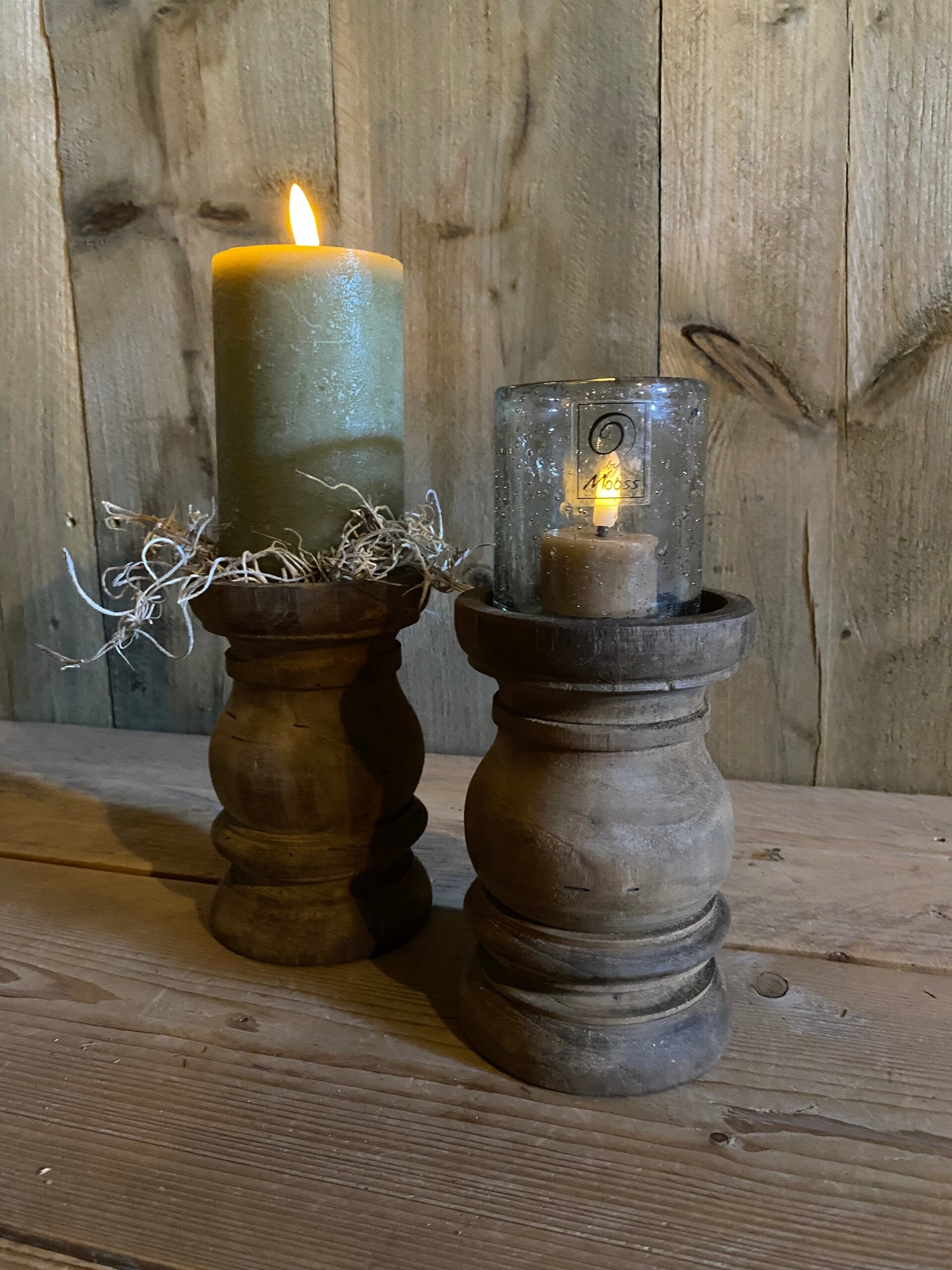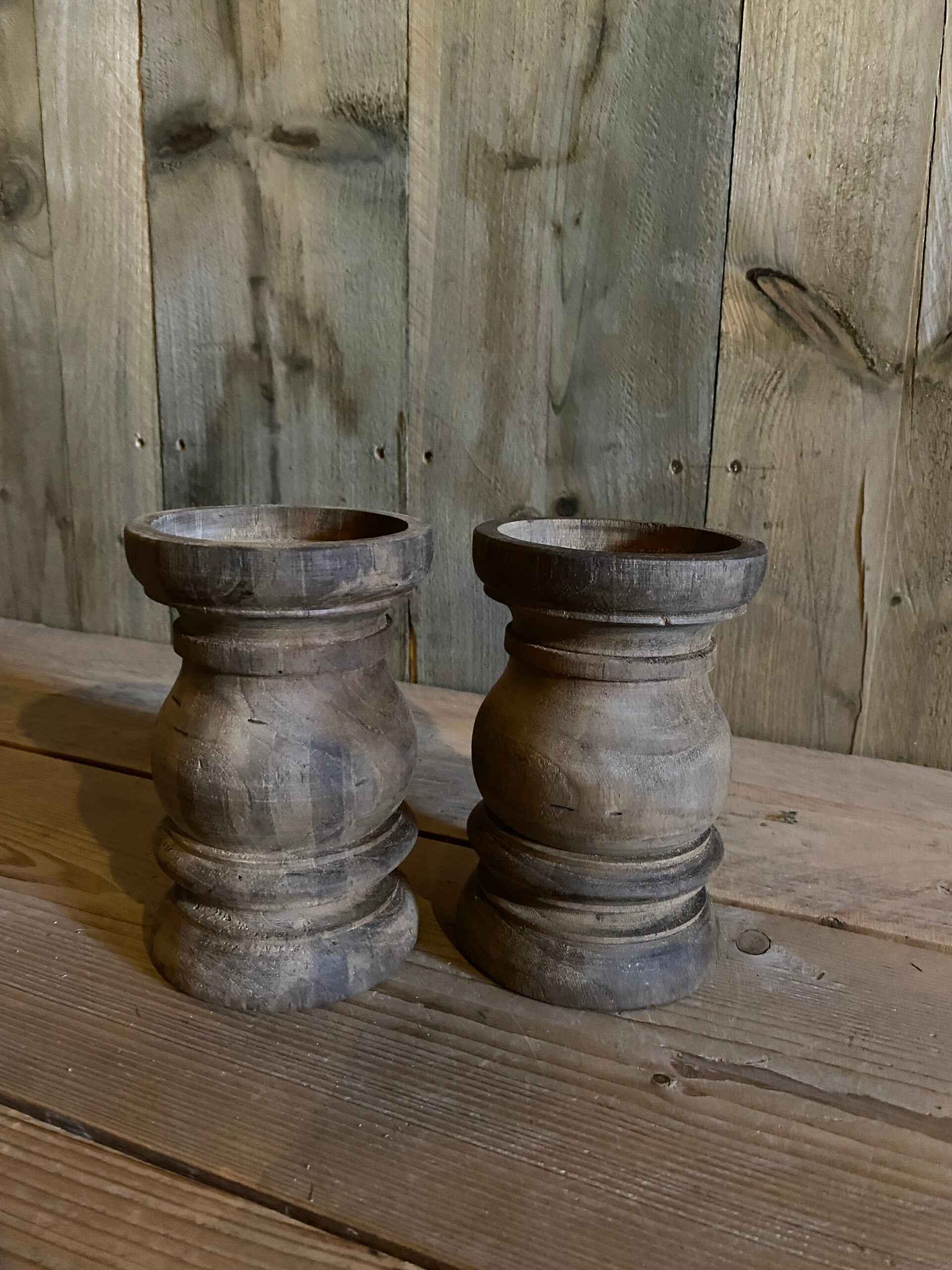 Stoere houten kandelaar