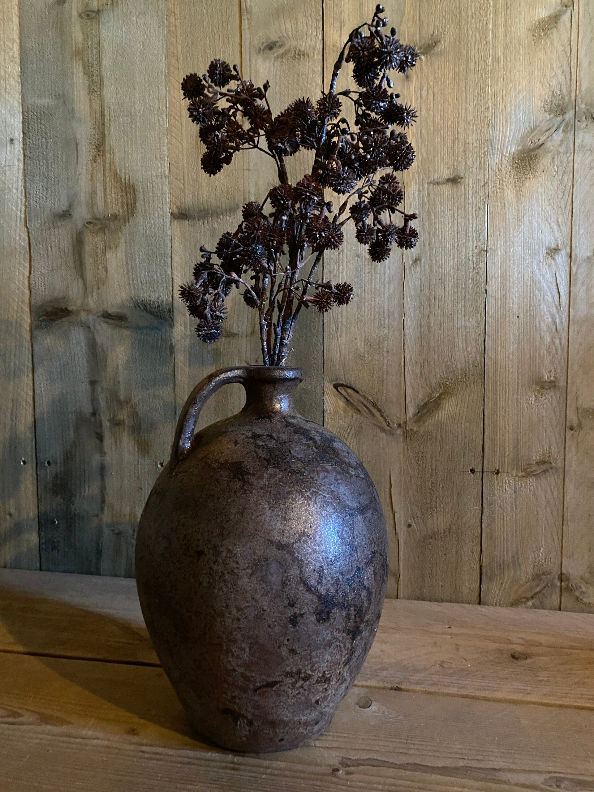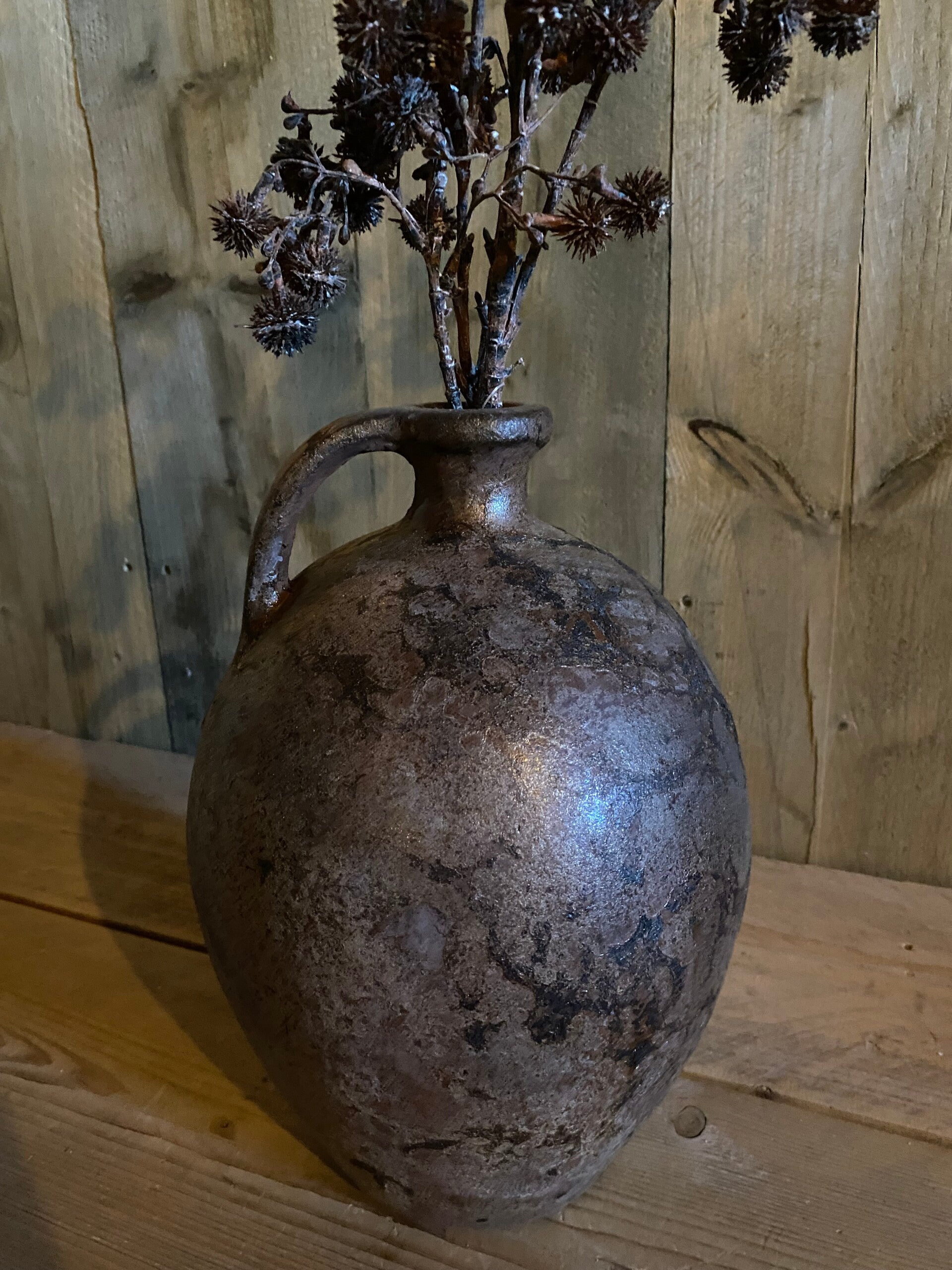 Gemêleerde bruine smalle kruik met oor