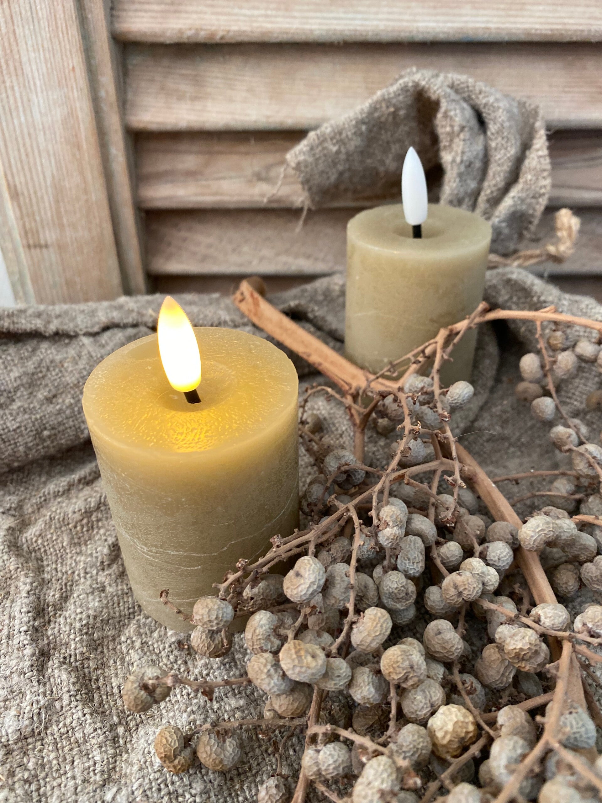 2 kleine stompkaarsen taupe