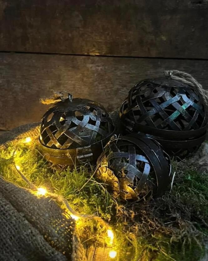 De ballen kunnen ook hangen, bijvoorbeeld in een mooie tak of boom.