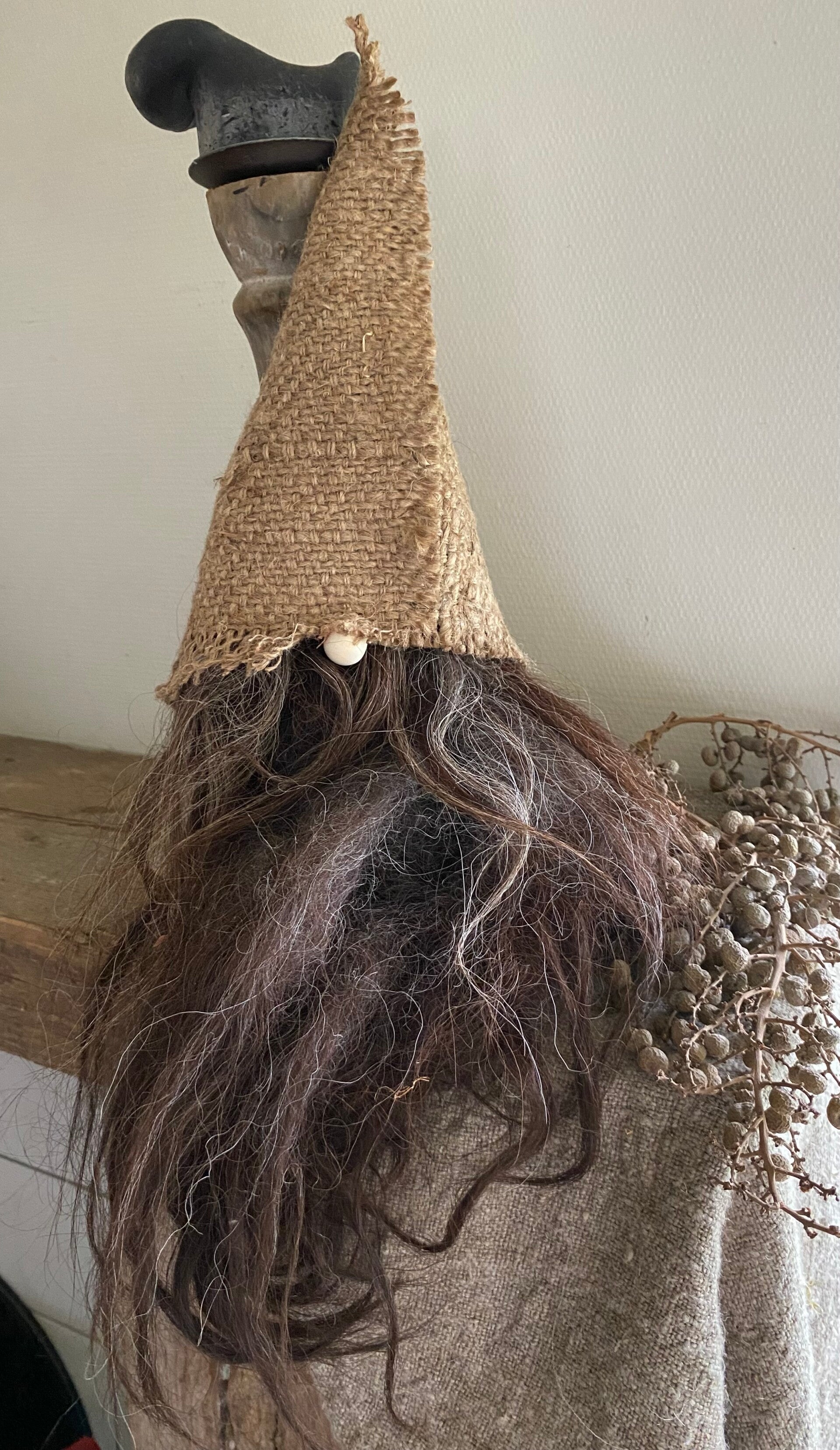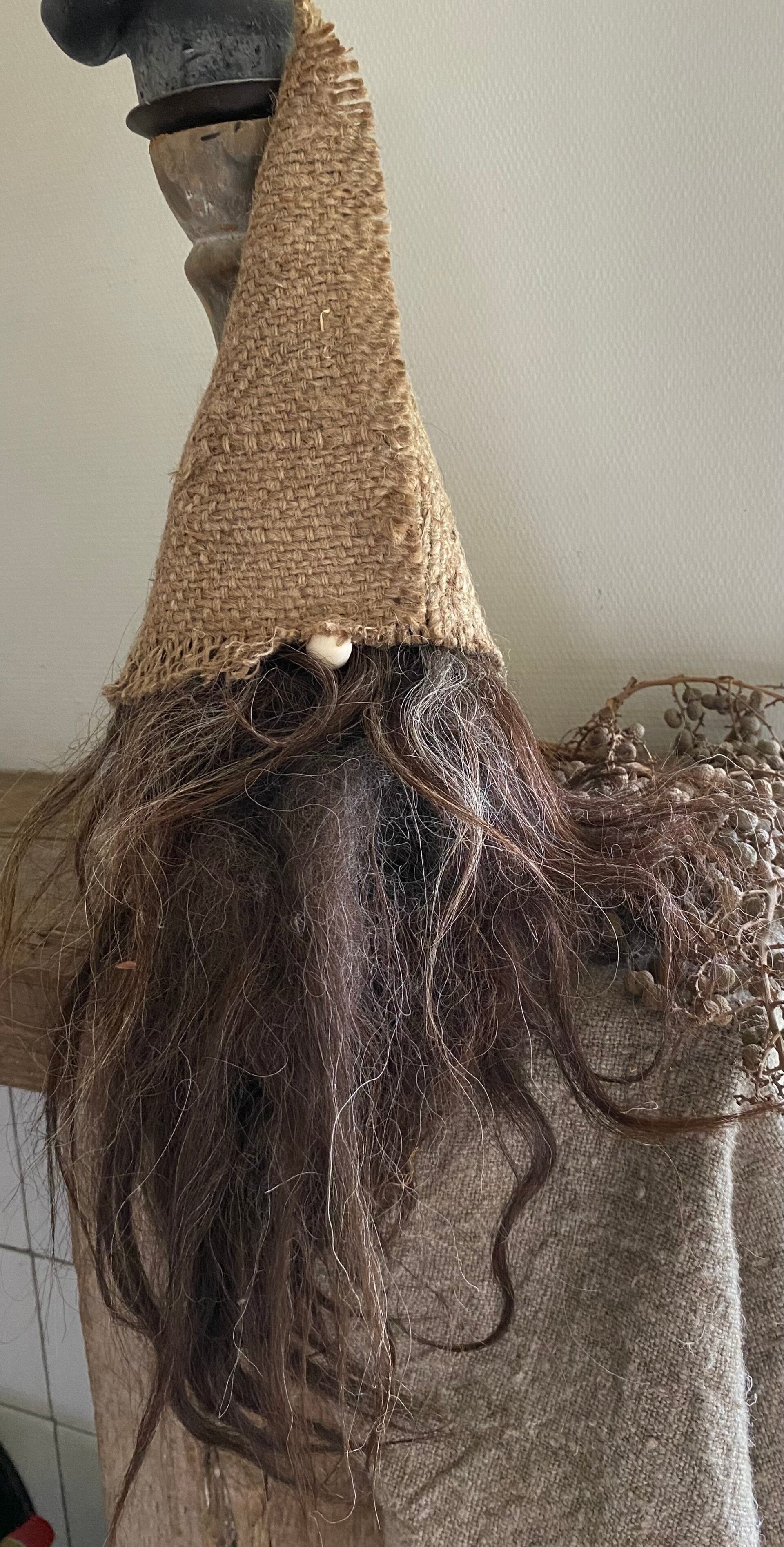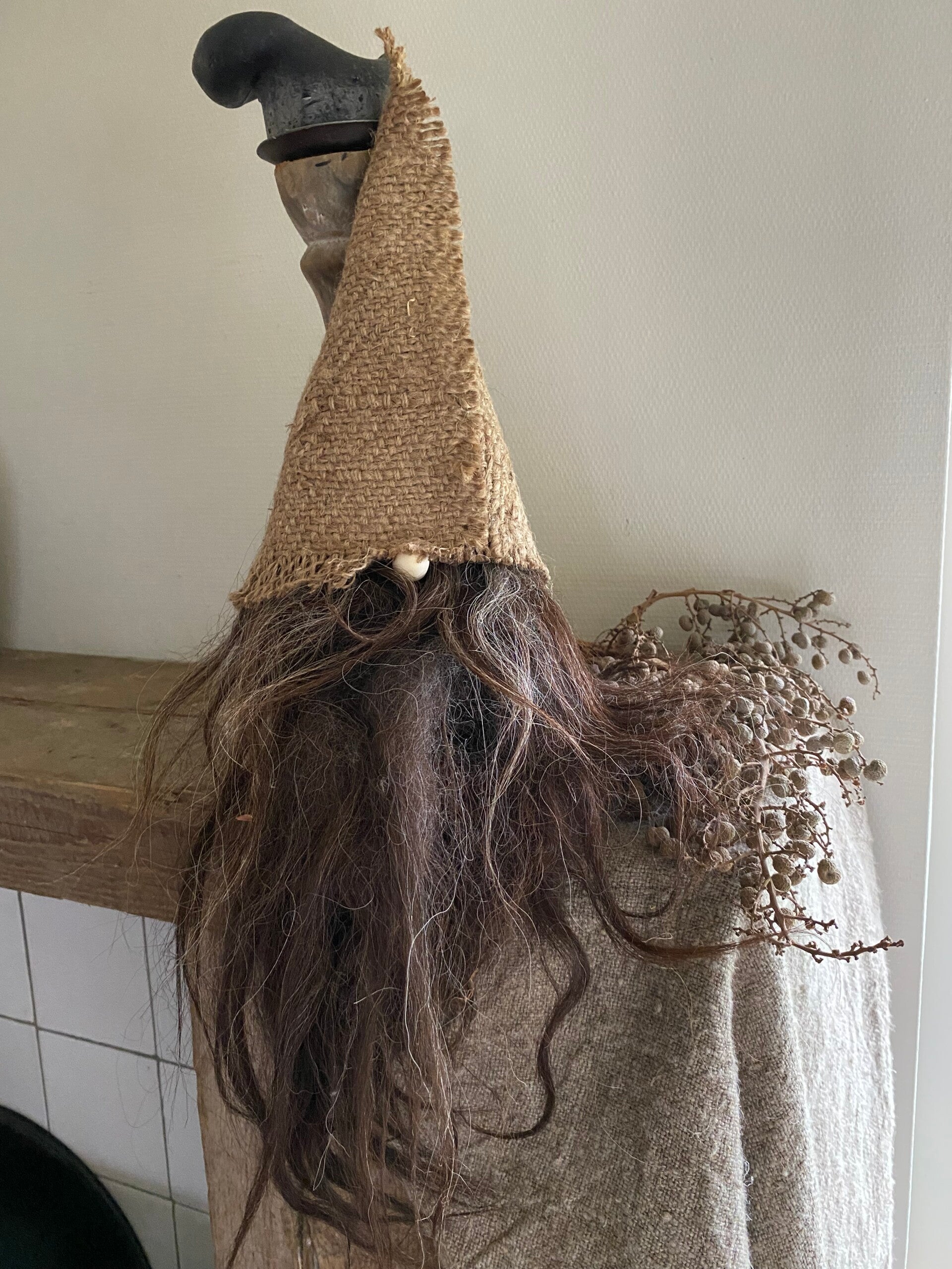 Mooie verweerde jute in combinatie met een volle schapenwollen toef.