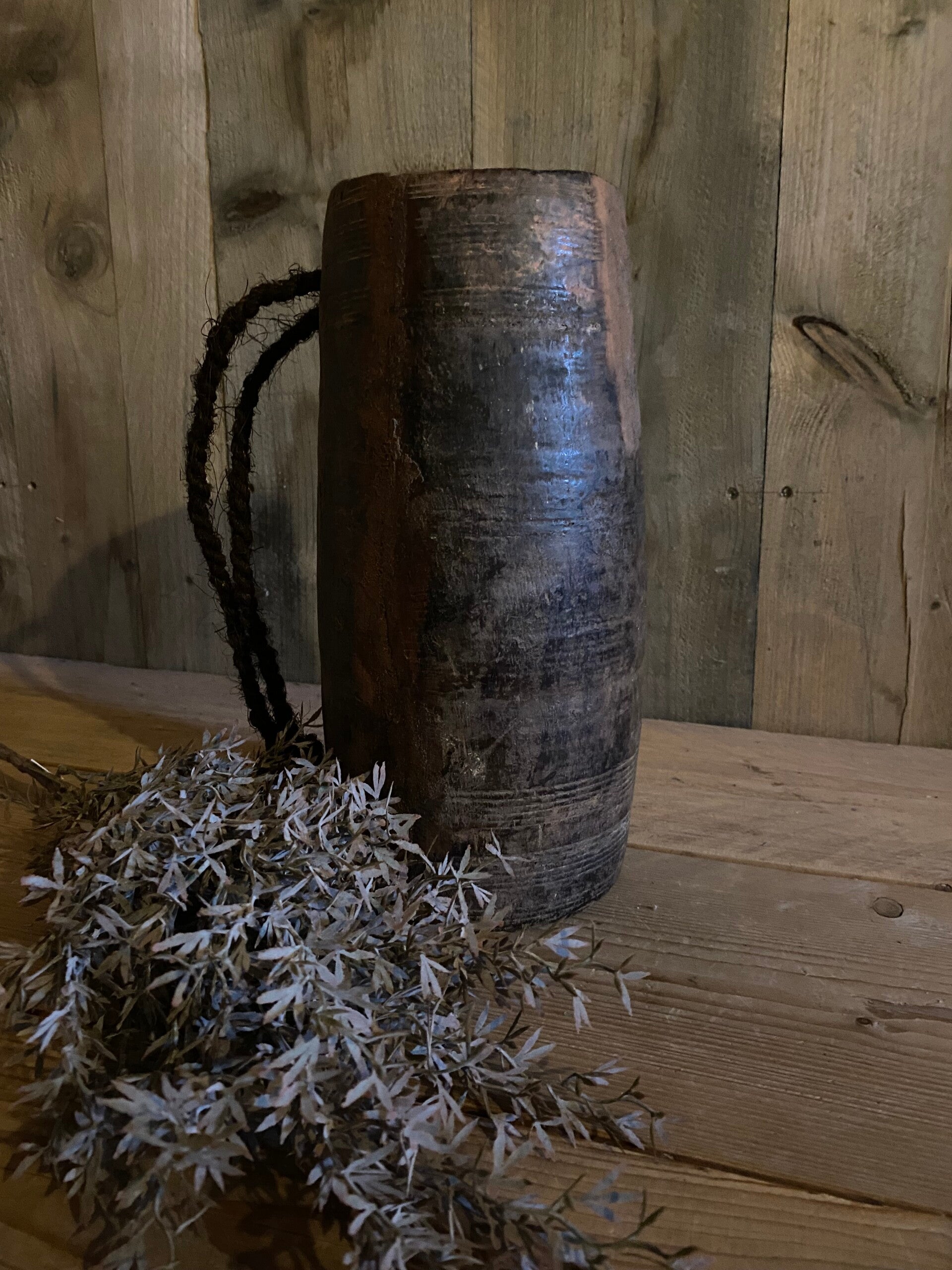 Nepalese houten pot met touw