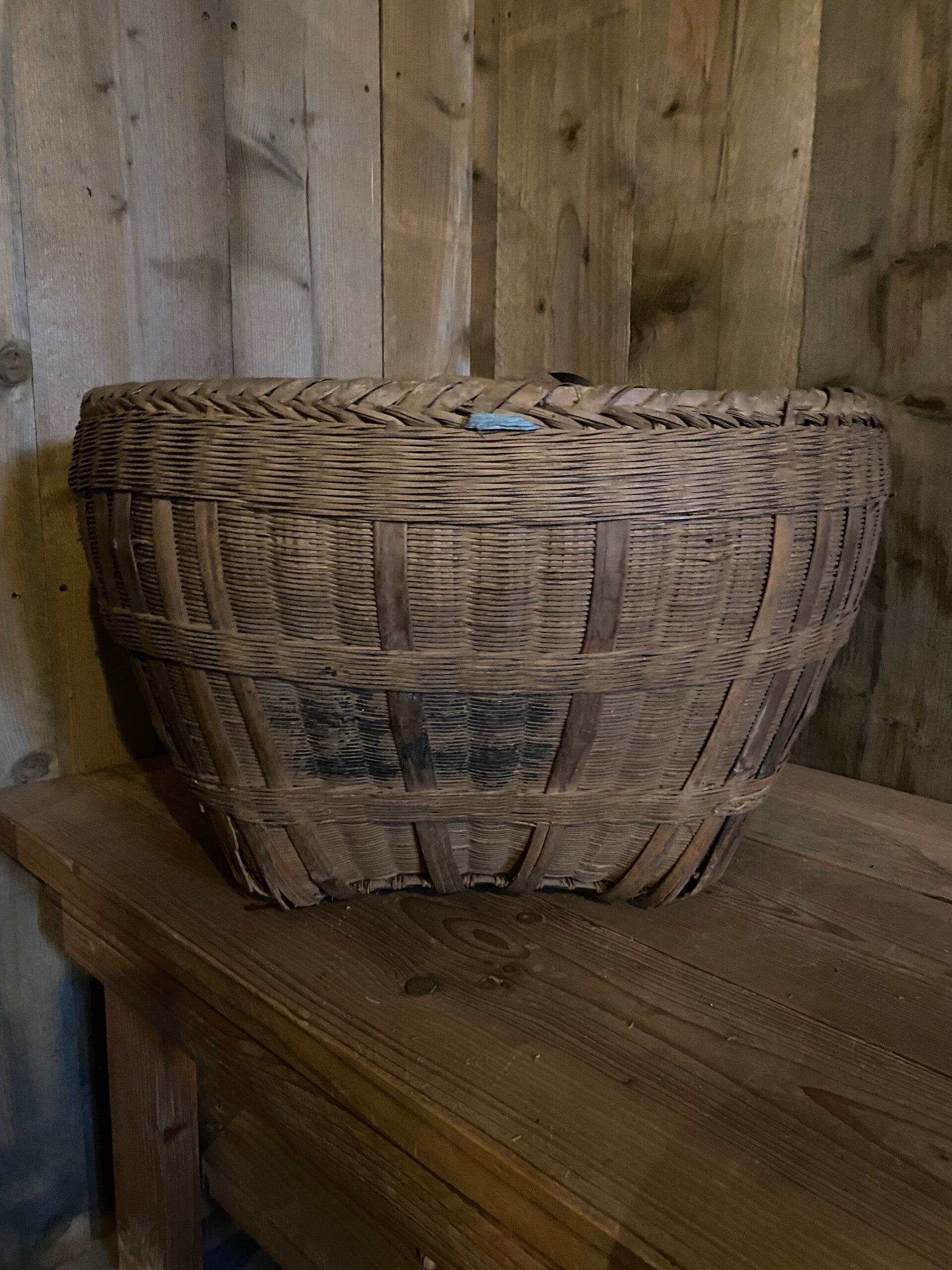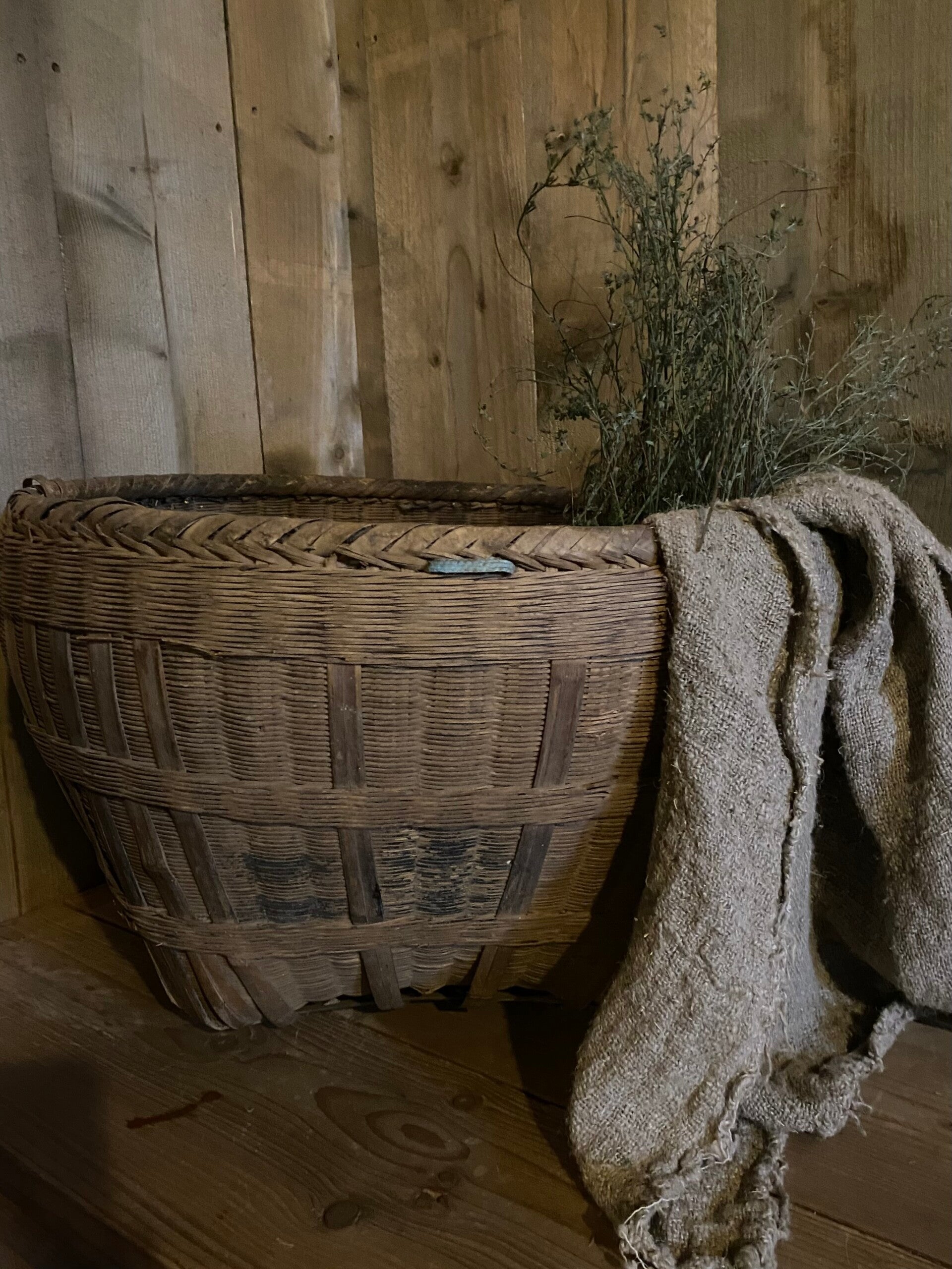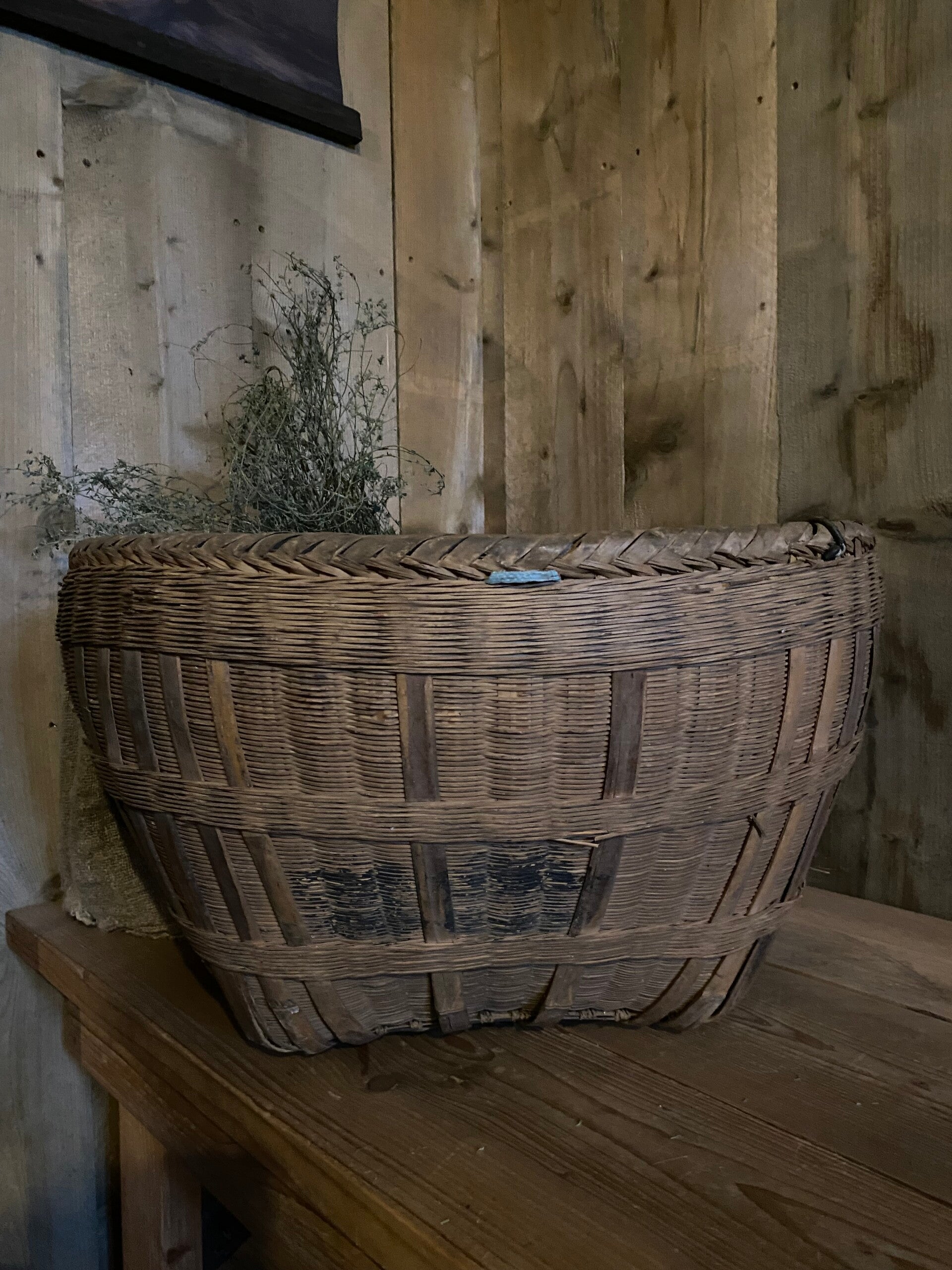 Deze doorleefde mand is zeer decoratief of als opslagmand voor bijvoorbeeld, tijdschriften, haardhout, kussens of plaid