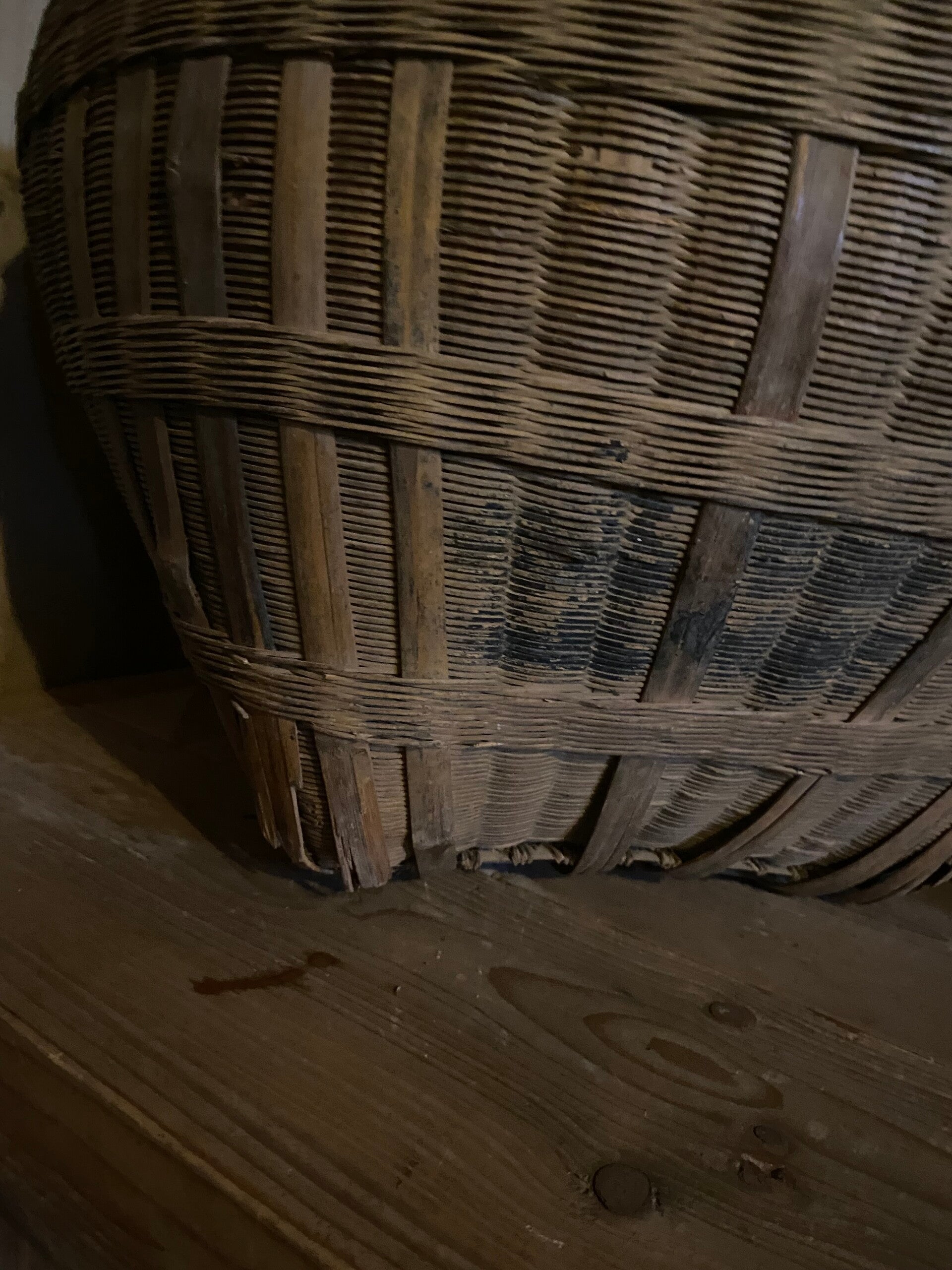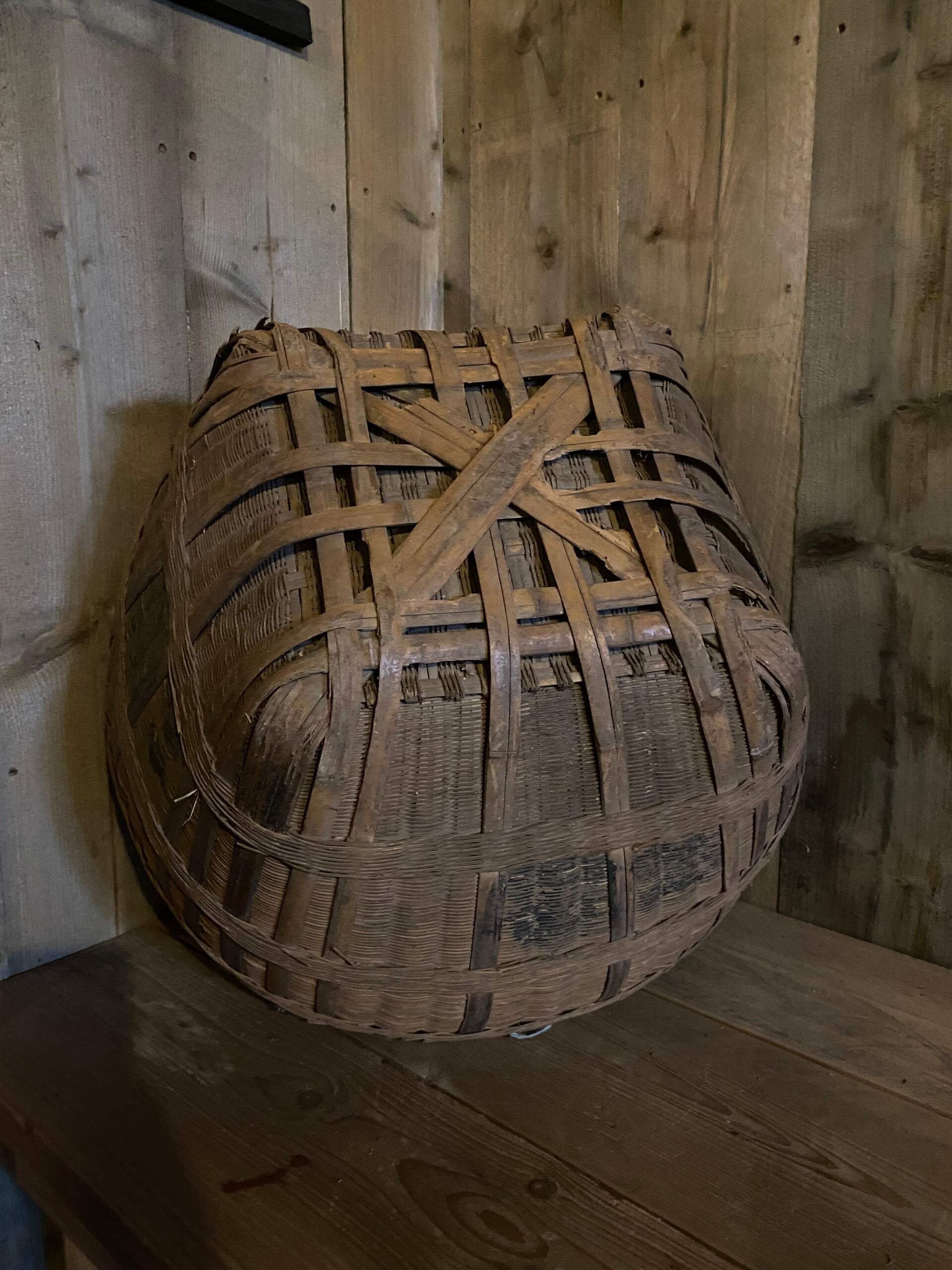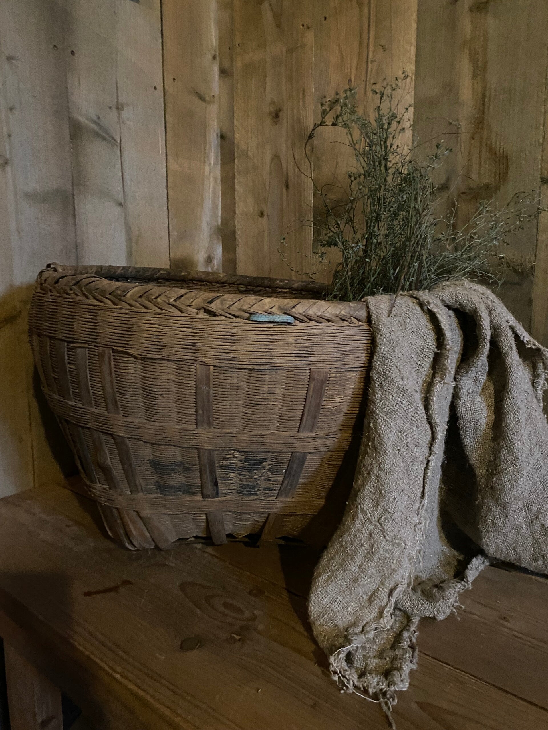 Deze doorleefde mand is zeer decoratief of als opslagmand voor bijvoorbeeld, tijdschriften, haardhout, kussens of plaid