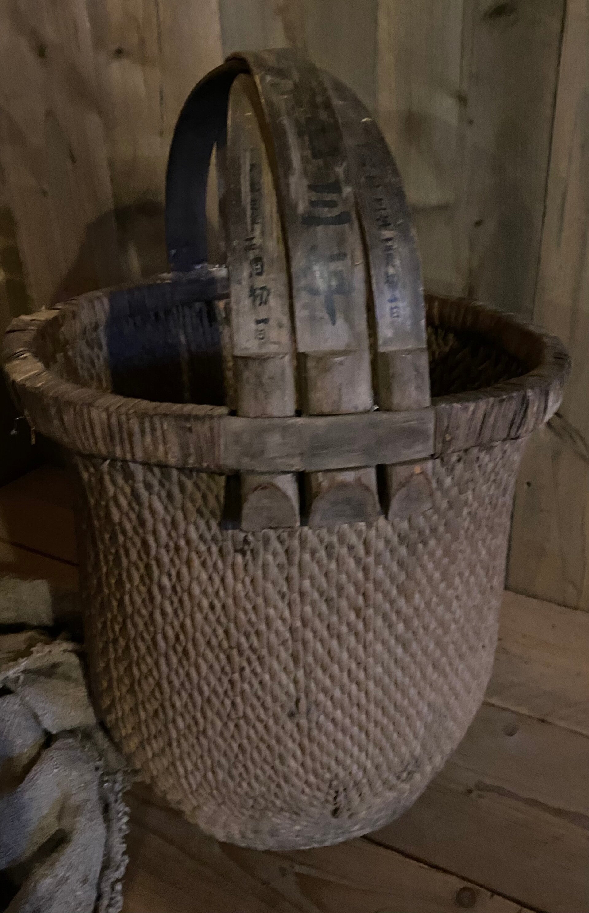 Deze Chinese plukmand heeft een mooie chinese bedrukking op het handvat en het riet is prachtige verkleurd.