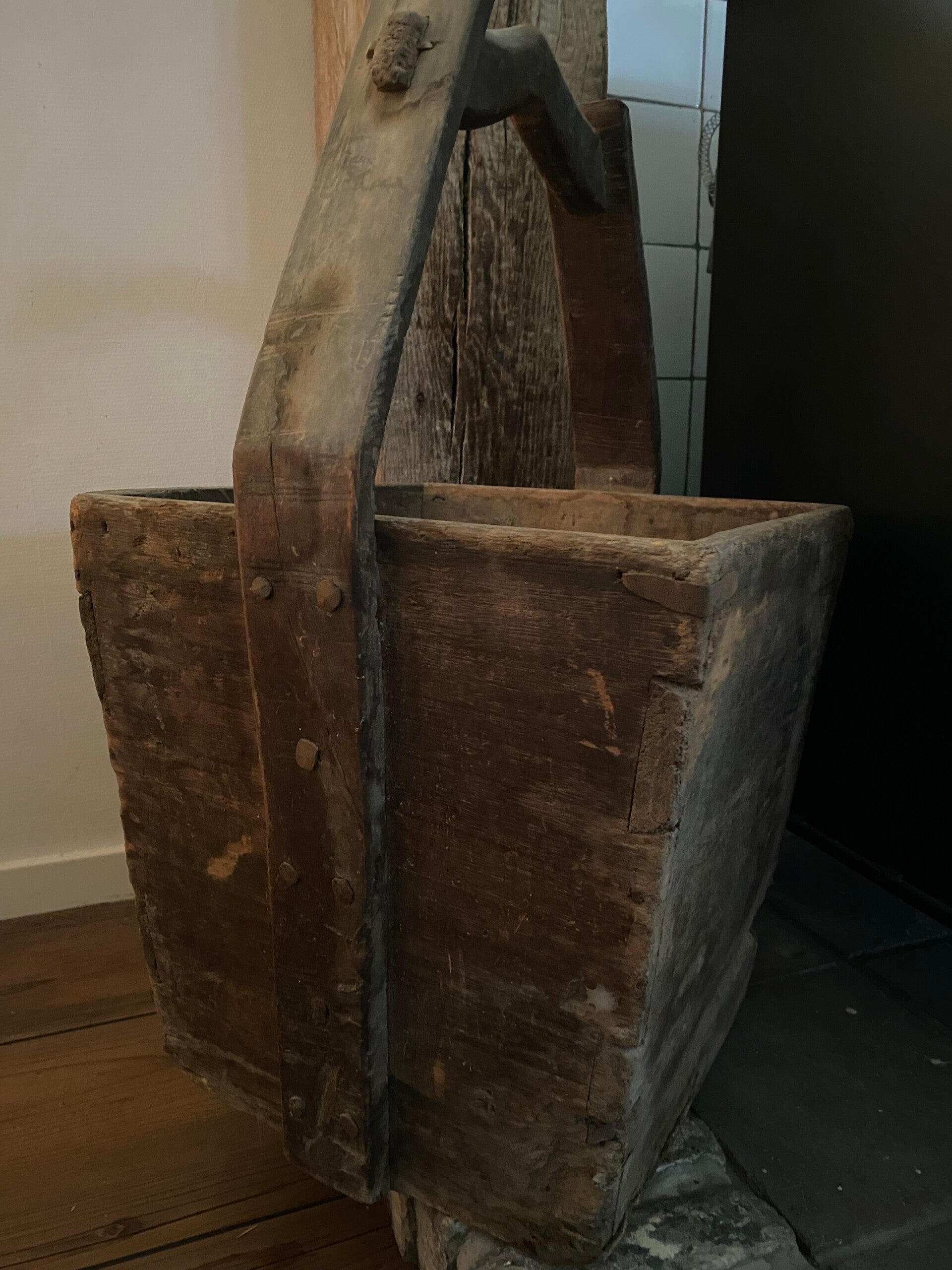 Oude houten vierkante plukemmer