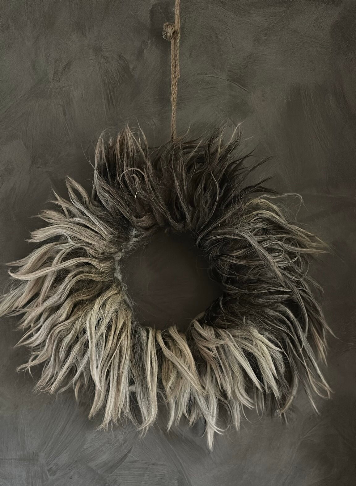 Prachtige schapenwollen krans past zowel in een stoer, sober en zeker landelijk interieur
