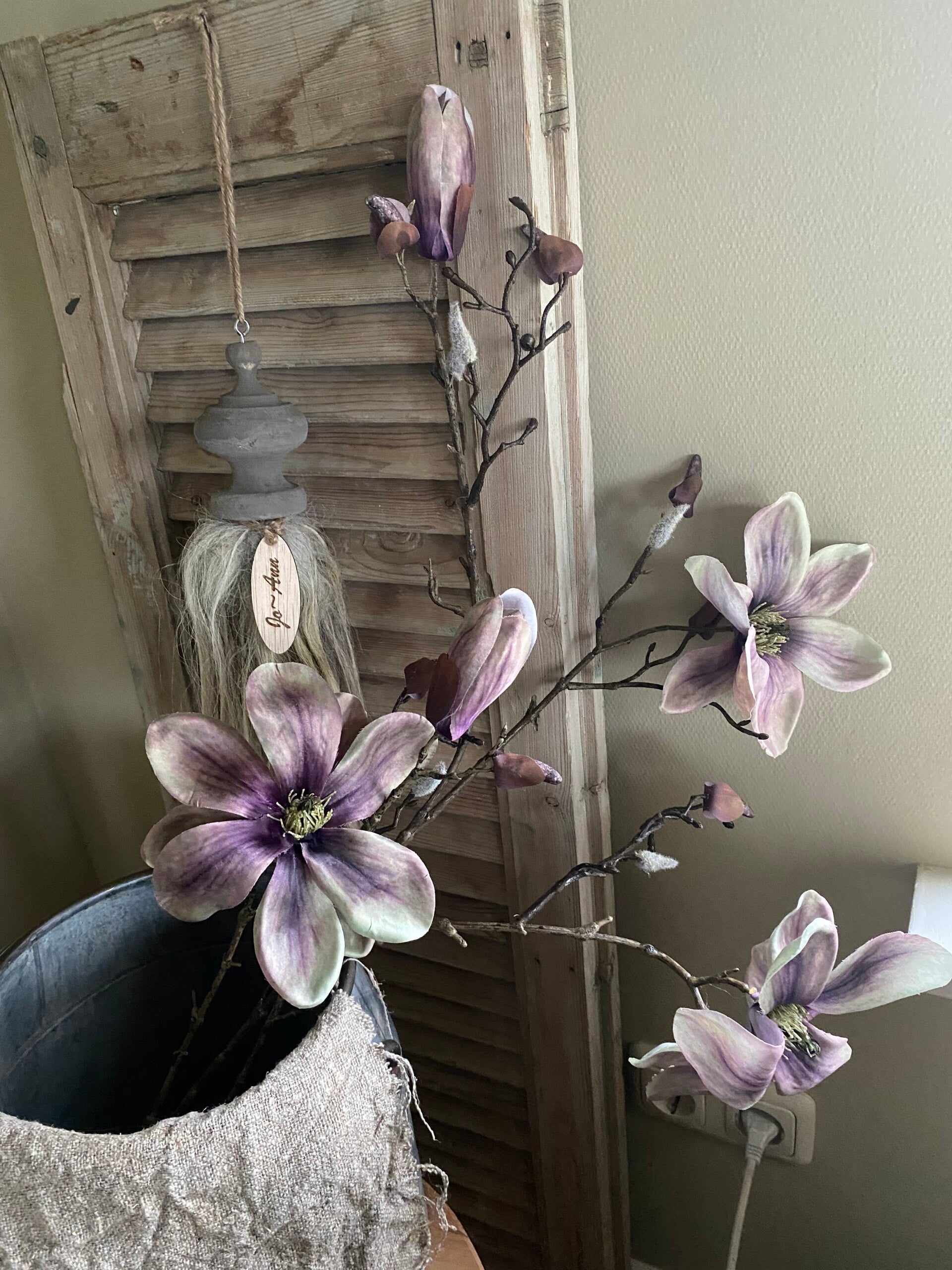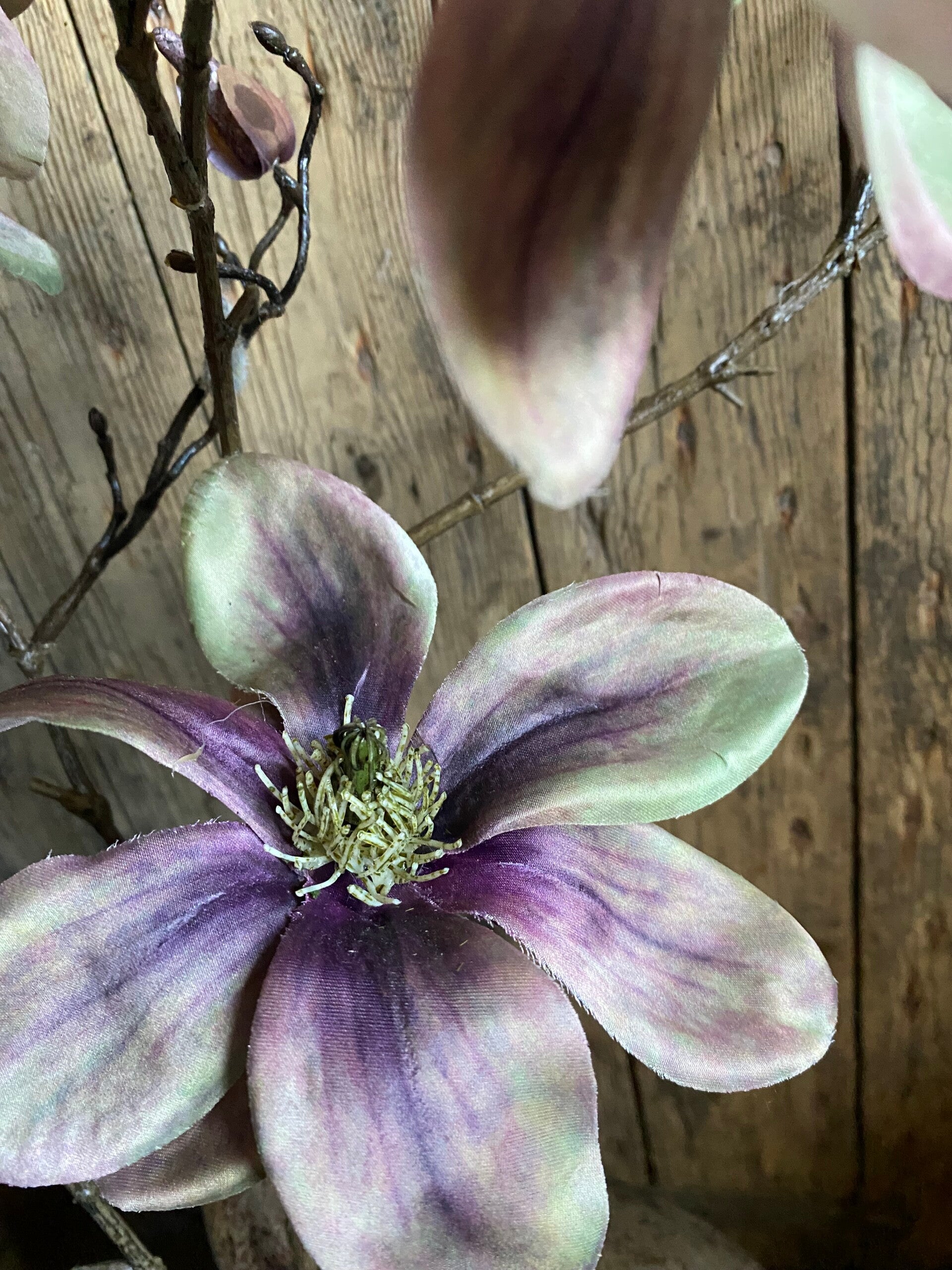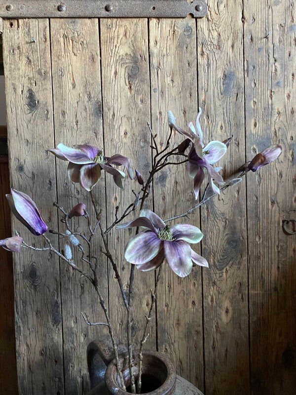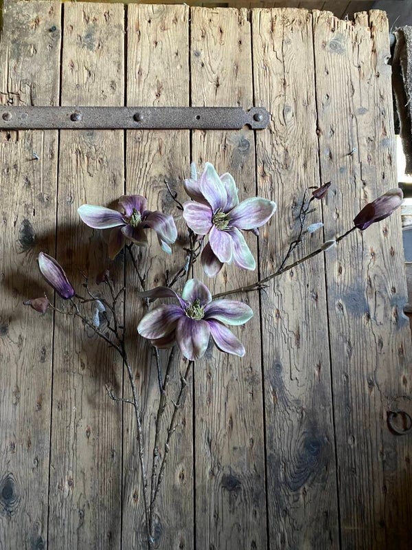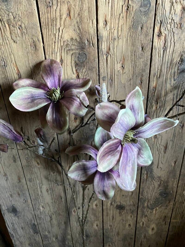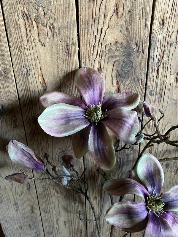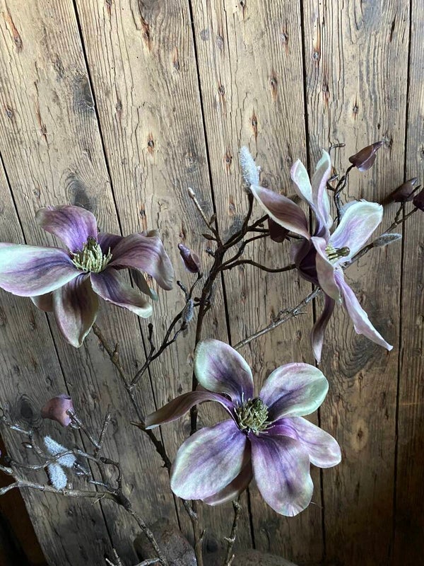 Prachtige kunst Magnolia Indy, met 3 bloemen (2 XL/ 1 L), 2 bloemknoppen & 16 dichte knoppen