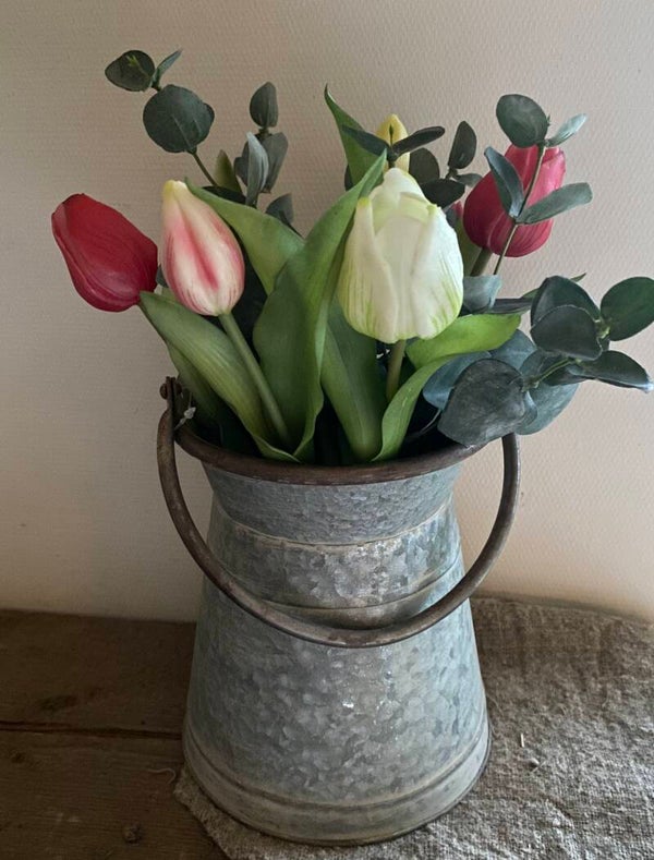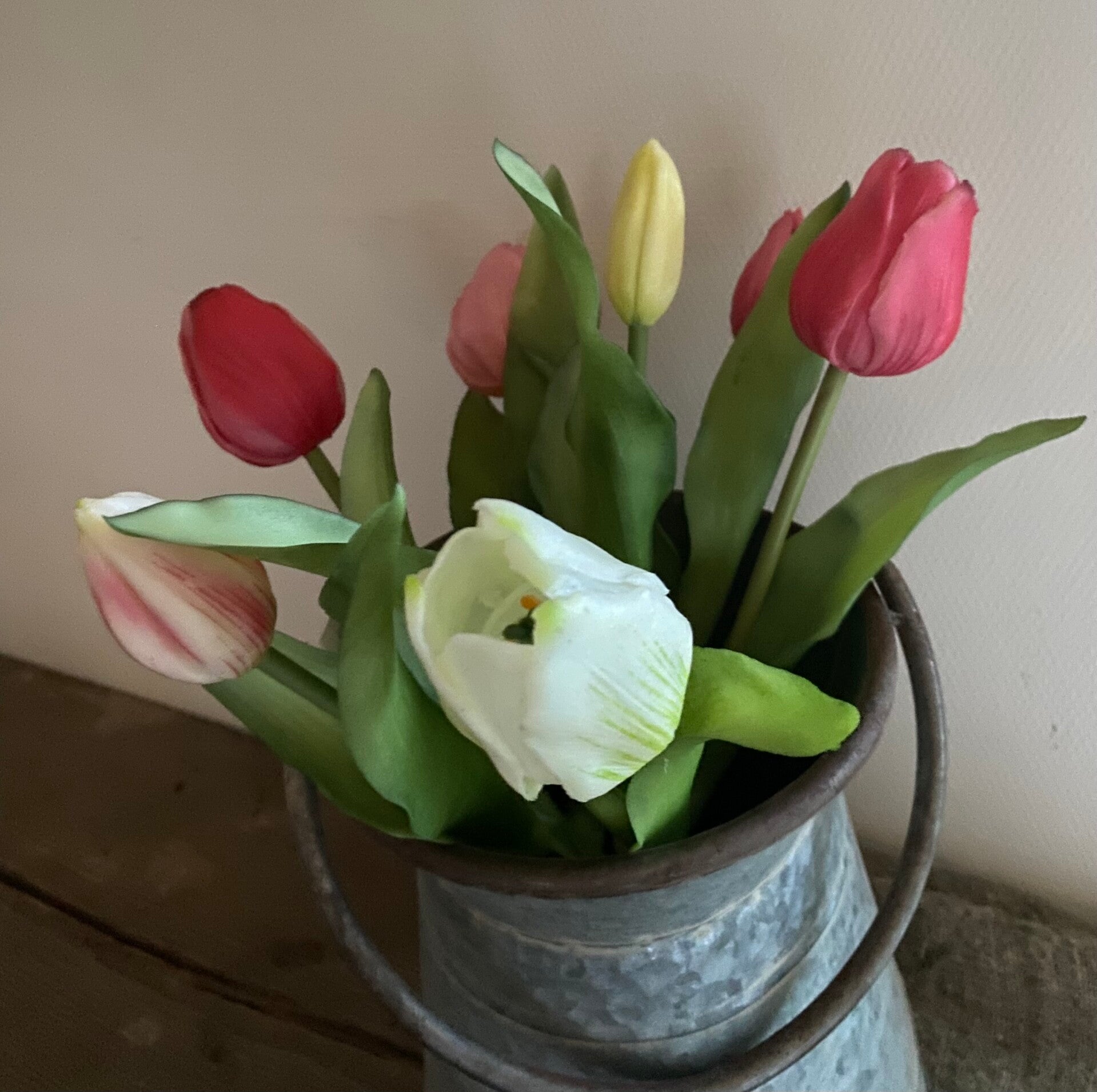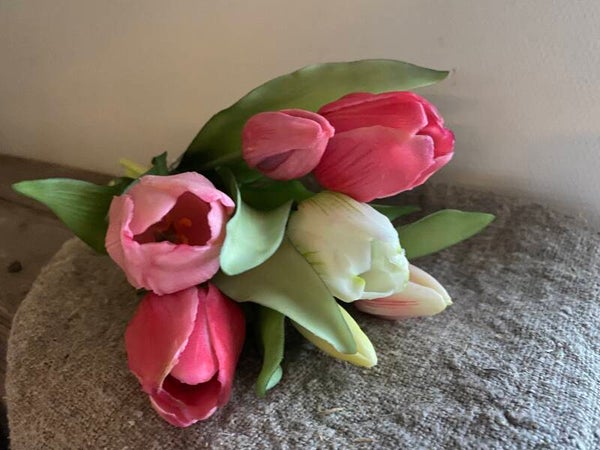Gemengd bosje tulpen, donker roze, licht roze en wir.