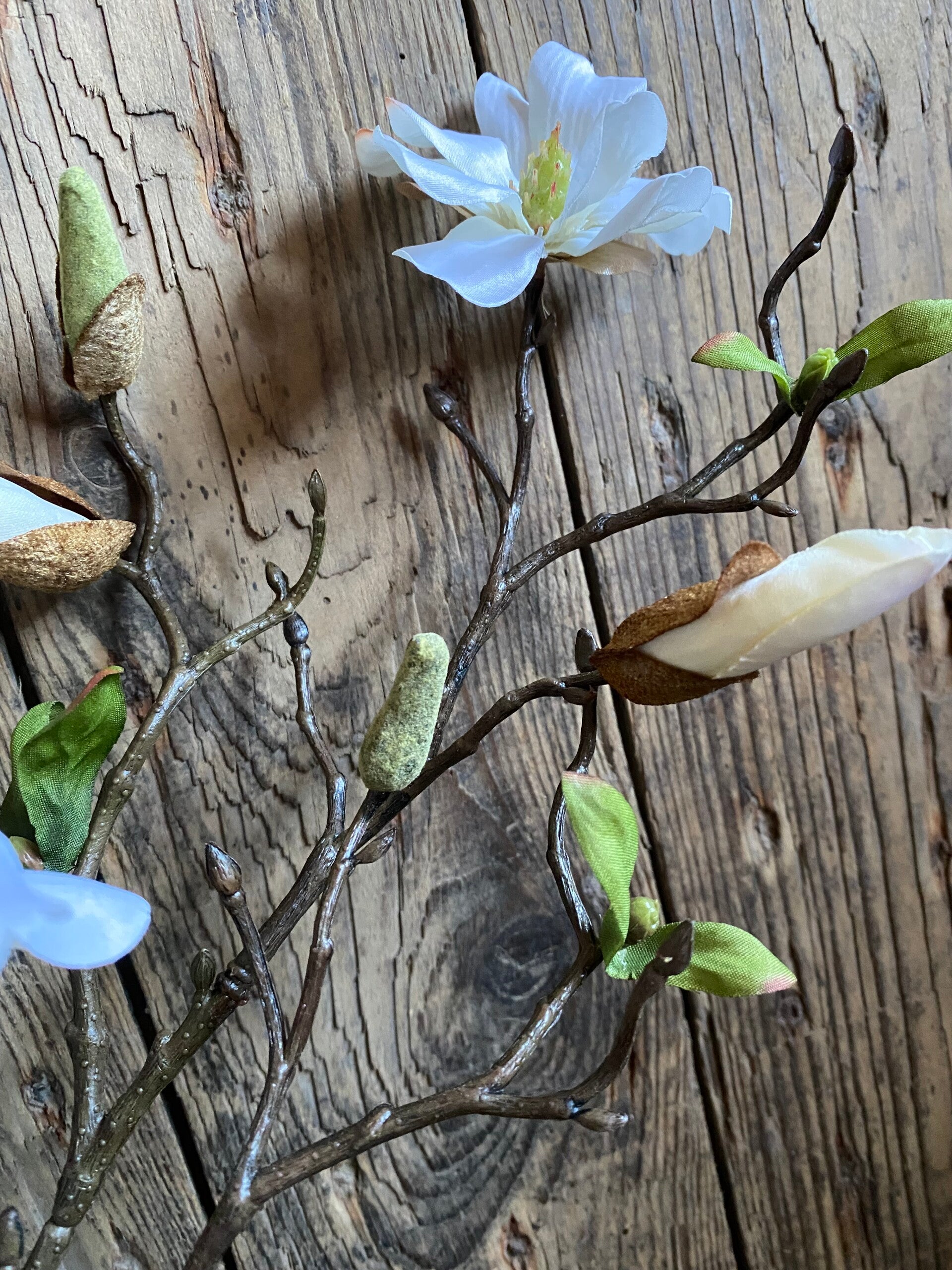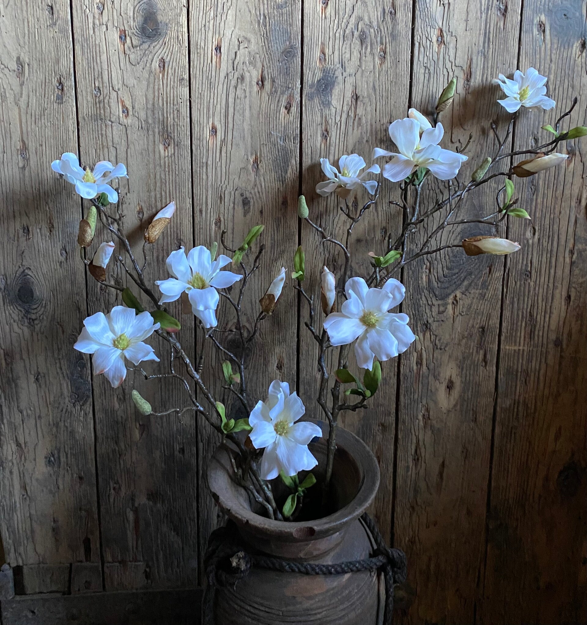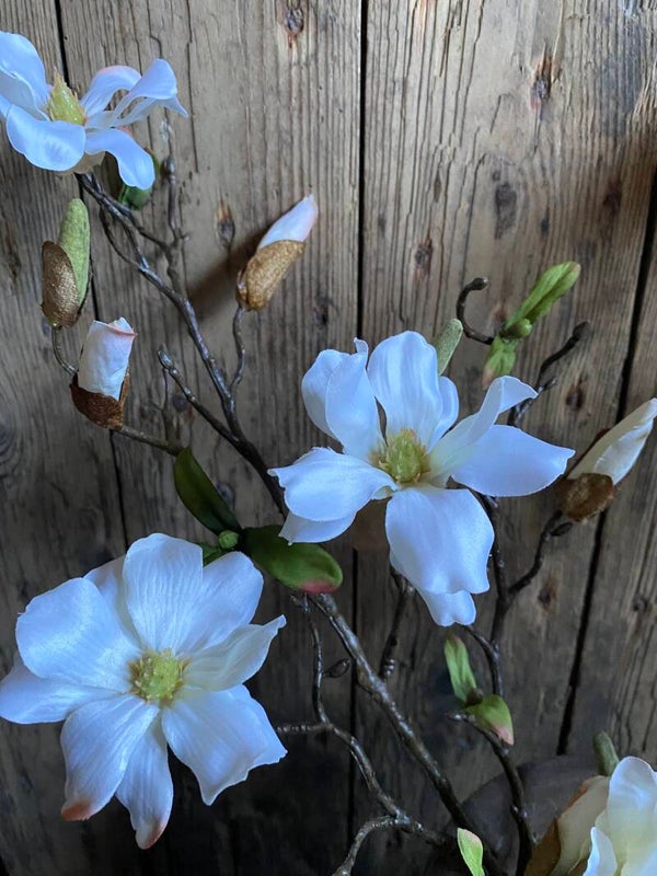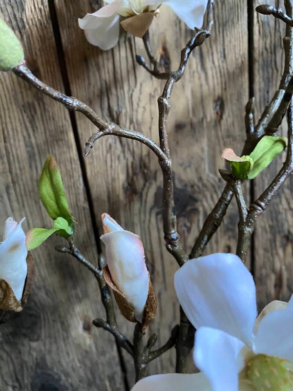 Magnoliatak fijn, met 4 bloemen (Ø 7 - 8cm) en knoppen.