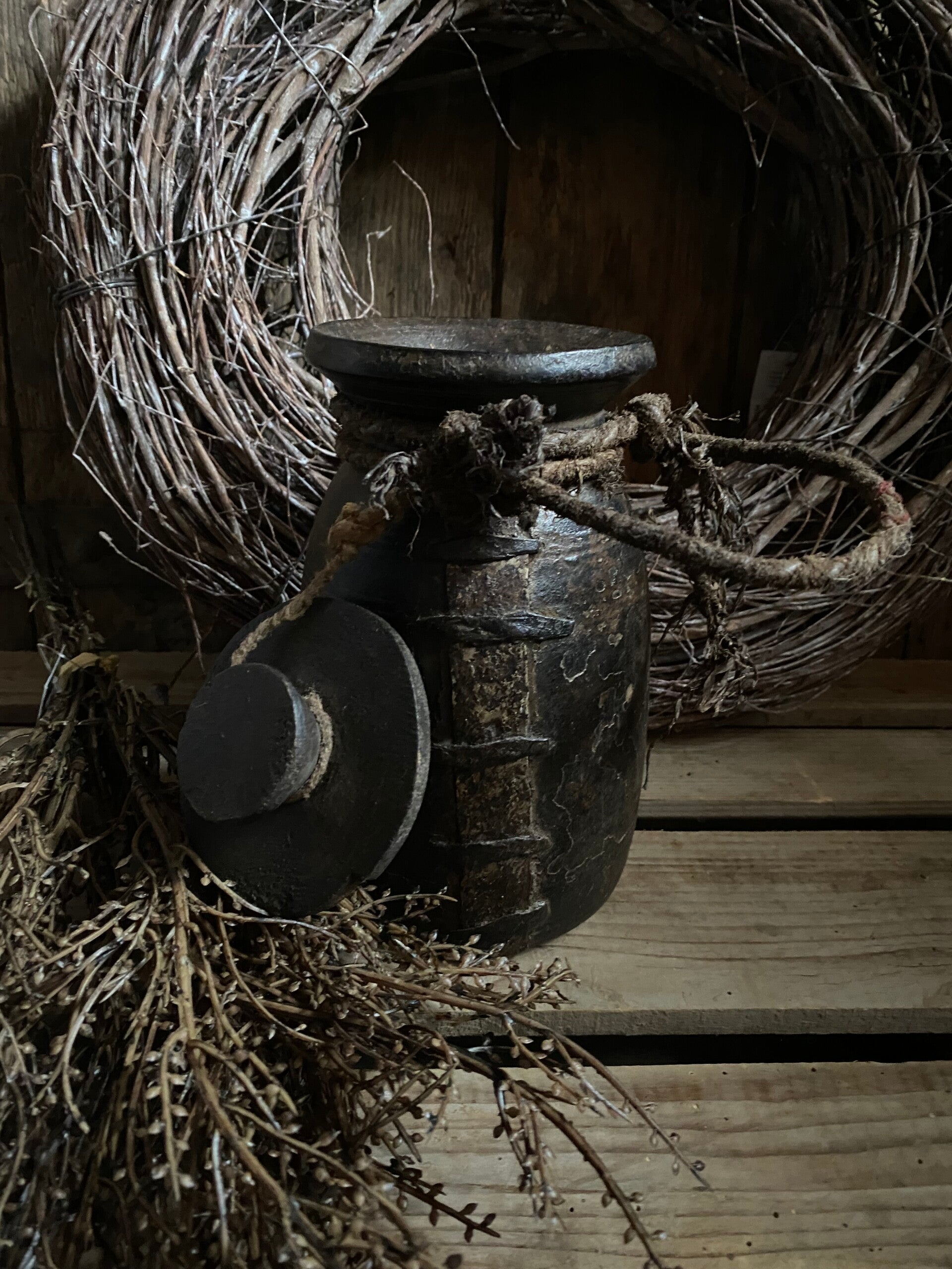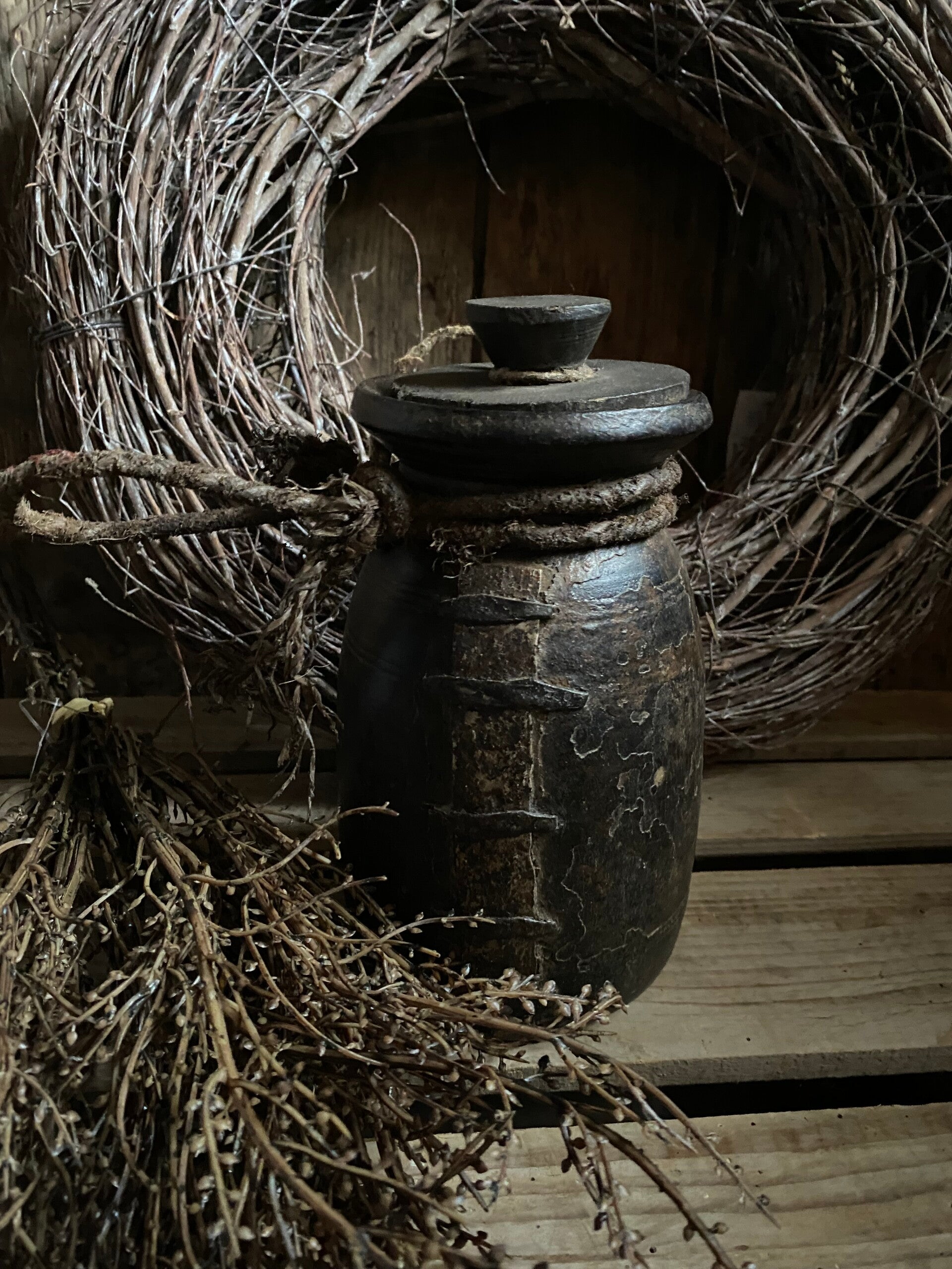 Authentieke donkere klein nepalese pot met deksel nr 1