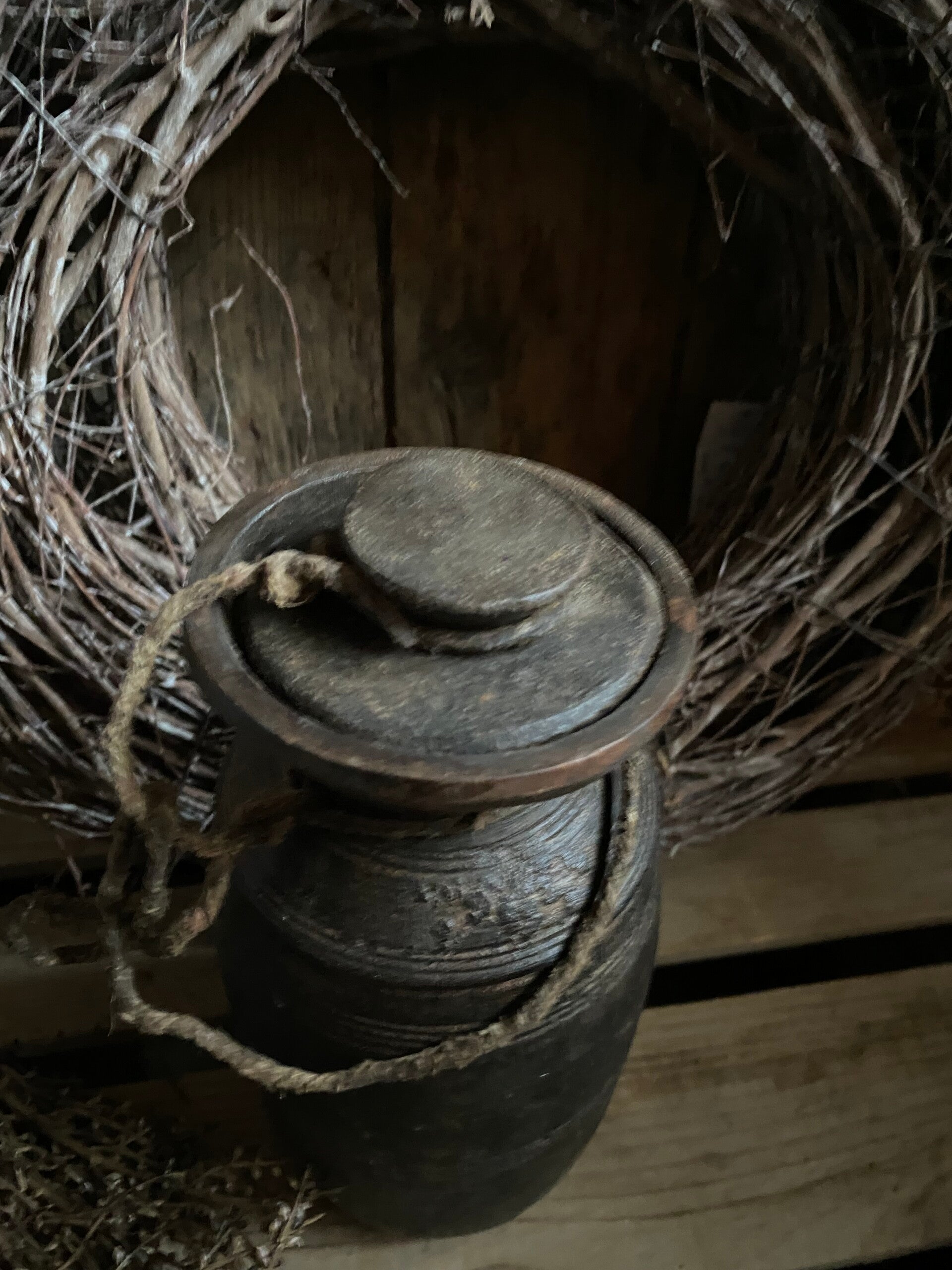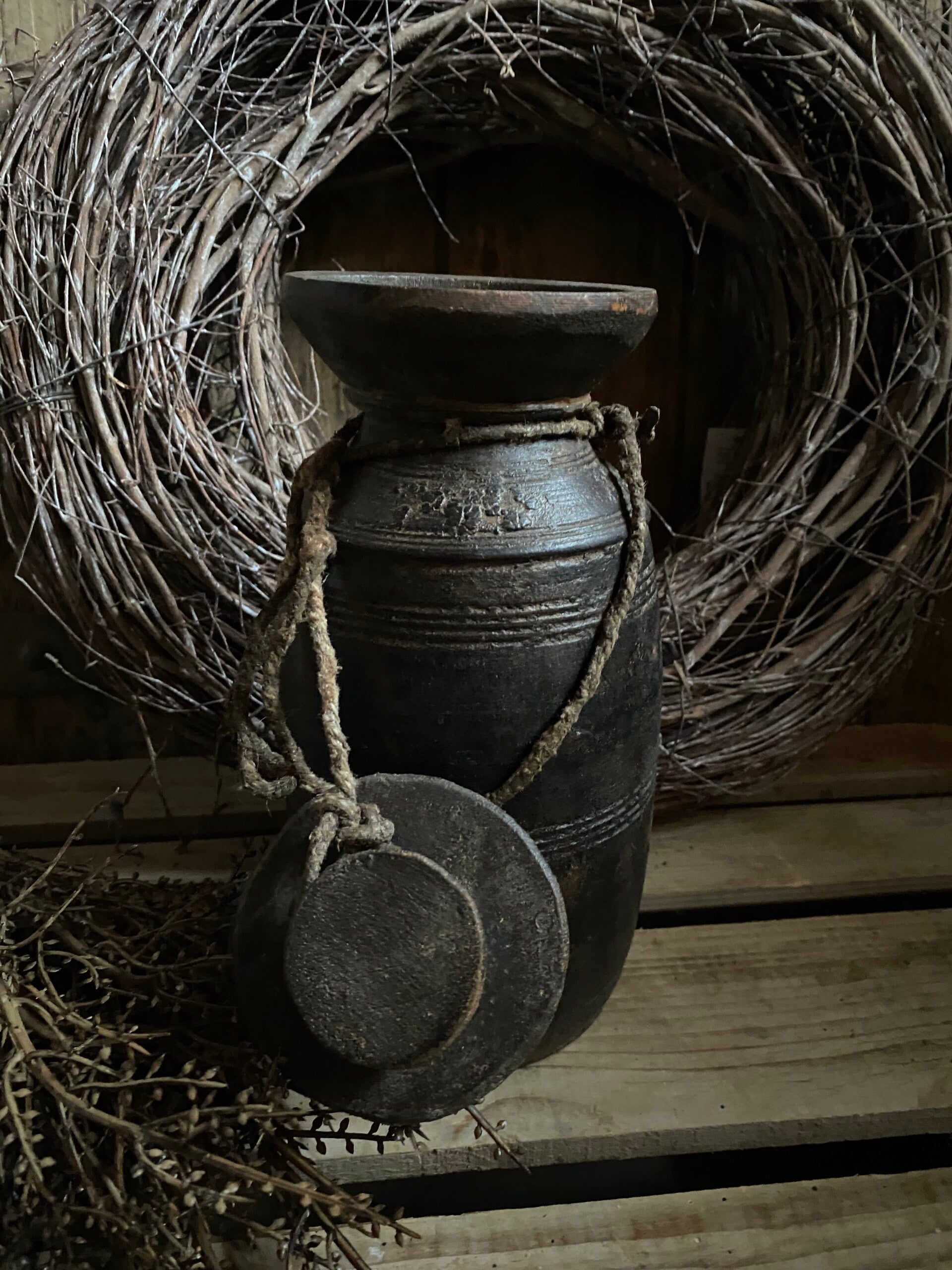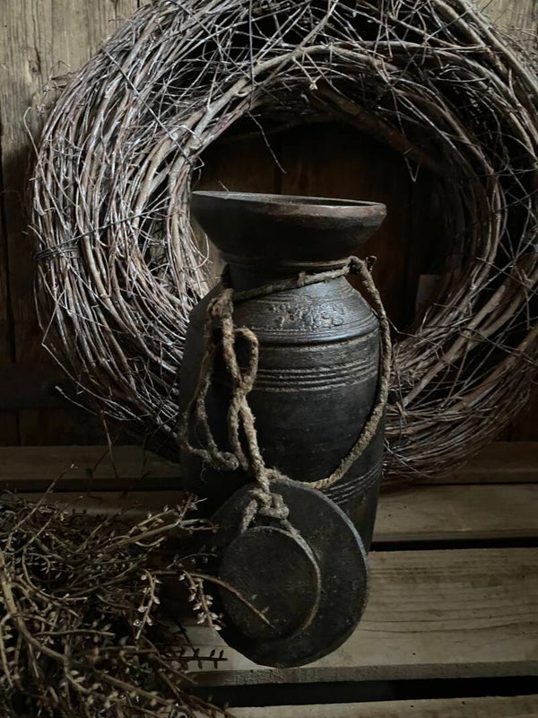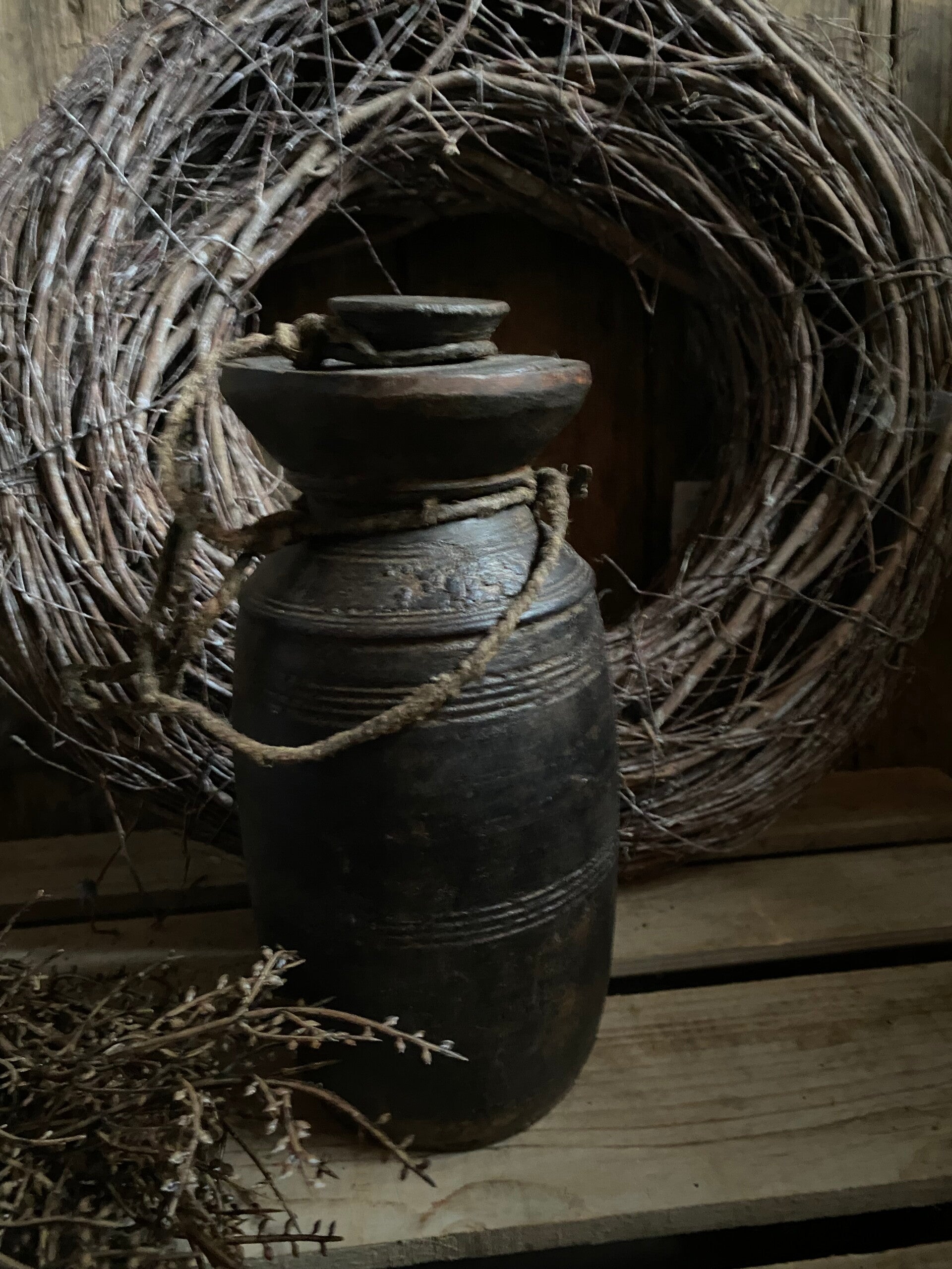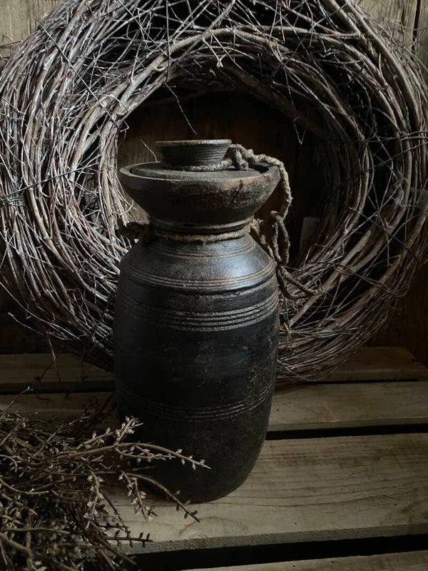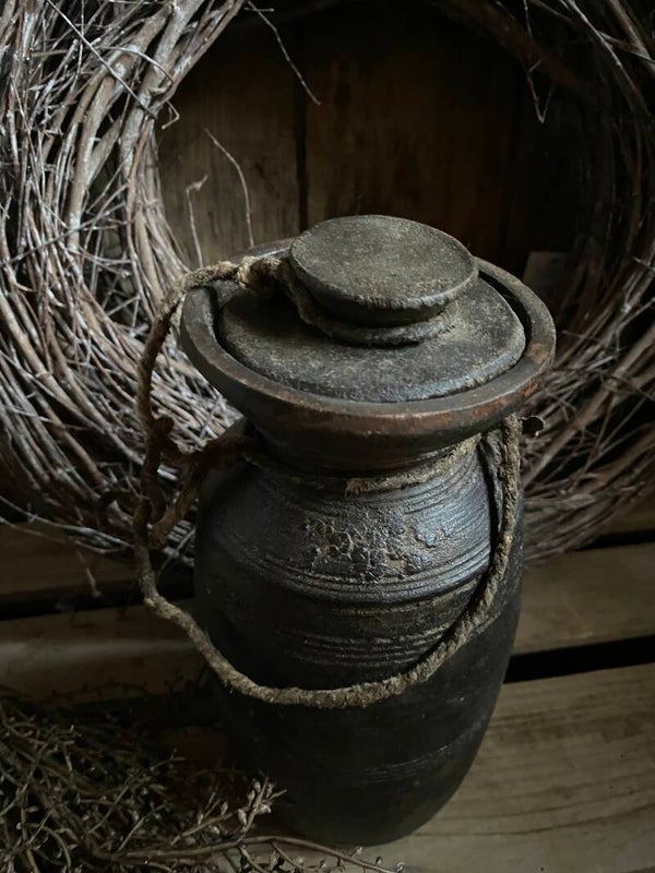 Authentieke donkere klein nepalese pot met deksel nr 4