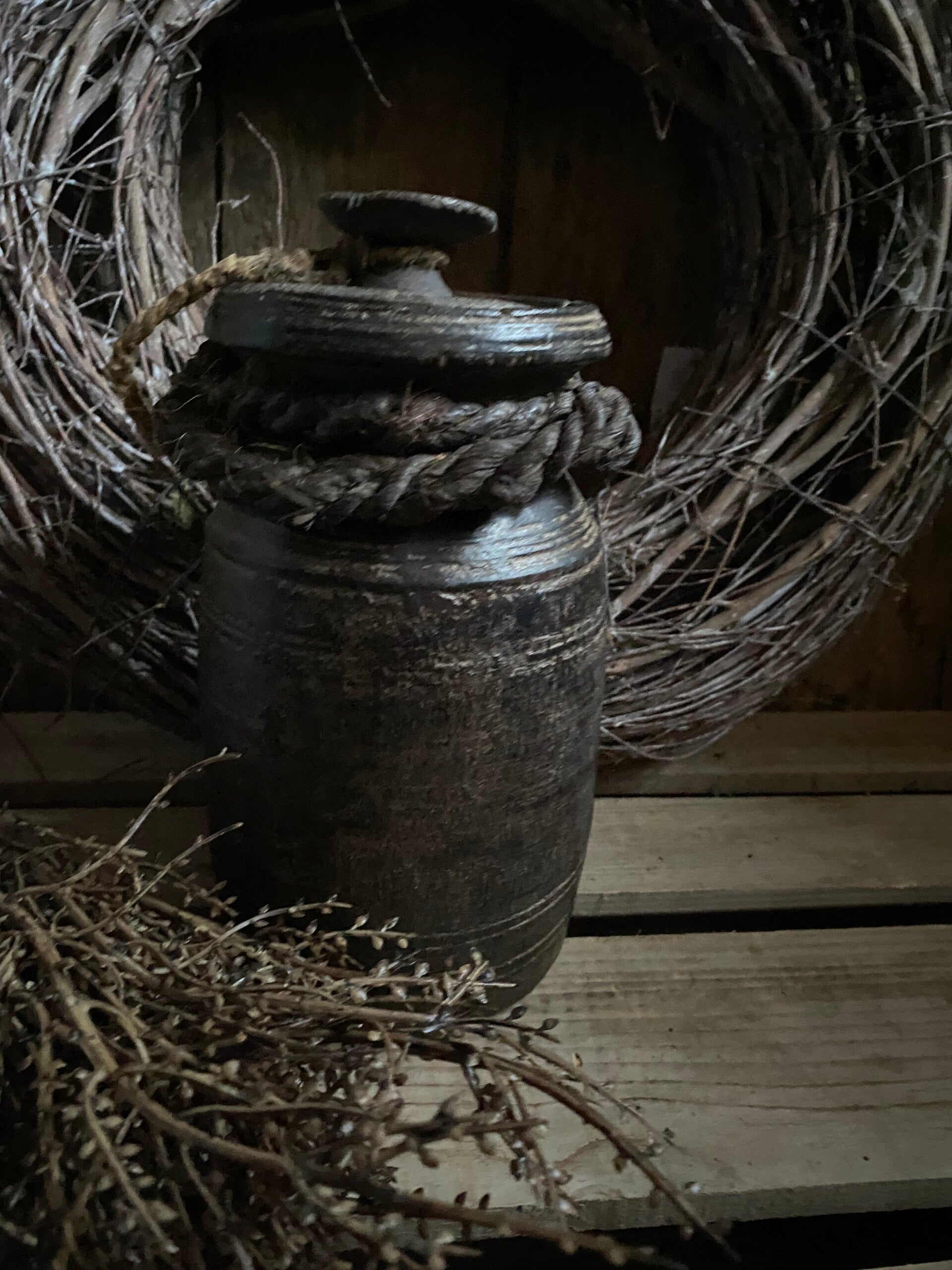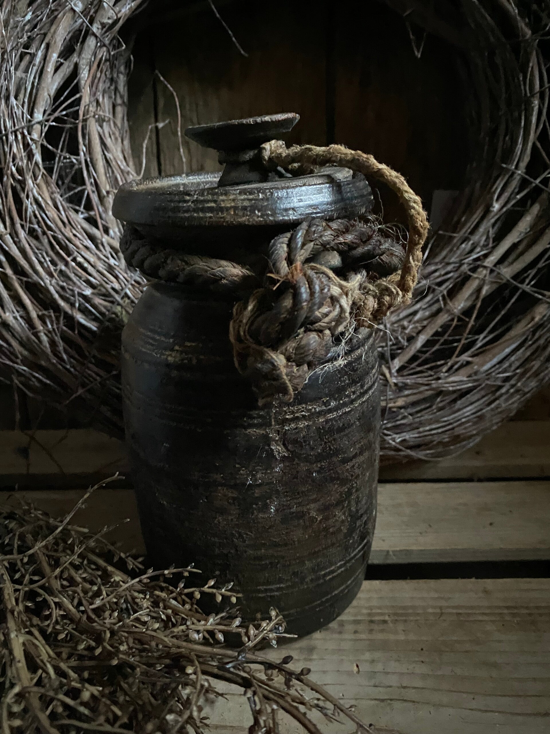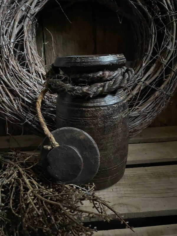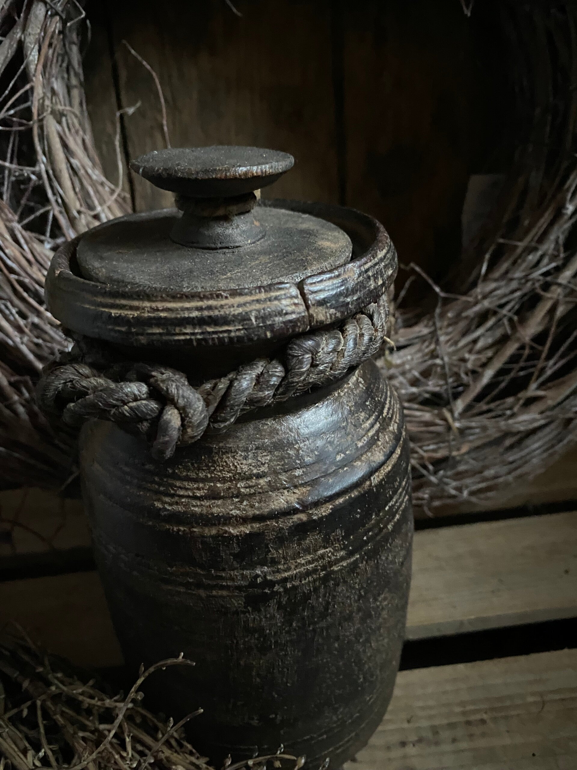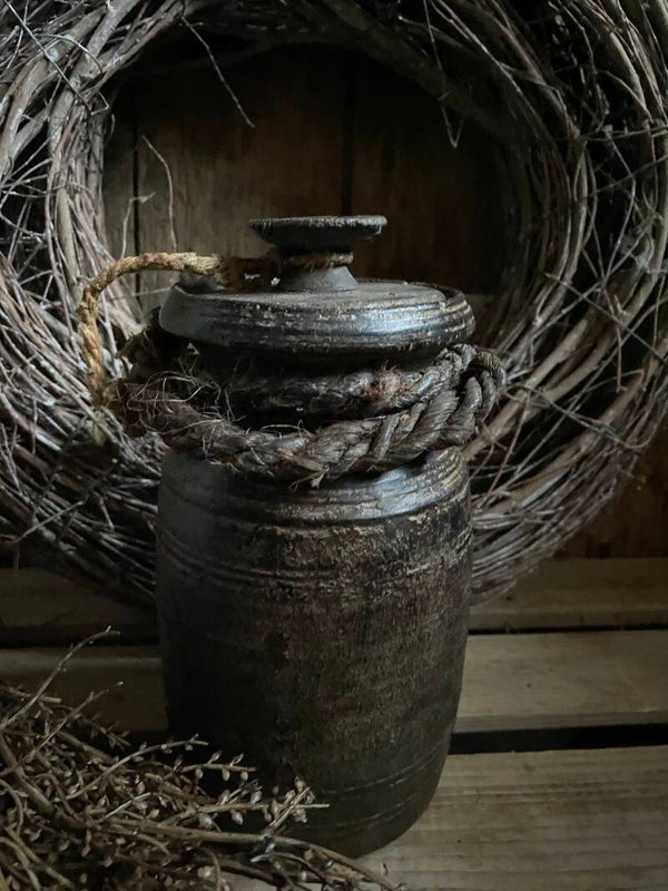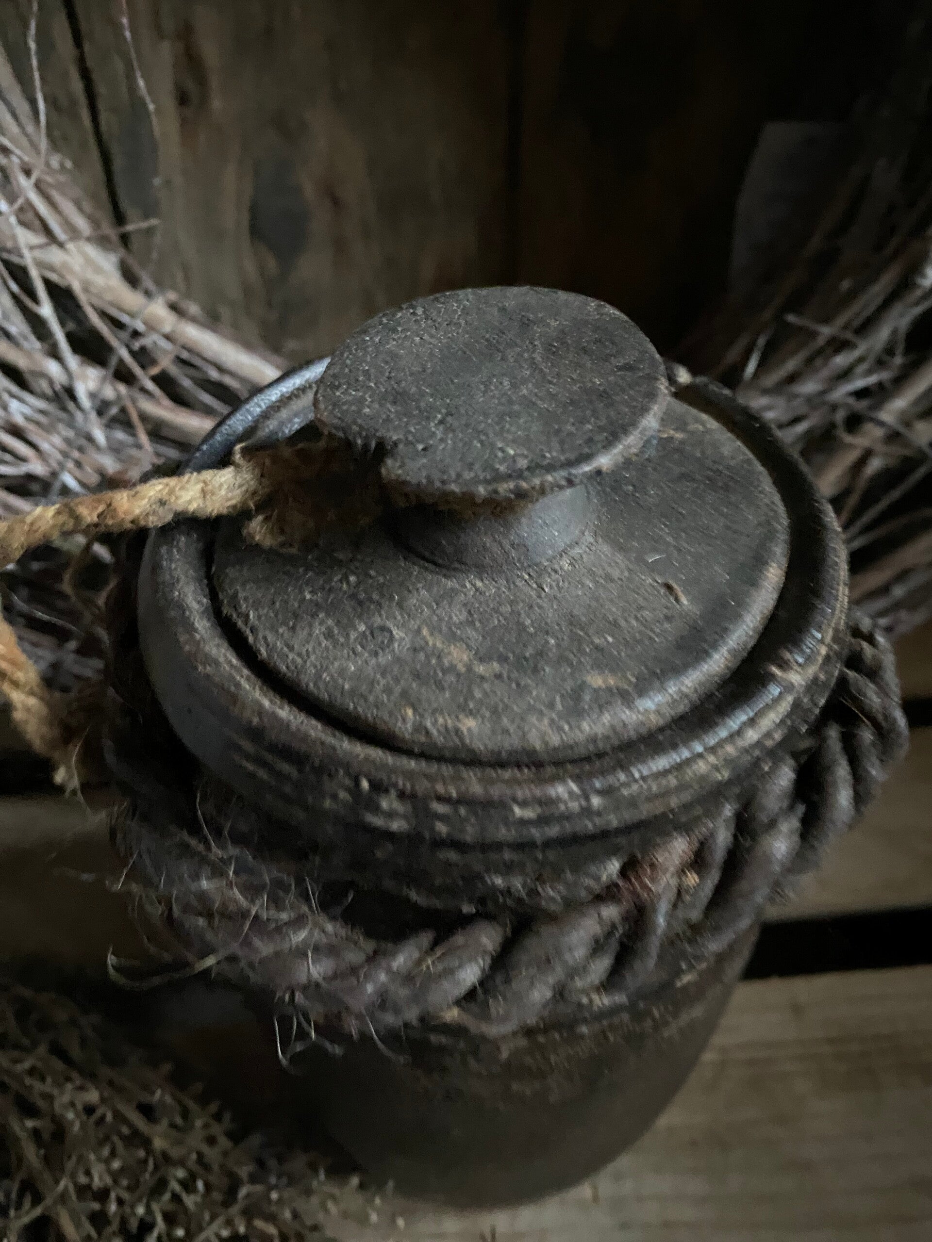 Authentieke donkere klein nepalese pot met deksel nr 5