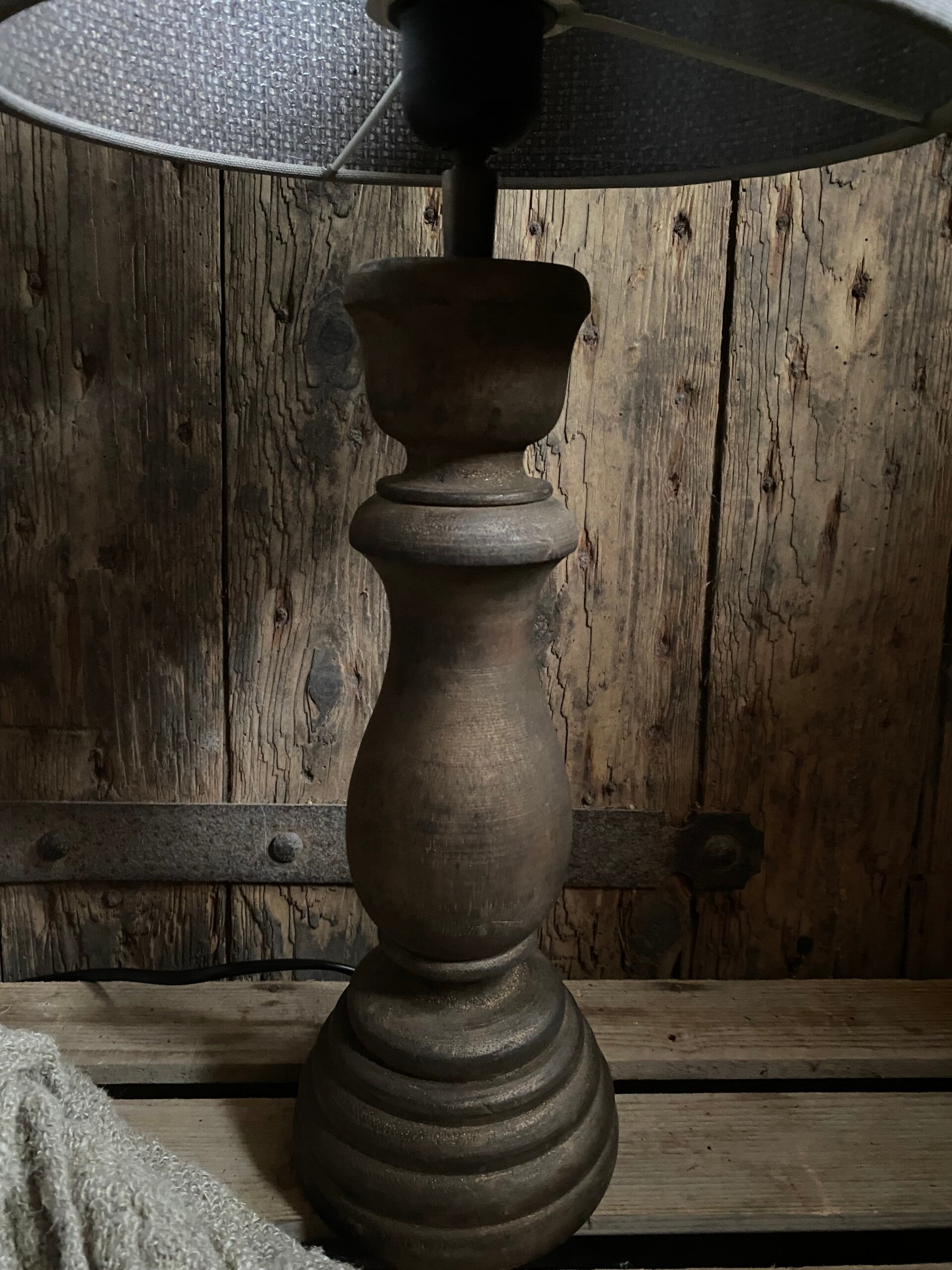 Stoer en landelijk met grove jutteachtige lampenkap.