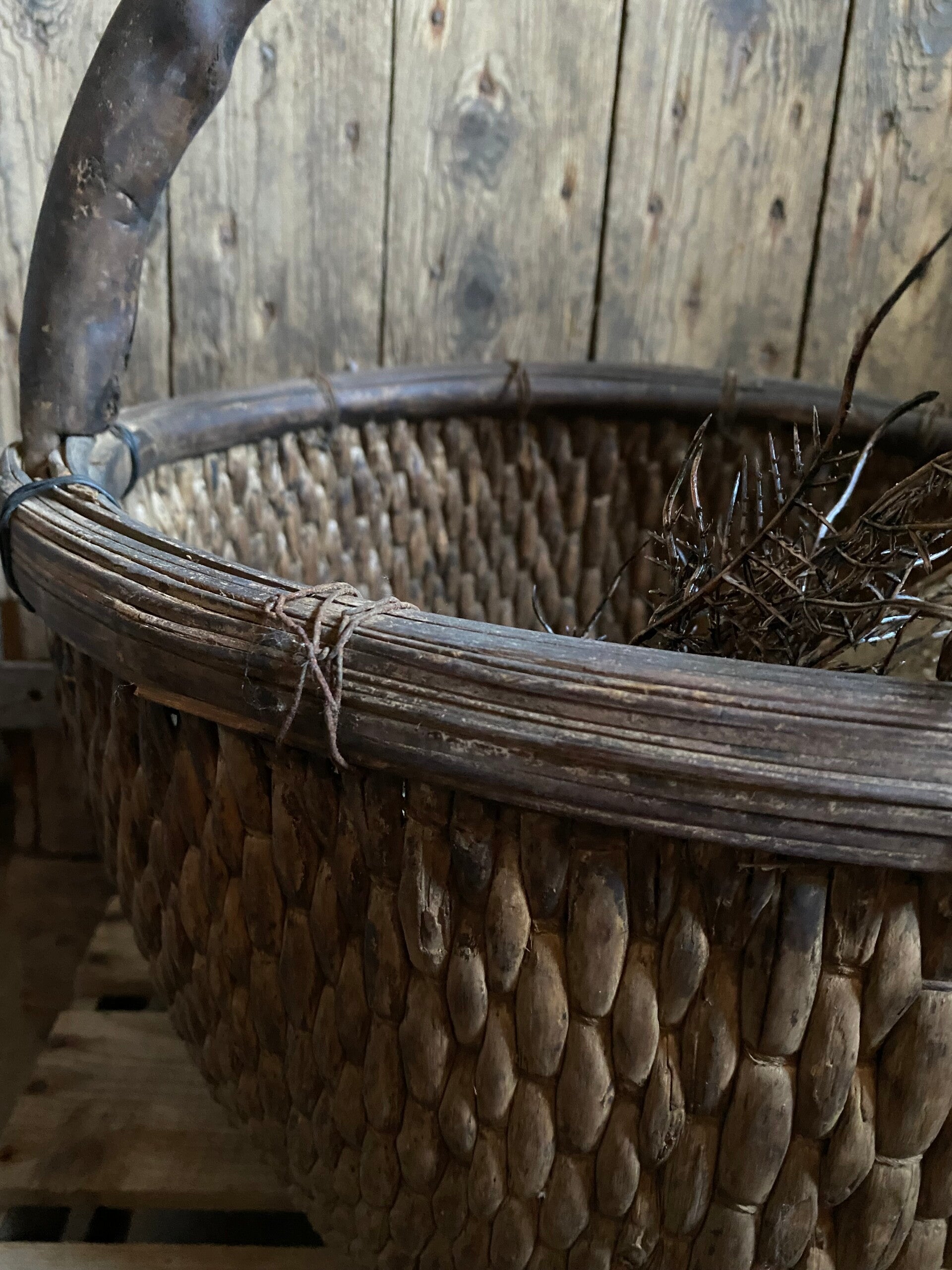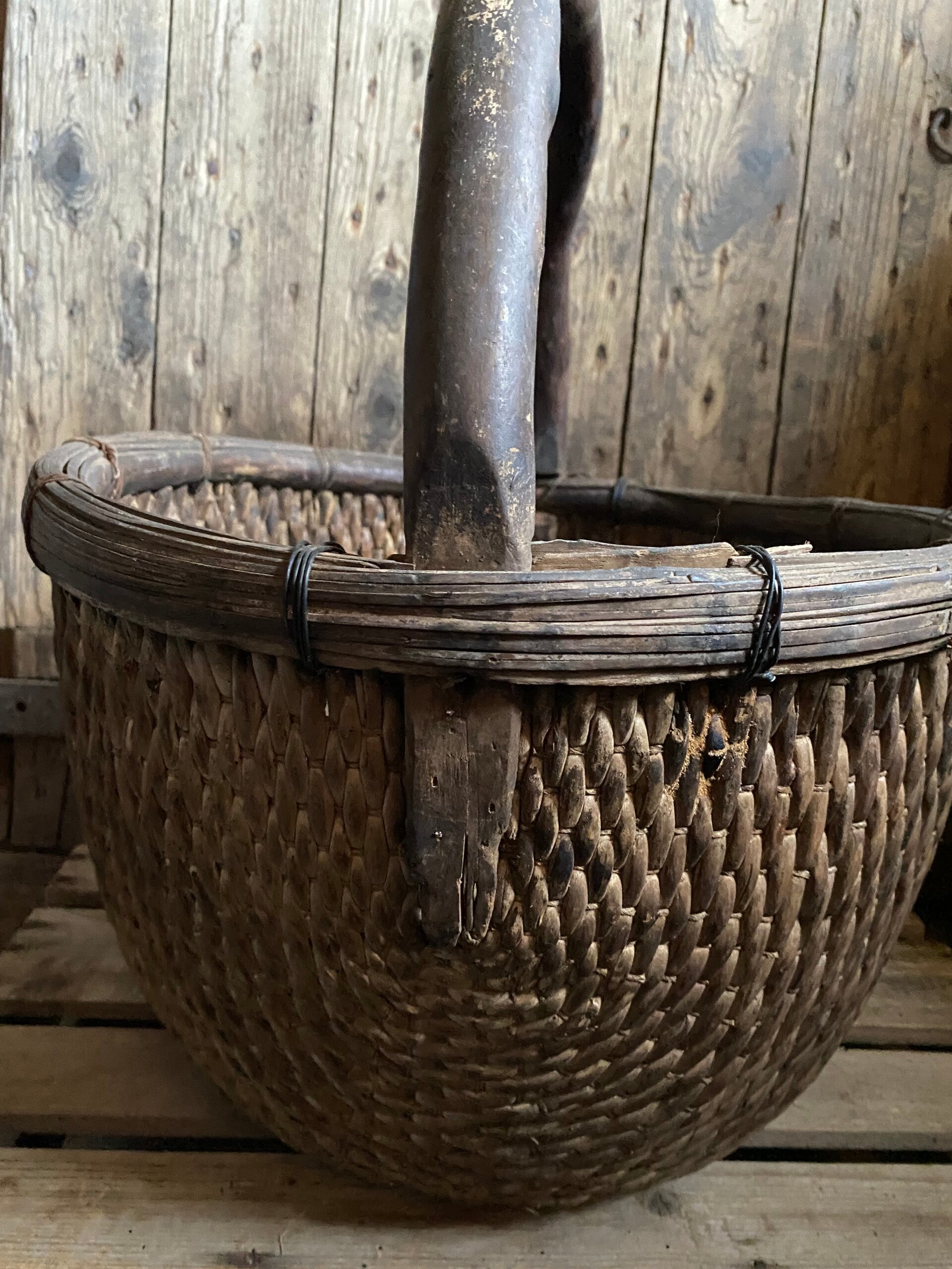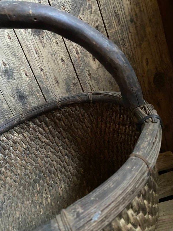 Uniek en authentiek, binnenkant mand zit een stukje oud doek geplakt