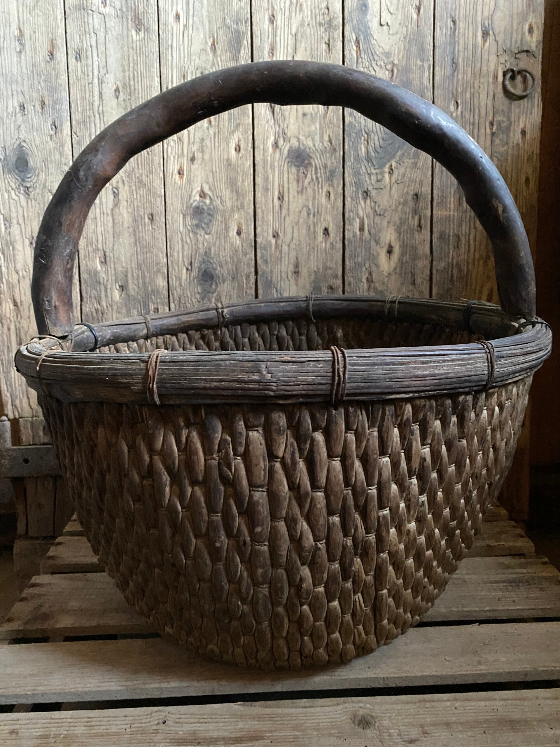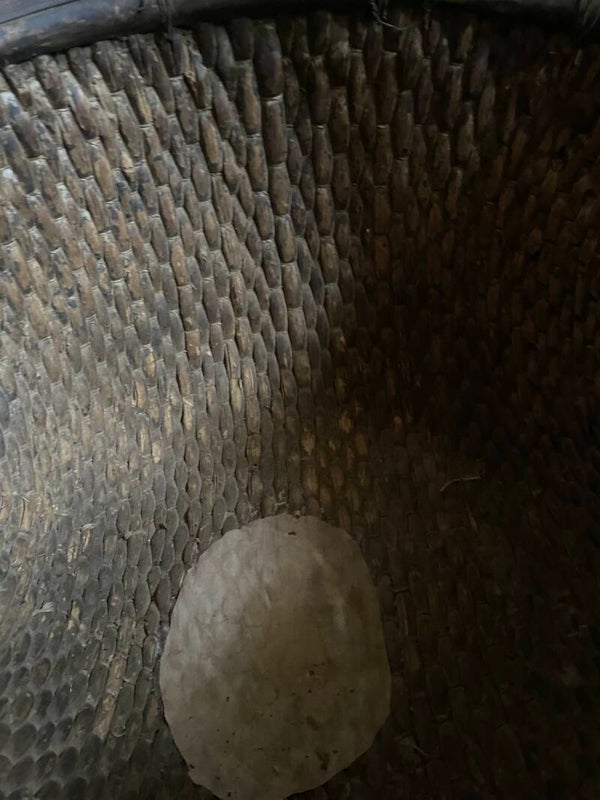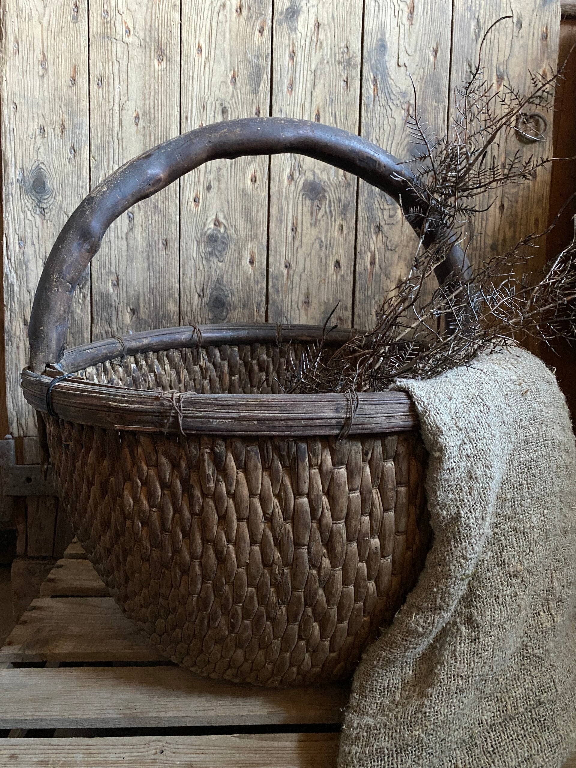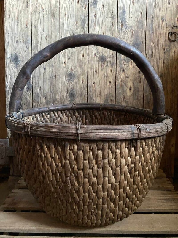 Uniek en authentiek, binnenkant mand zit een stukje oud doek geplakt