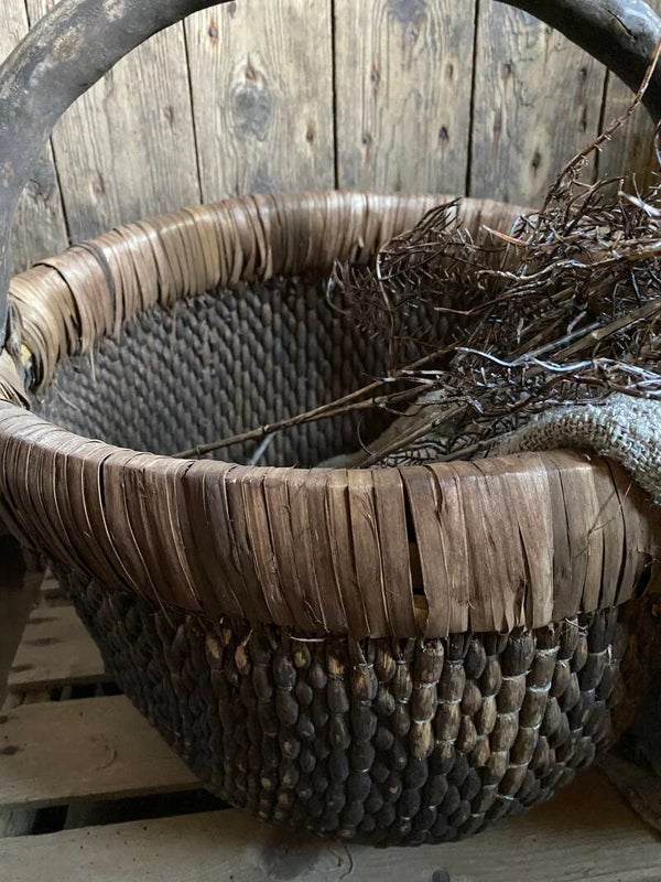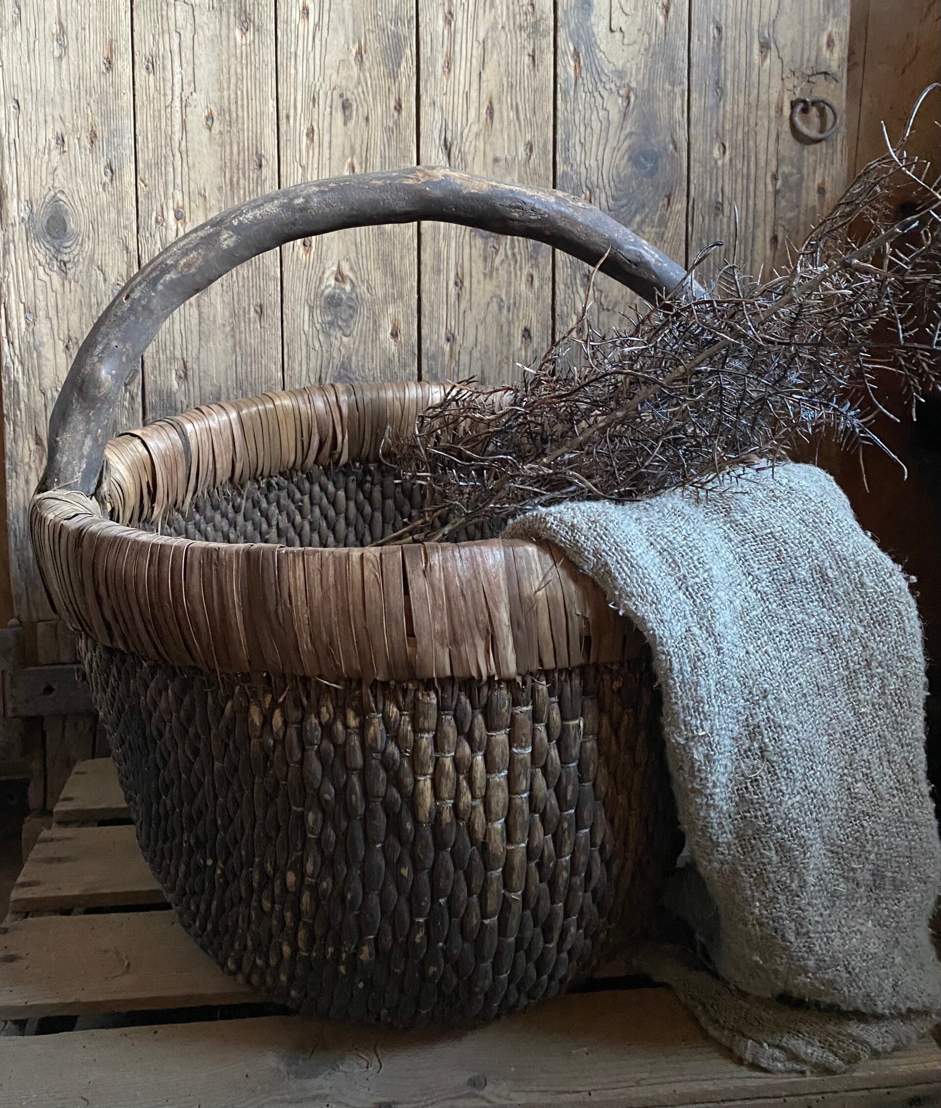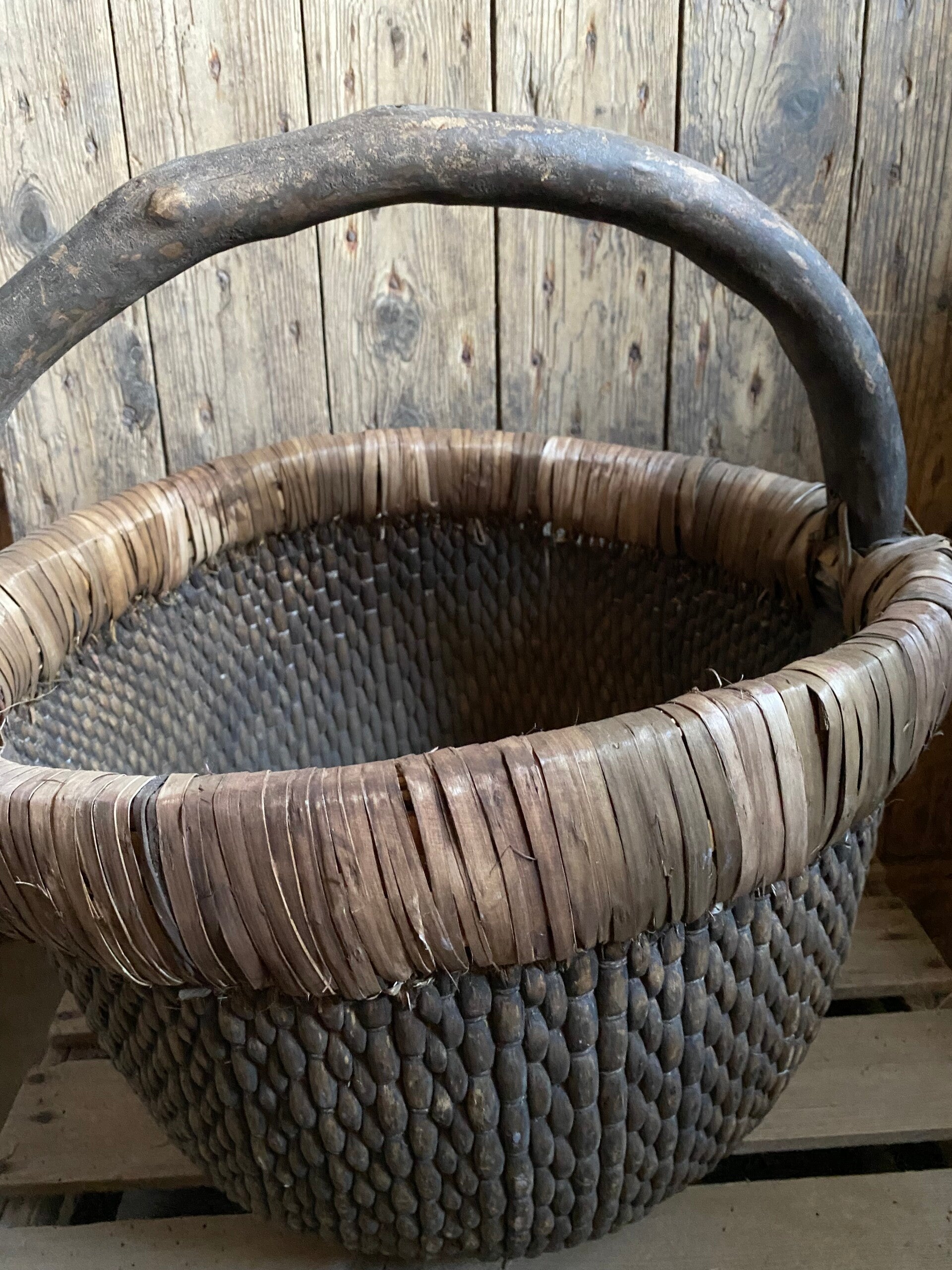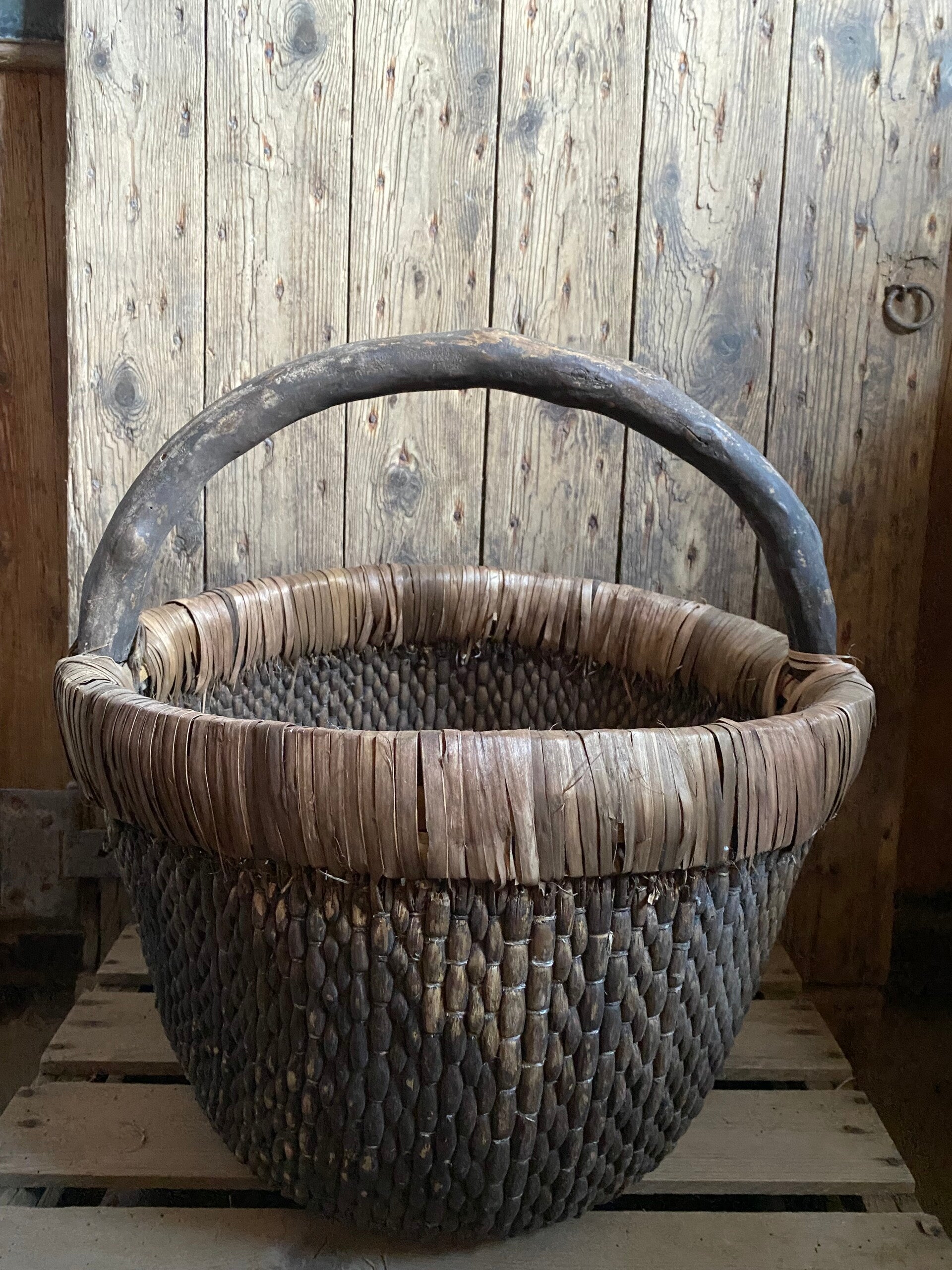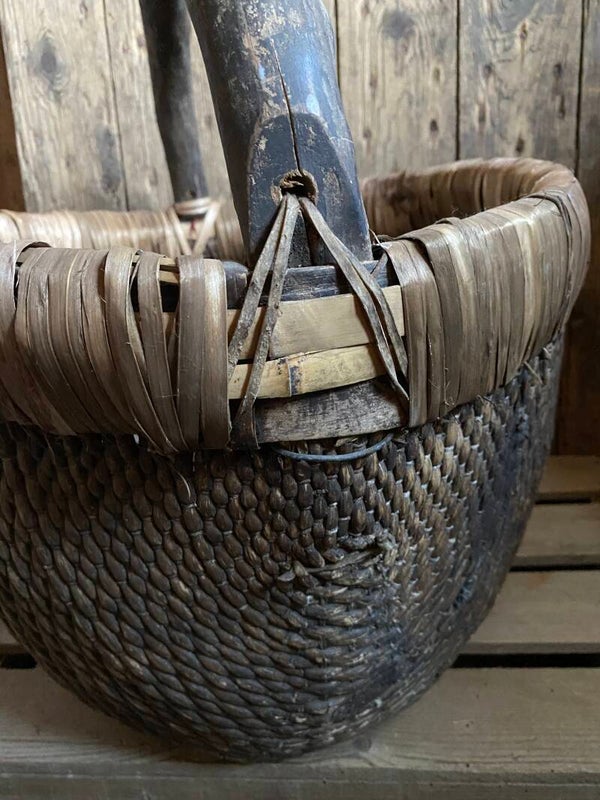 Uniek en authentiek, binnenkant mand zit een stukje oud doek geplakt