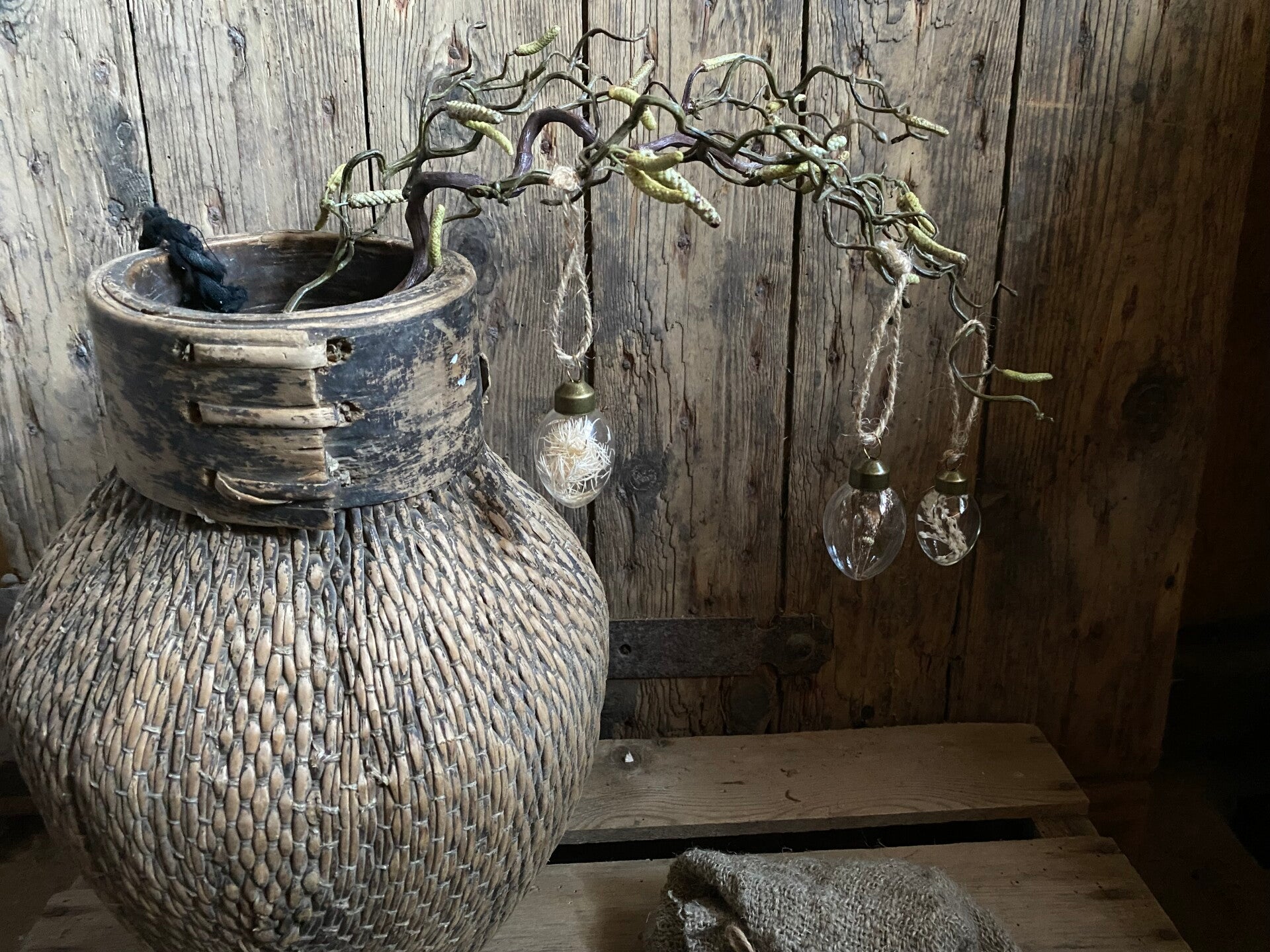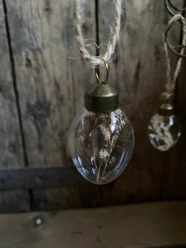 Doosje met 9 glazen eitjes gevuld met veertjes